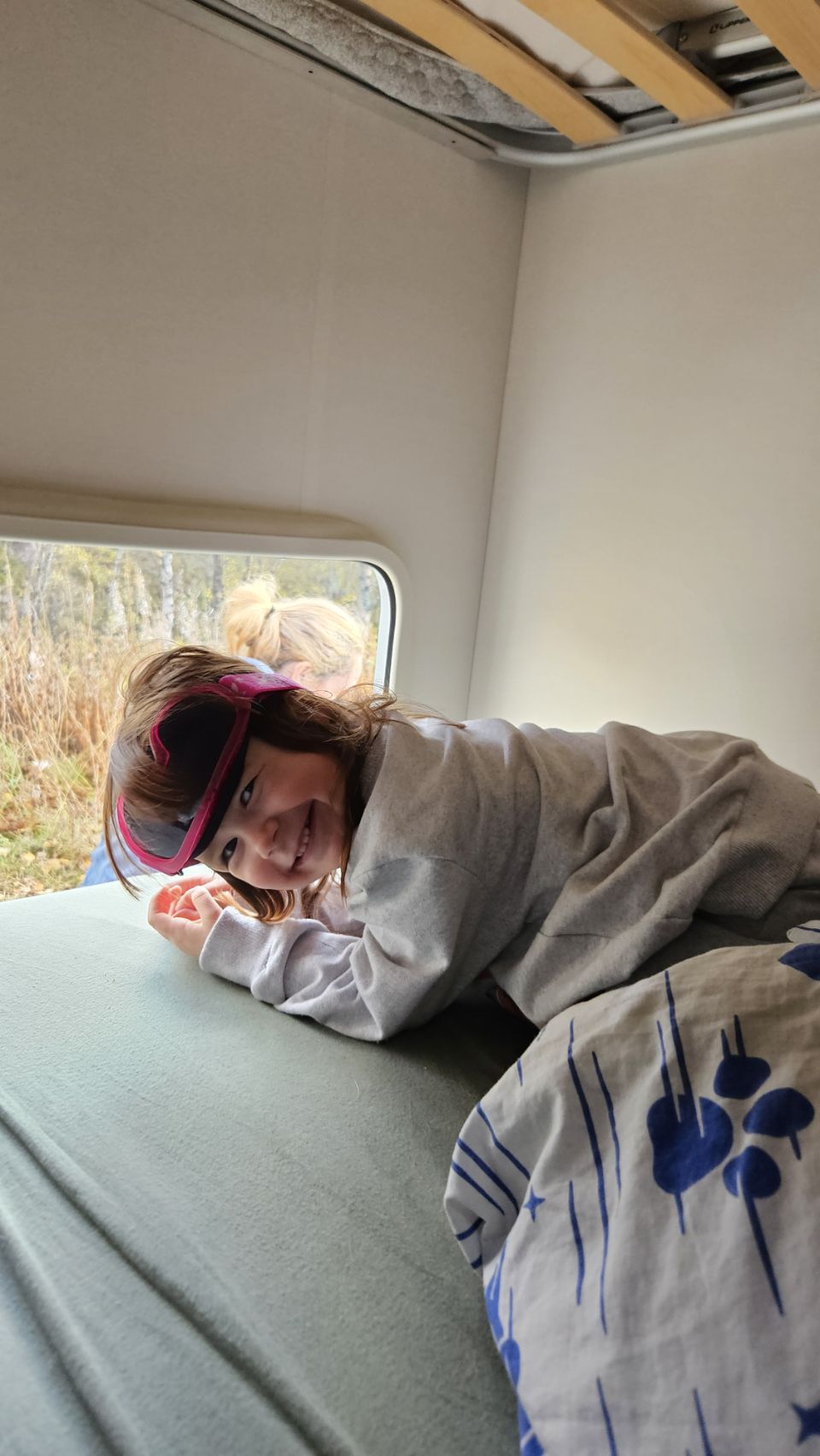 Nous passerons plusieurs jours dans les environs d’Ammarnäs, rythmés par la pluie et la découverte. La première journée, très pluvieuse, nous a clairement invité à… ne rien faire. Pas de réseau, pas de contrainte, juste du temps ensemble pour jouer, colorier, se reposer.