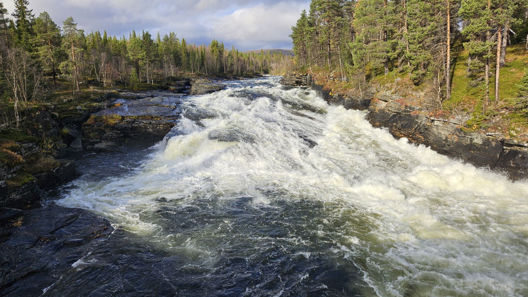 Puis direction Vindelåforsen, de puissants rapides particulièrement impressionnants après la pluie de la veille. Enfin, nous terminons par Stor-Tjulträsket, un endroit magique entre lac et montagnes. La balade est superbe. L’endroit respire la quiétude… Dommage que la pluie s’installe à nouveau, on serait bien restés un peu plus longtemps.