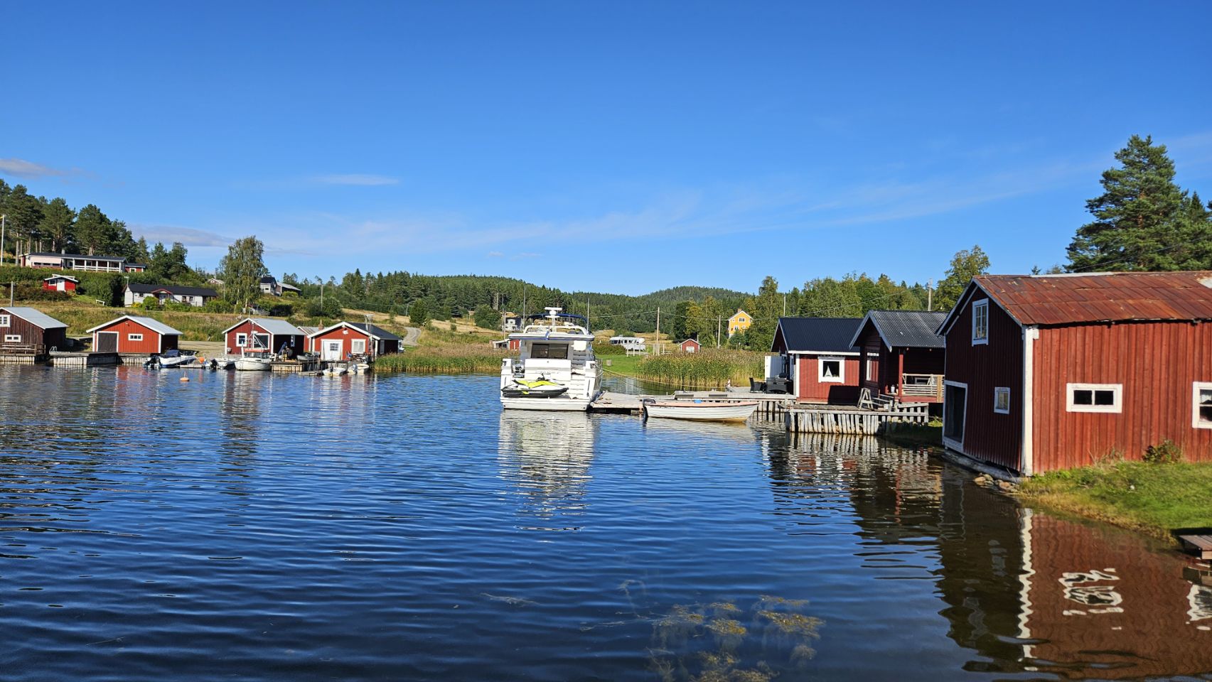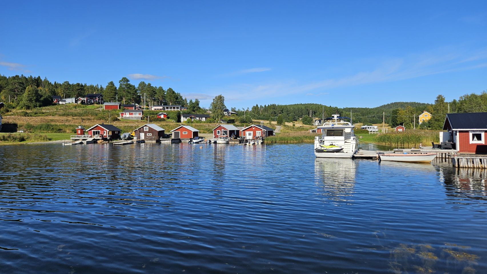 Nous dénichons une petite aire au bord de l’eau, dans le charmant village de pêcheurs de Berghamn. Niché sur la côte de la Höga Kusten, ce hameau respire la sérénité et l’authenticité. Les petites cabanes rouges alignées près de l’eau, les séchoirs et les bateaux amarrés donnent immédiatement une atmosphère hors du temps, comme figée dans une autre époque.