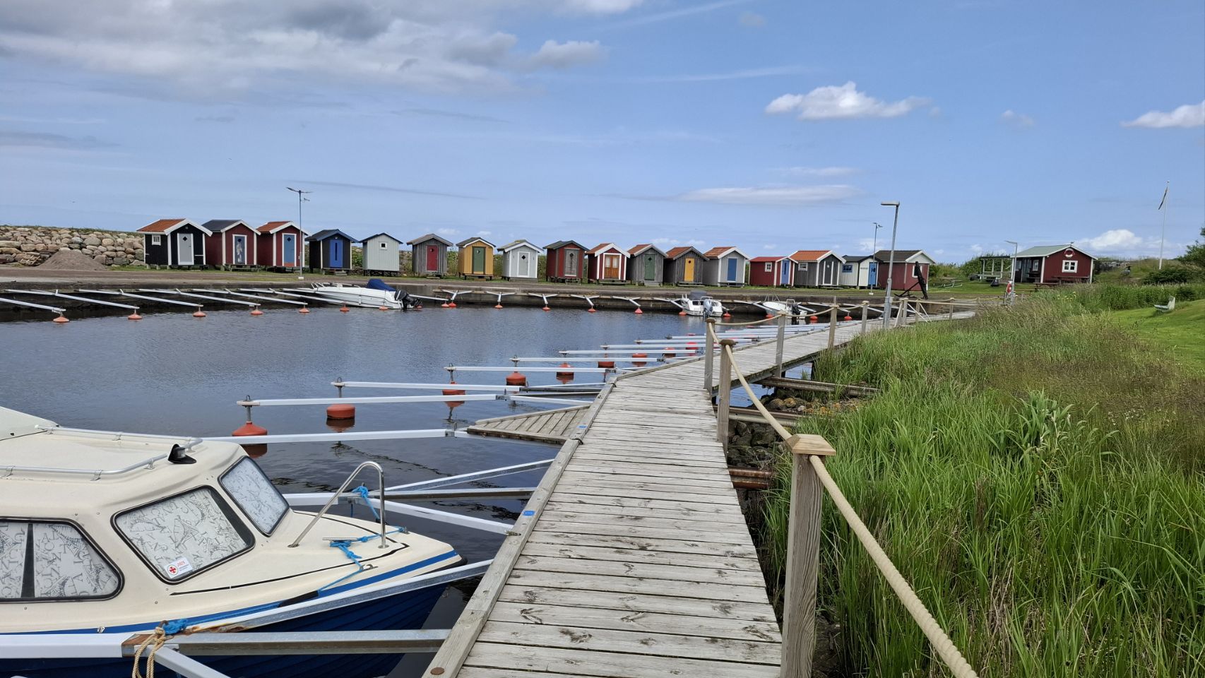 Quelle belle surprise en chemin : je tombe sur un minuscule port plein de charme, avec ses cabanes de pêcheurs colorées. Un coin tranquille, hors du temps, où l’on imagine facilement les pêcheurs rentrer au coucher du soleil.