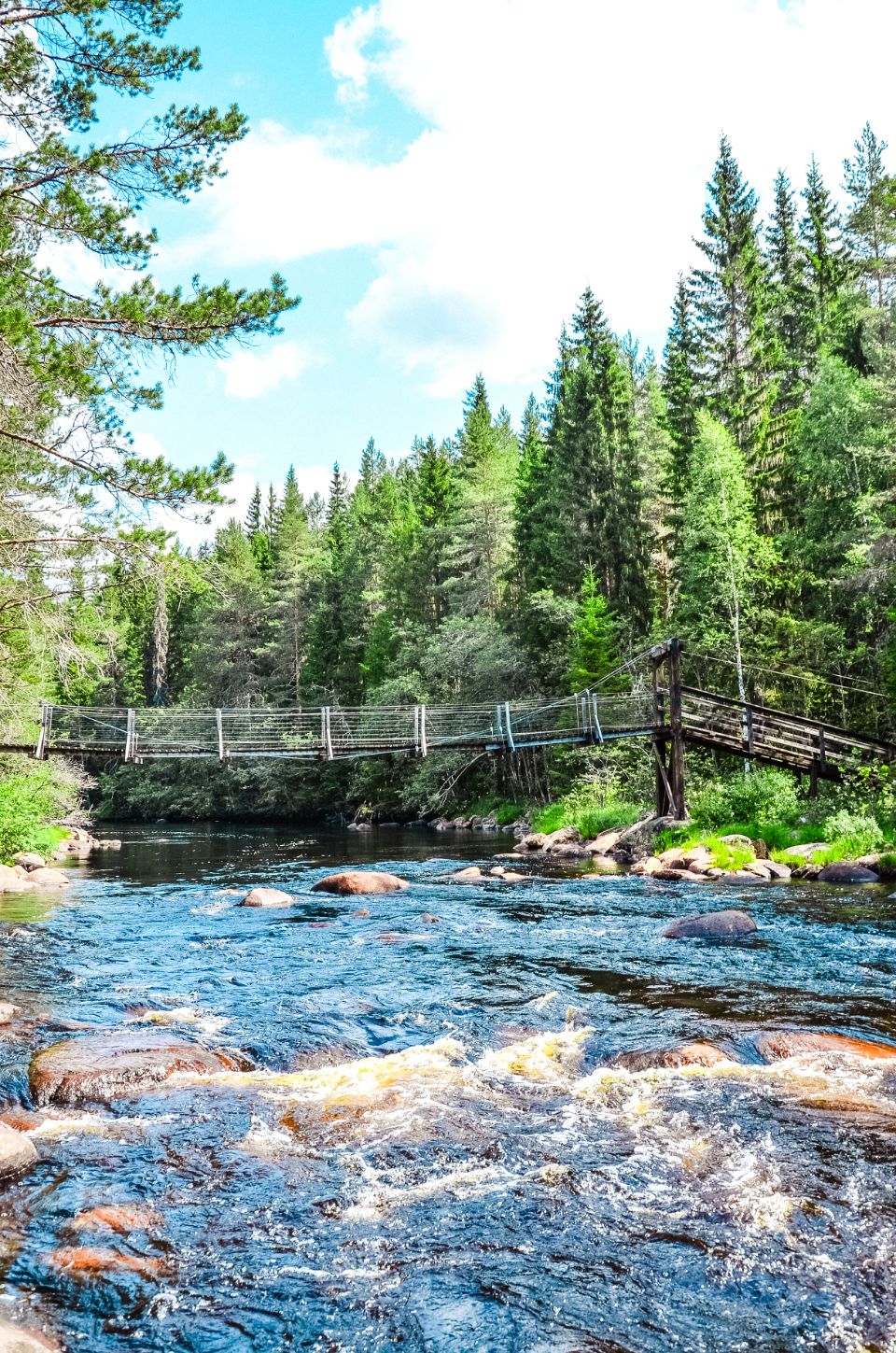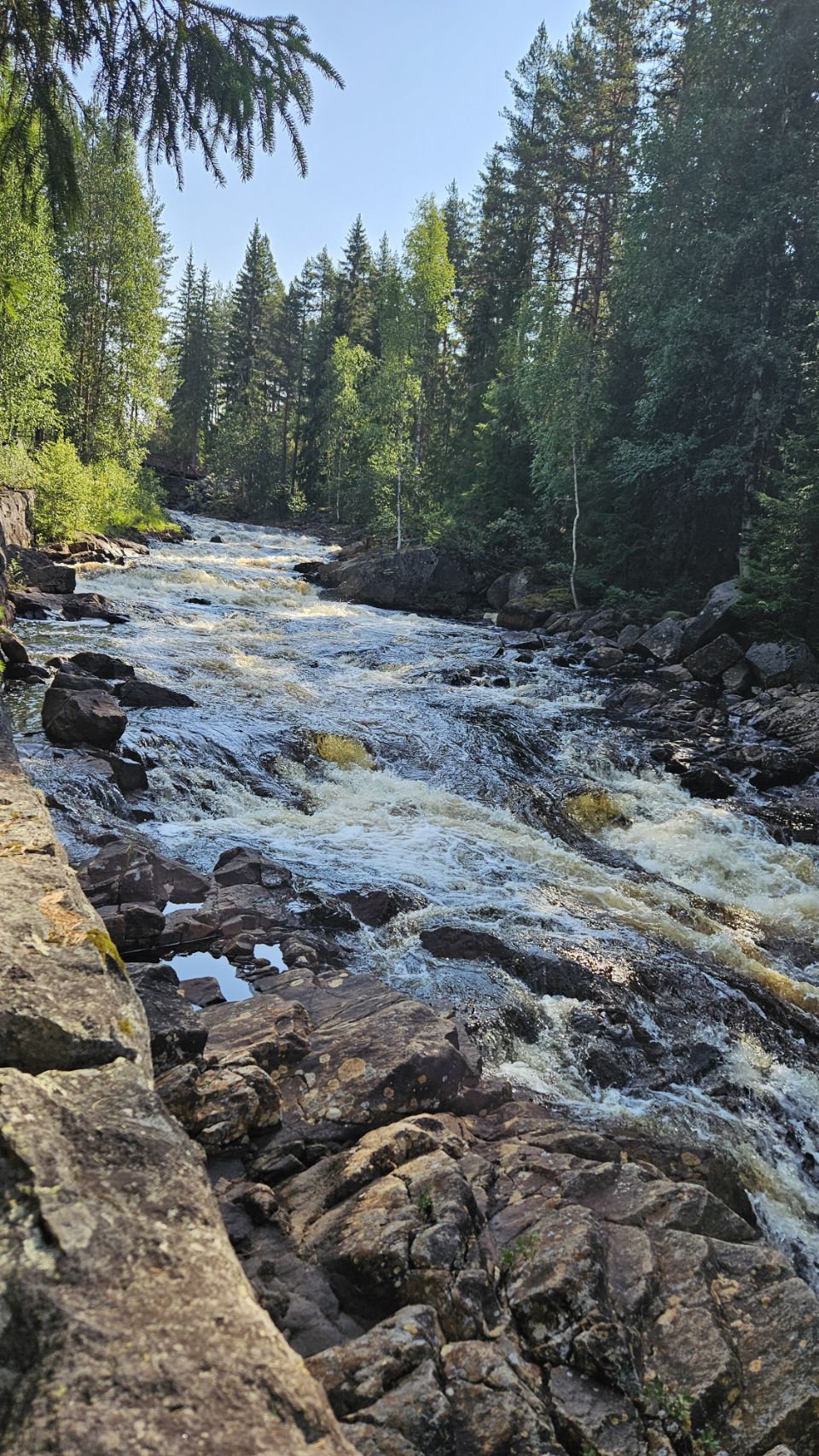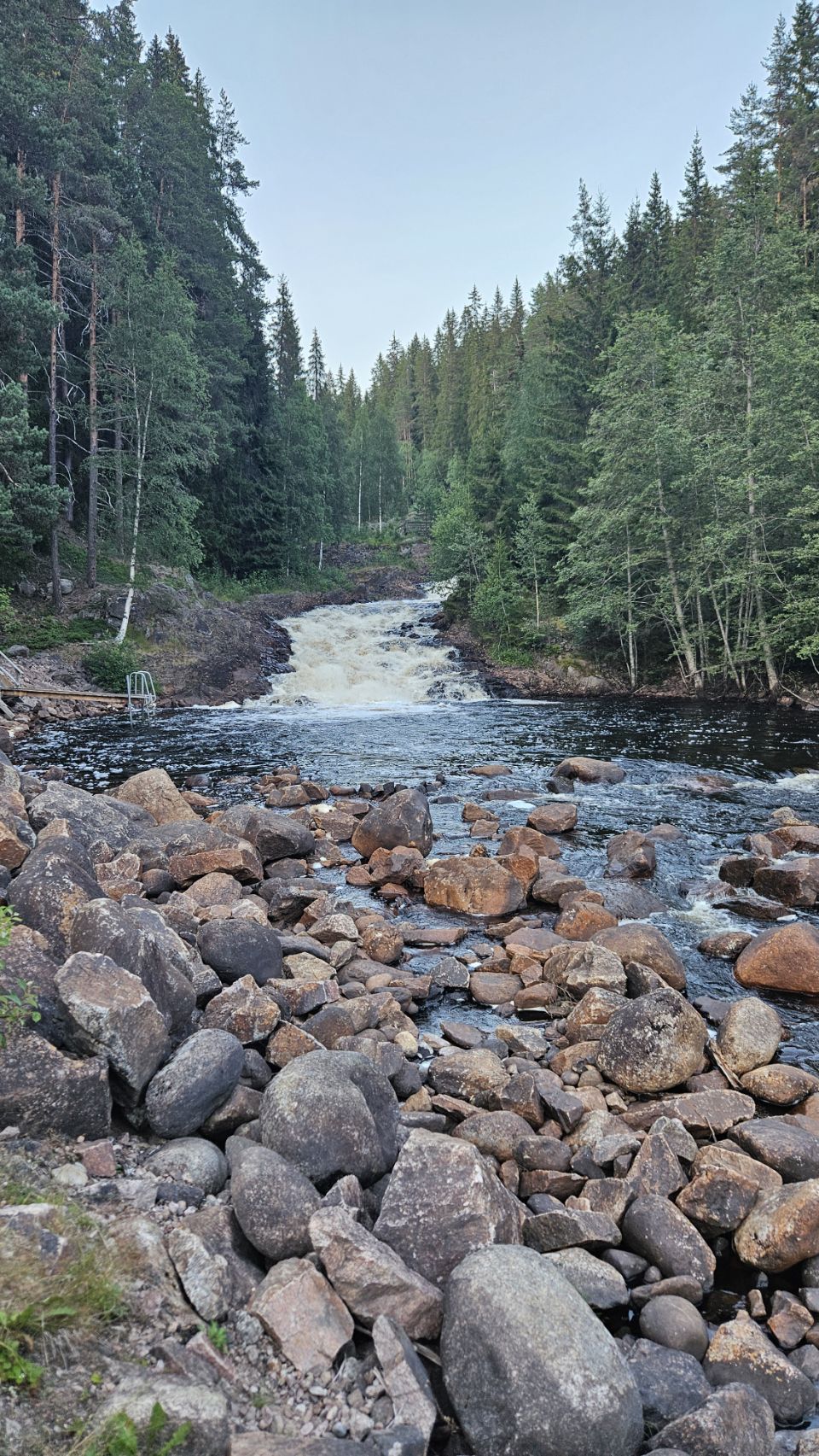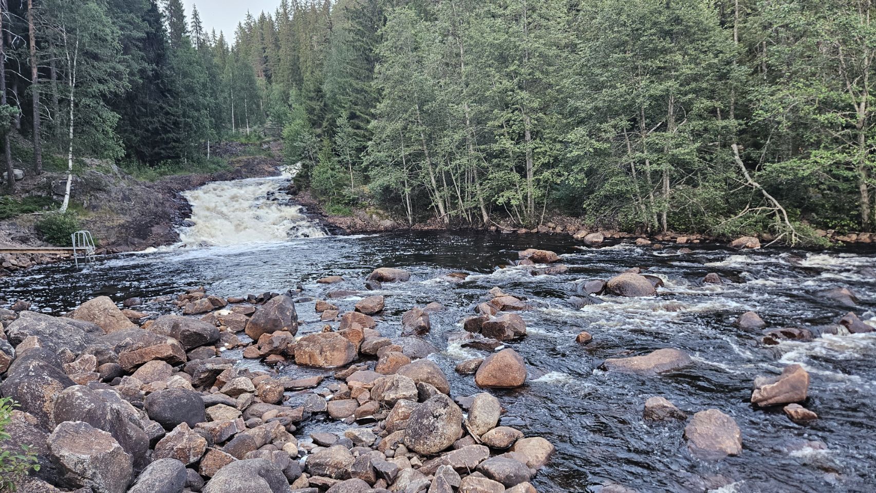 On s’arrête à Fämtfallet, une jolie cascade nichée dans les forêts du Värmland, prisée par les locaux pour pique-niquer, se baigner, ou simplement profiter du cadre naturel. Le lieu est calme, rafraîchissant, parfait pour une pause tout en douceur, les pieds dans l’eau.