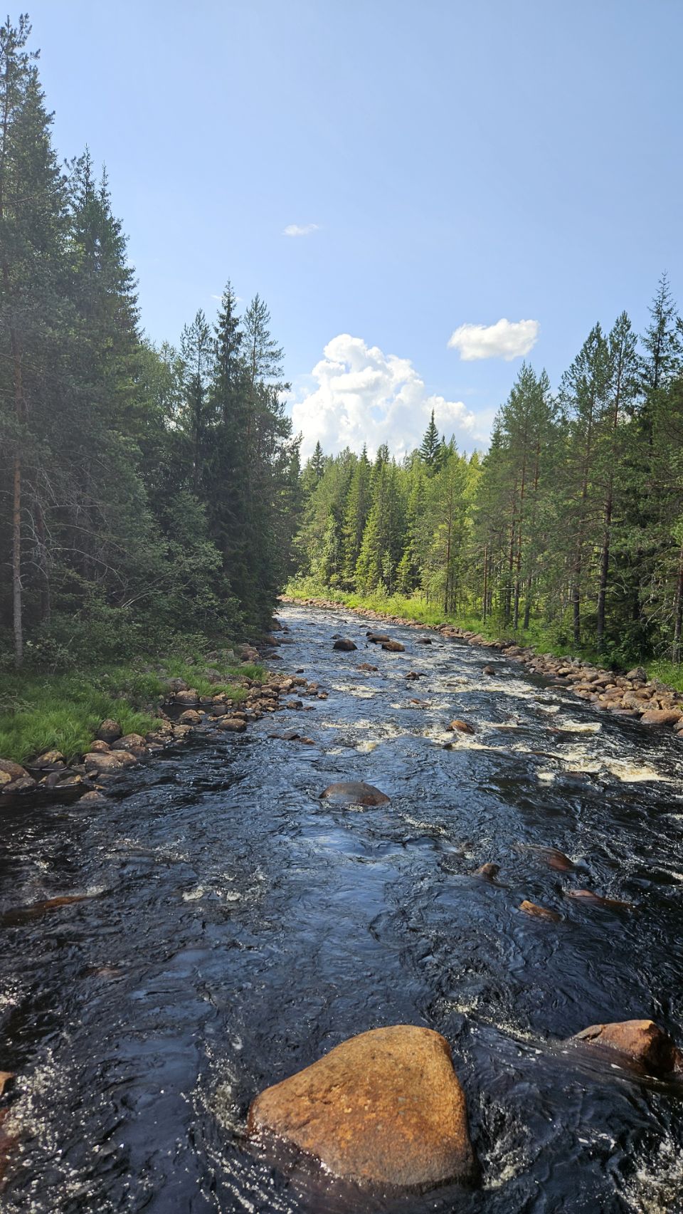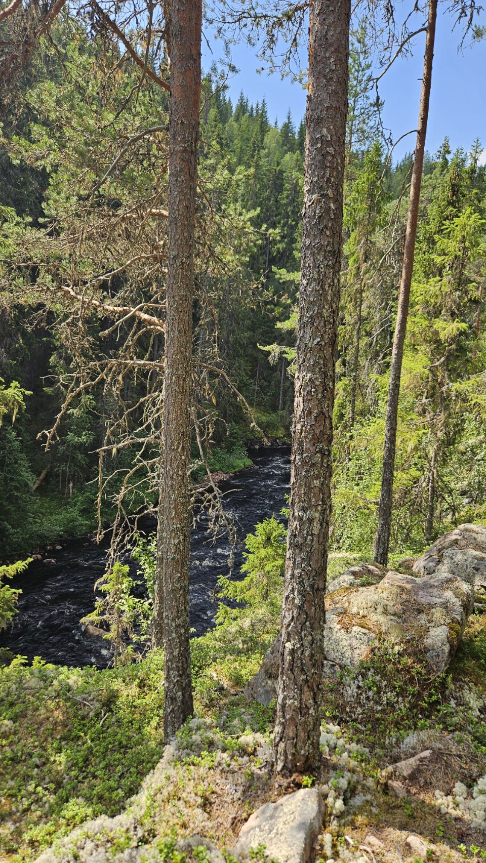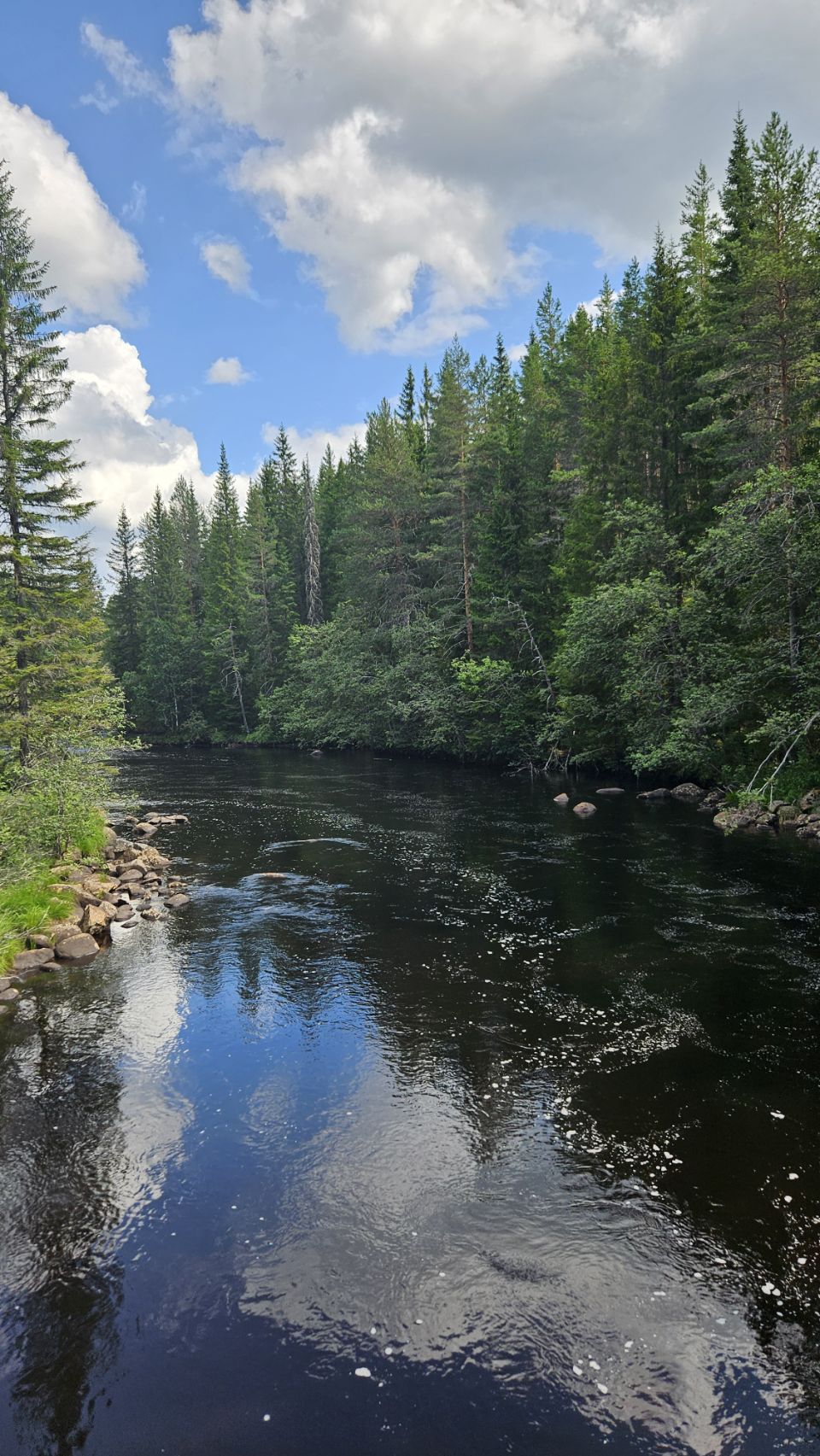 On s’arrête à Fämtfallet, une jolie cascade nichée dans les forêts du Värmland, prisée par les locaux pour pique-niquer, se baigner, ou simplement profiter du cadre naturel. Le lieu est calme, rafraîchissant, parfait pour une pause tout en douceur, les pieds dans l’eau.