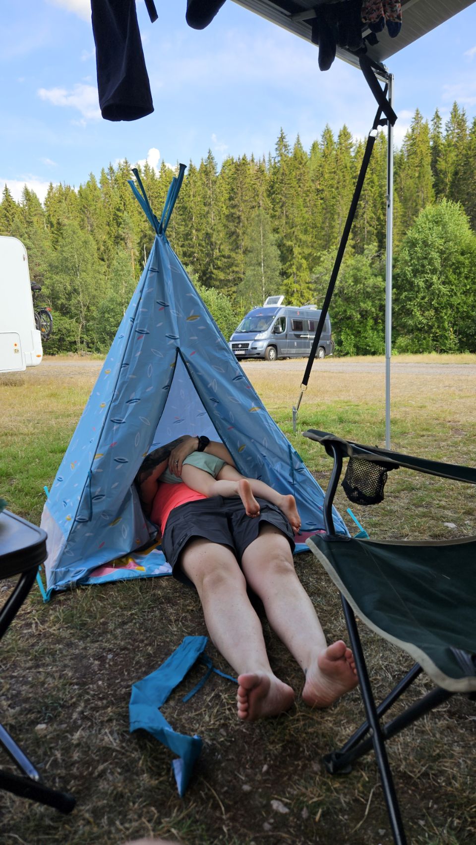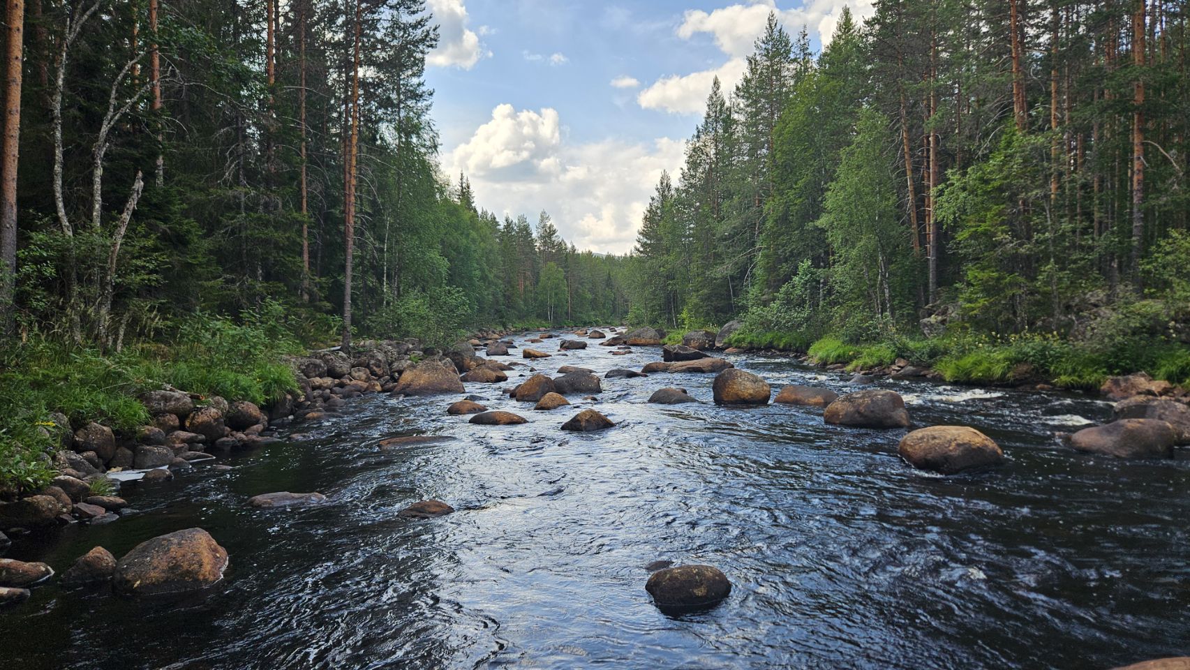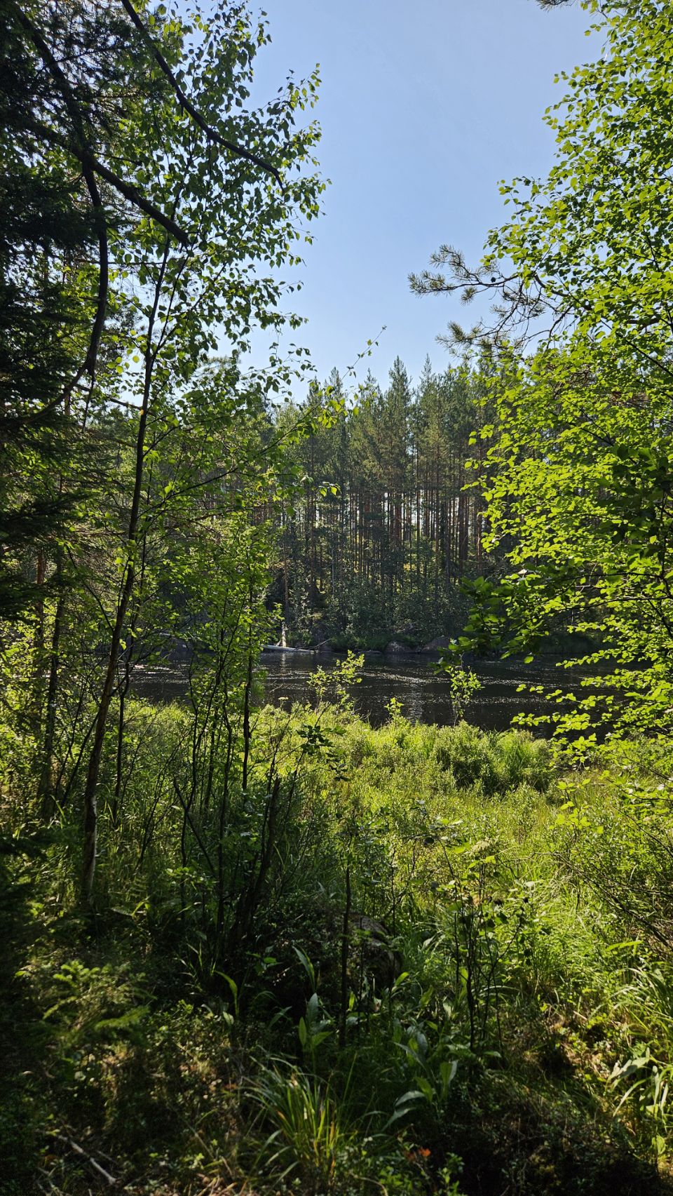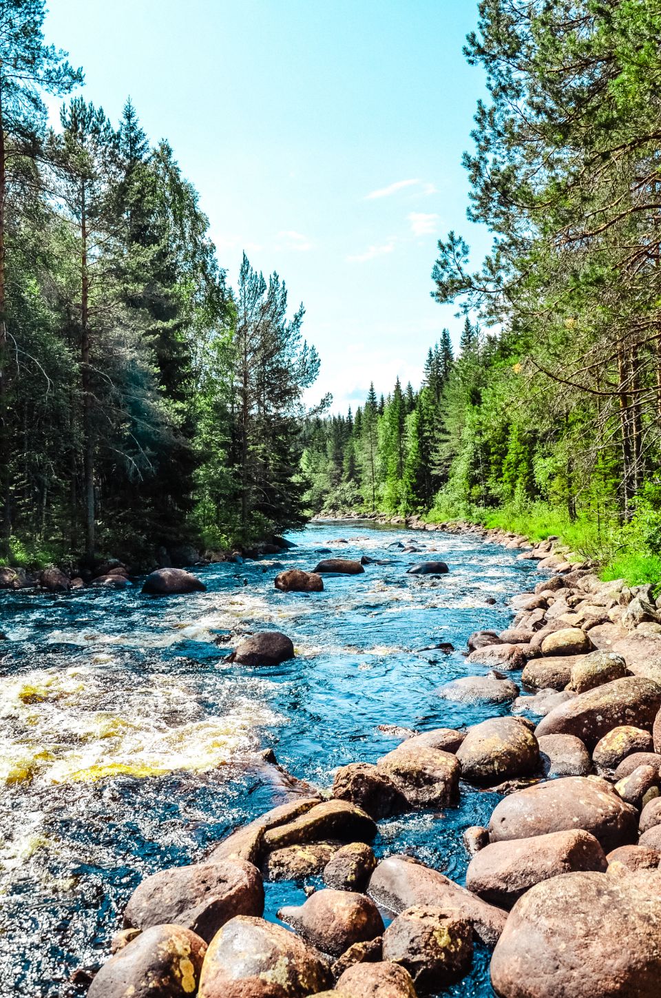 On s’arrête à Fämtfallet, une jolie cascade nichée dans les forêts du Värmland, prisée par les locaux pour pique-niquer, se baigner, ou simplement profiter du cadre naturel. Le lieu est calme, rafraîchissant, parfait pour une pause tout en douceur, les pieds dans l’eau.