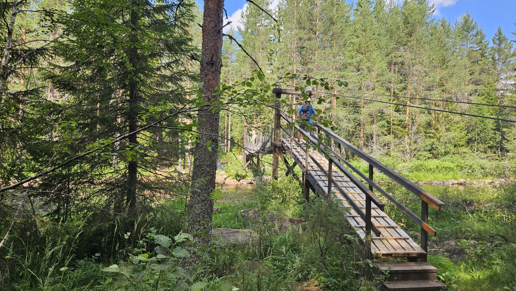 Le sentier offre une belle immersion entre rochers, racines, forêt et points de vue sur la rivière. À mi-chemin, on traverse un joli pont en bois…