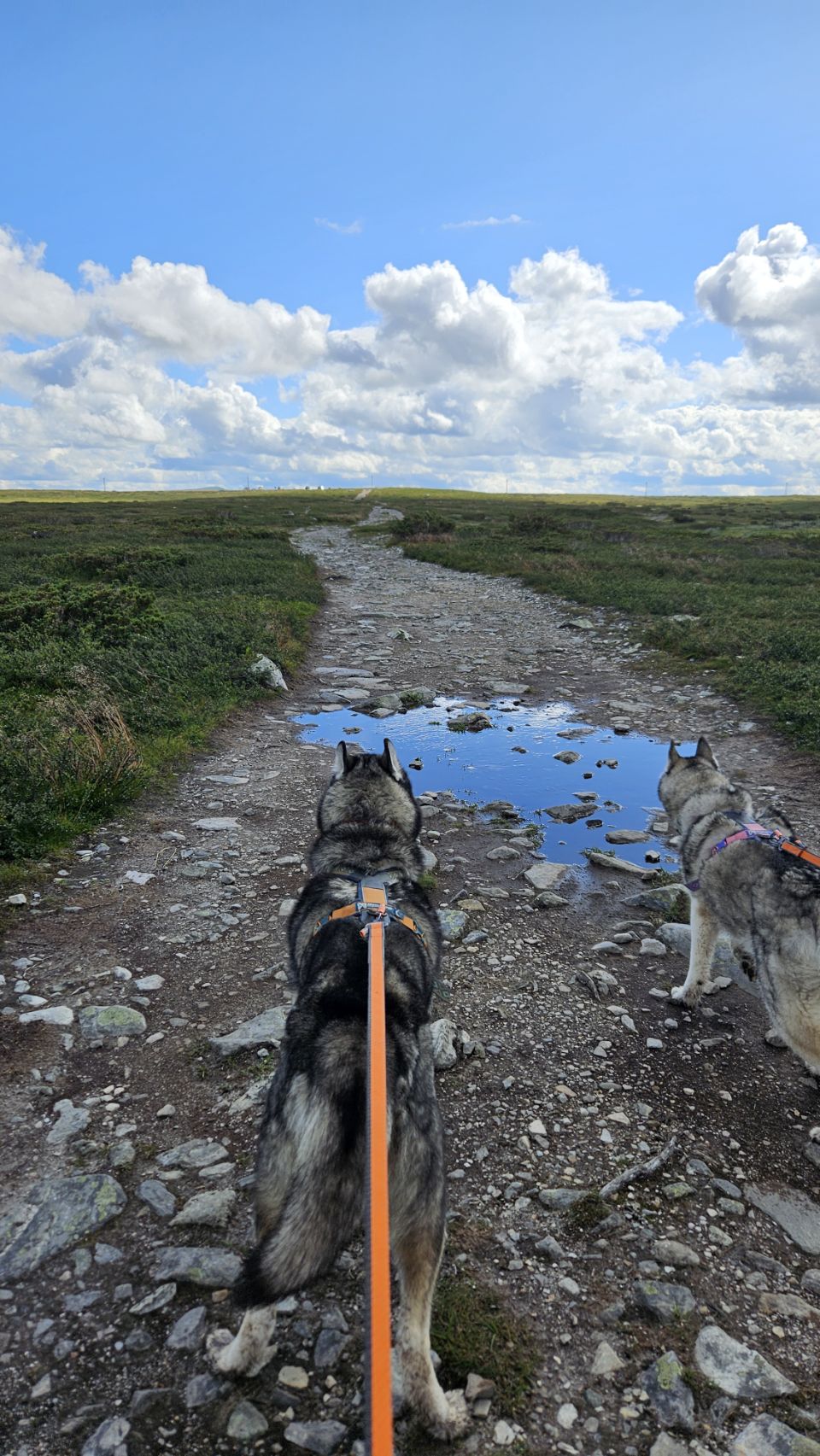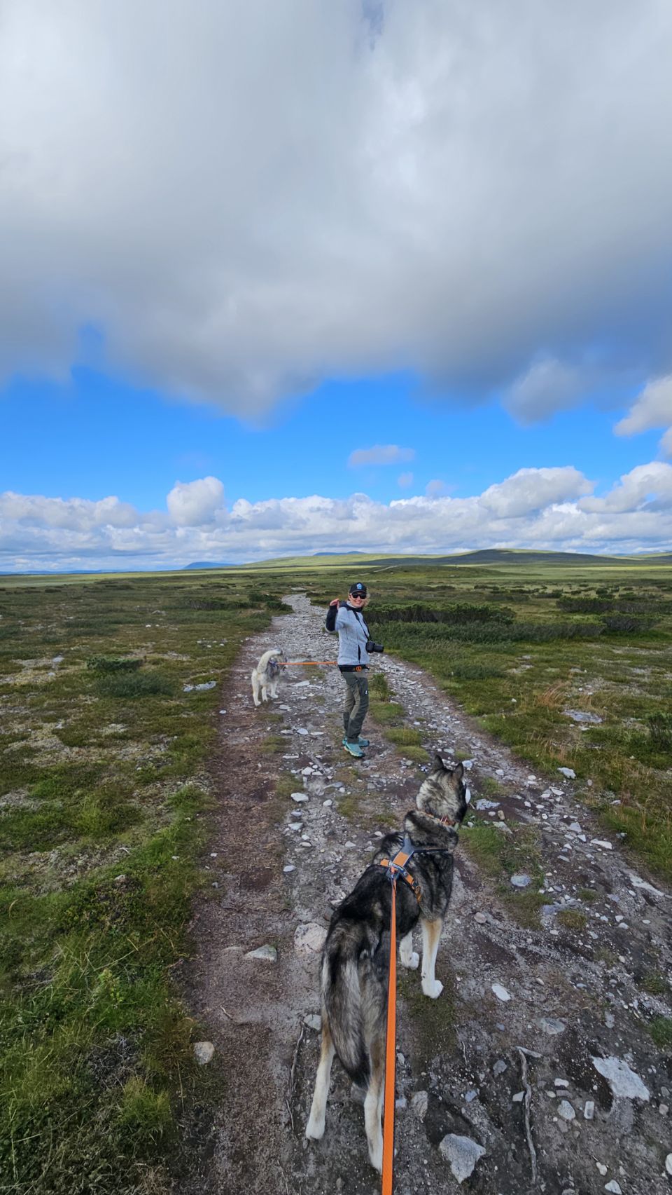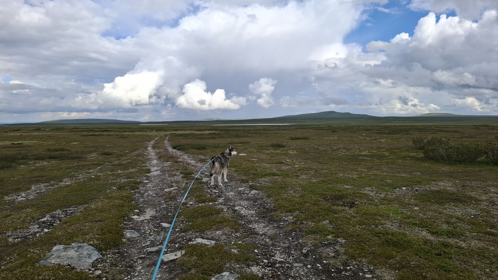 Pendant la sieste de Lou, je repars avec Phao pour un petit 5 km de l’autre côté. C’est toujours aussi beau, sauvage, avec cette impression d’être seuls au monde. Seuls… à part deux petits rennes aperçus au loin. Nous rentrons juste avant que l’orage ne s’abatte sur le plateau.
