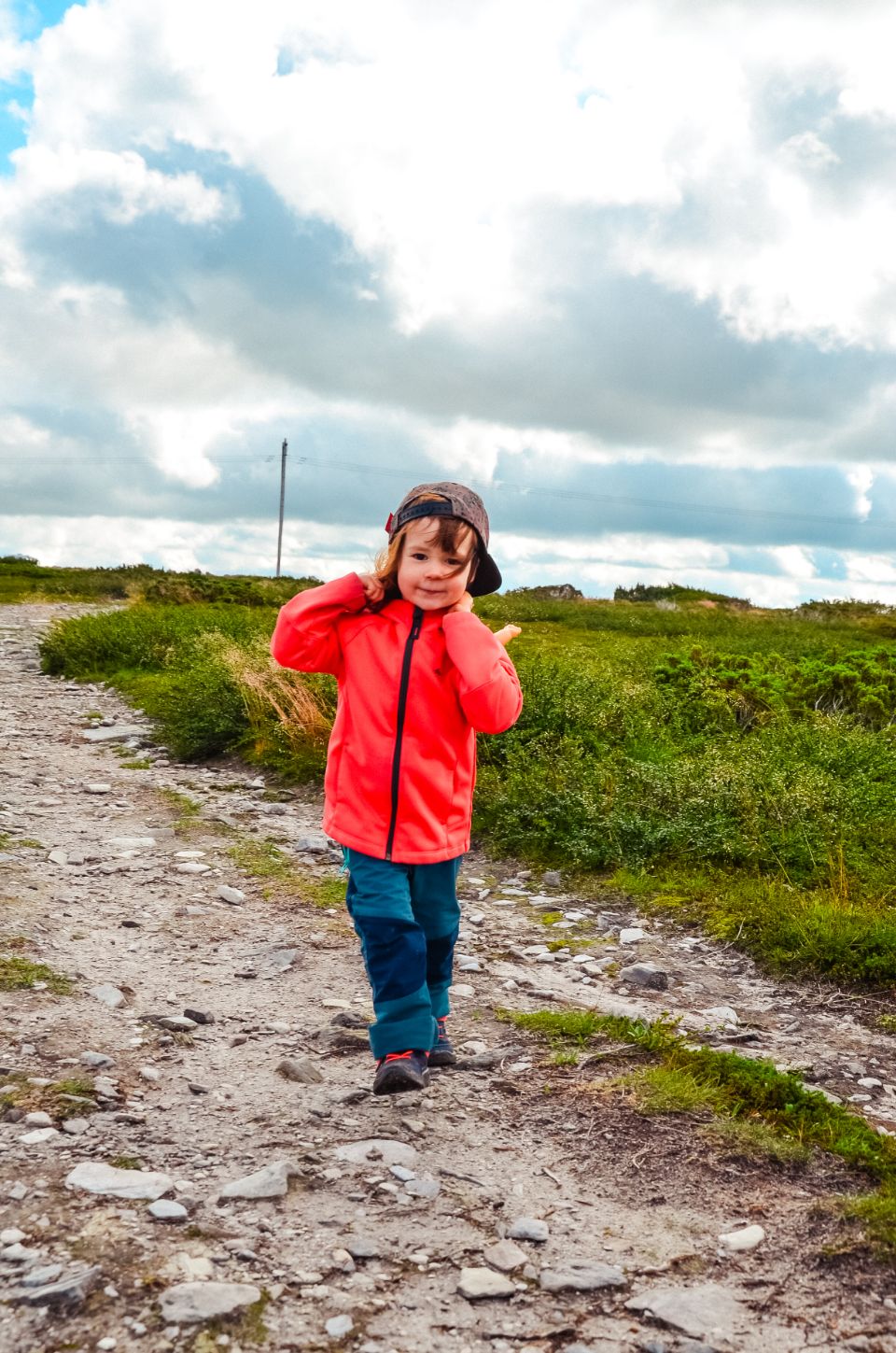 Au réveil, le vent souffle fort mais la pluie nous laisse un peu de répit. Nous suivons un sentier un bon moment, jusqu’à ce que la pluie des jours précédents ne le rende trop impraticable, surtout avec Lou sur les épaules. Demi-tour obligé.