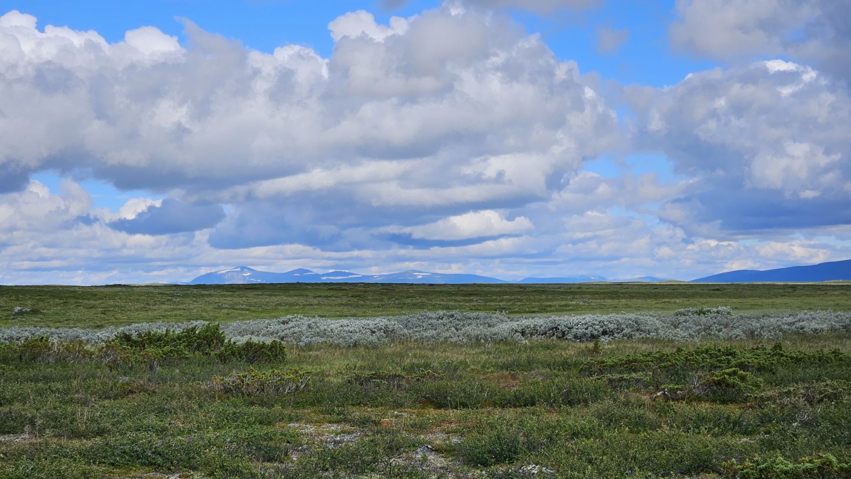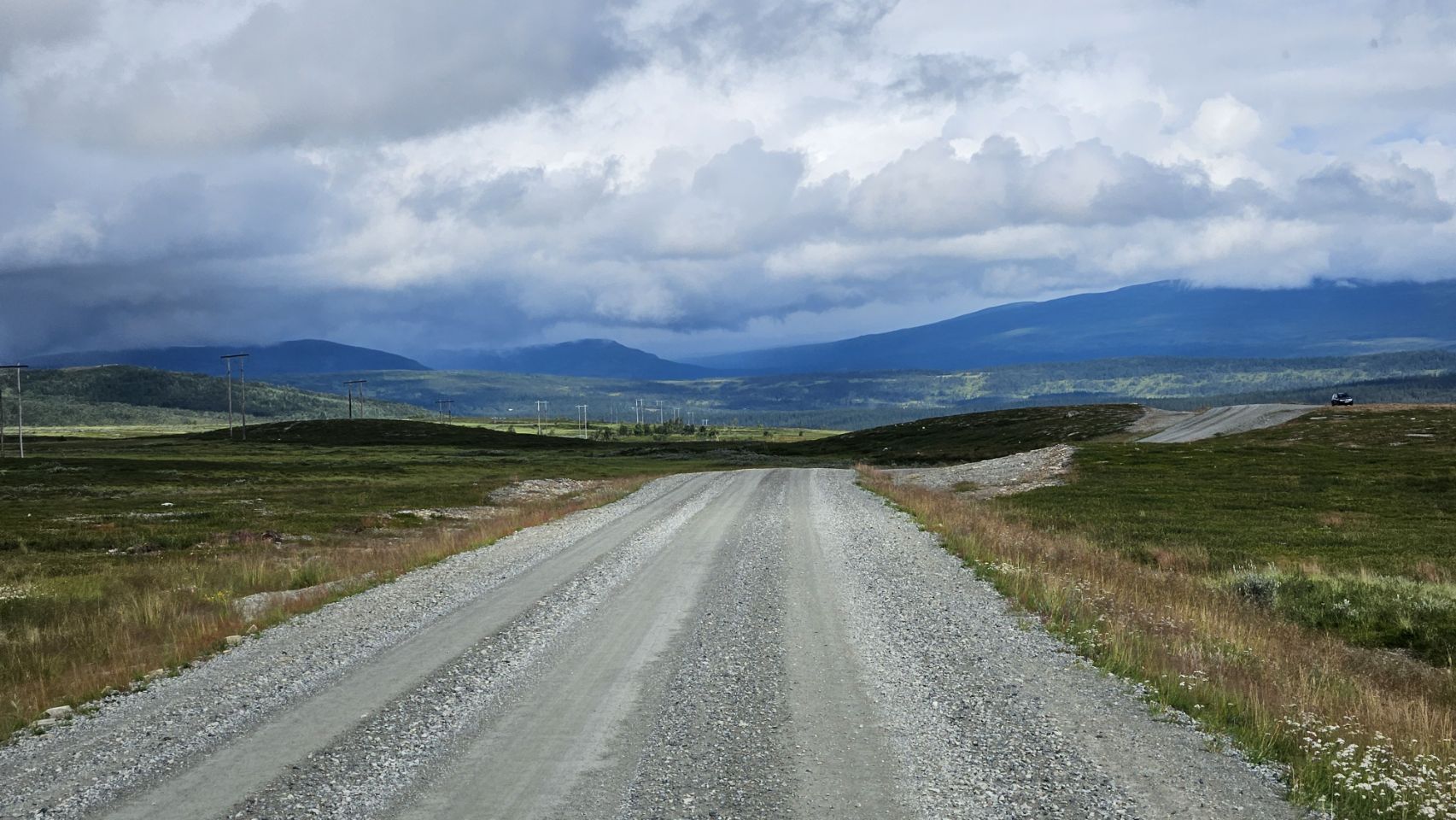 Ce matin, nous prenons la route vers la station de Funäsdalen pour faire les services, le plein d’essence, quelques courses et profiter de la vue. Nous empruntons ensuite la plus haute route de Suède, qui nous mène jusqu’à Flatruet, un vaste plateau d’altitude offrant des panoramas spectaculaires à 360° sur les montagnes alentours. Ce lieu, souvent balayé par le vent, est un passage mythique pour les voyageurs en quête de grands espaces.