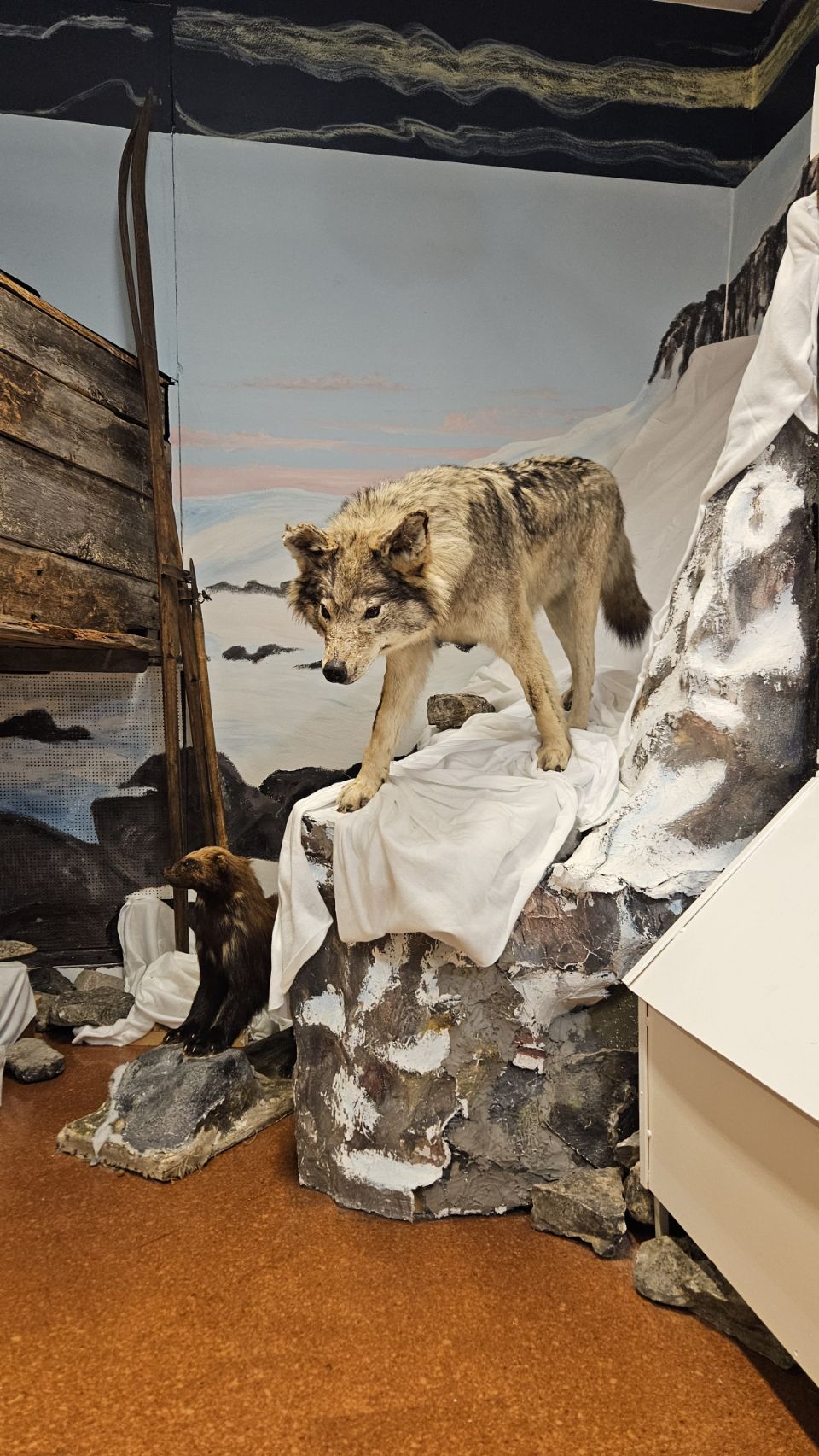 On en profite aussi pour visiter le Gällivare Kulturmuseum. C’est un musée d’histoire locale installé dans l’ancienne école centrale de Gällivare. Il met particulièrement en valeur la culture Sami, les colons, l’industrie minière et la nature qui a façonné la région. Le musée compte plus de 10 000 objets dans ses collections, retraçant l’histoire de Gällivare, de Malmberget, et des communautés autochtones. Il est aussi très famille-friendly : il y a un espace ludique pour enfants, un atelier créatif, une salle de jeu, et même des animaux empaillés pour éveiller la curiosité des plus jeunes. Bref, une visite sympa et gratuite.