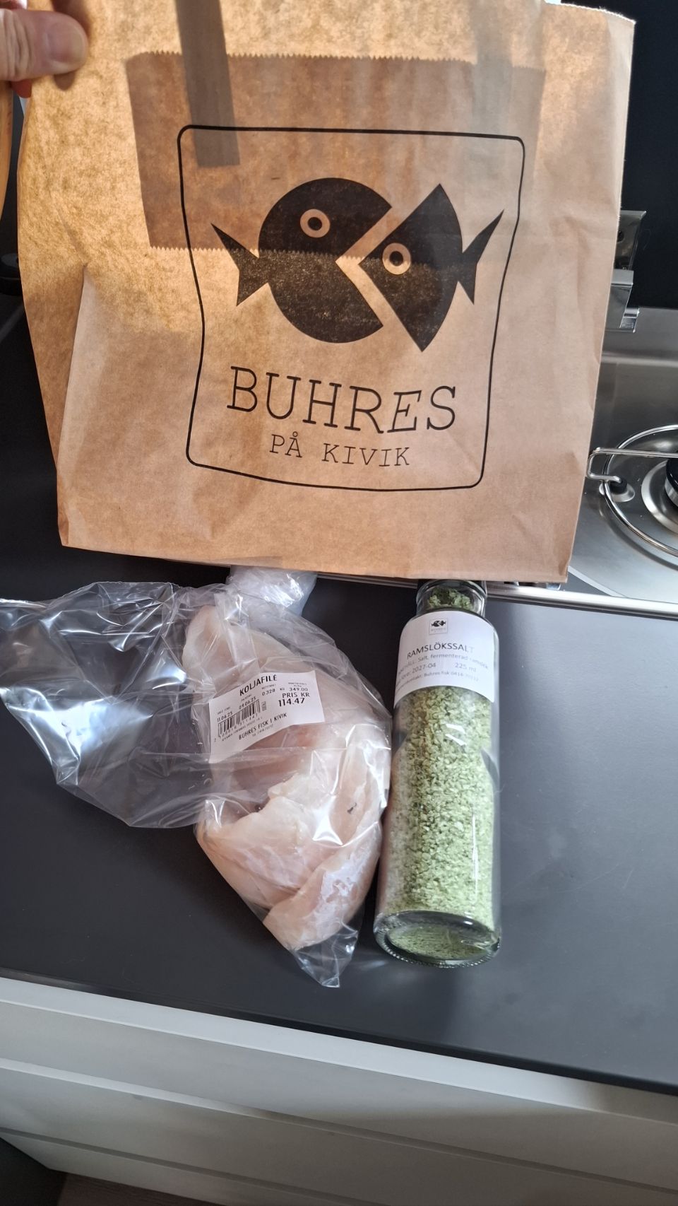 On en profite pour faire un saut à la poissonnerie Buhres på Kivik, une belle adresse en bord de mer. On y déniche un joli filet d’églefin pour ce soir, ainsi qu’un petit coup de cœur côté épicerie : du sel à l’ail des ours… Ça sent déjà bon dans le placard du camping-car 😄