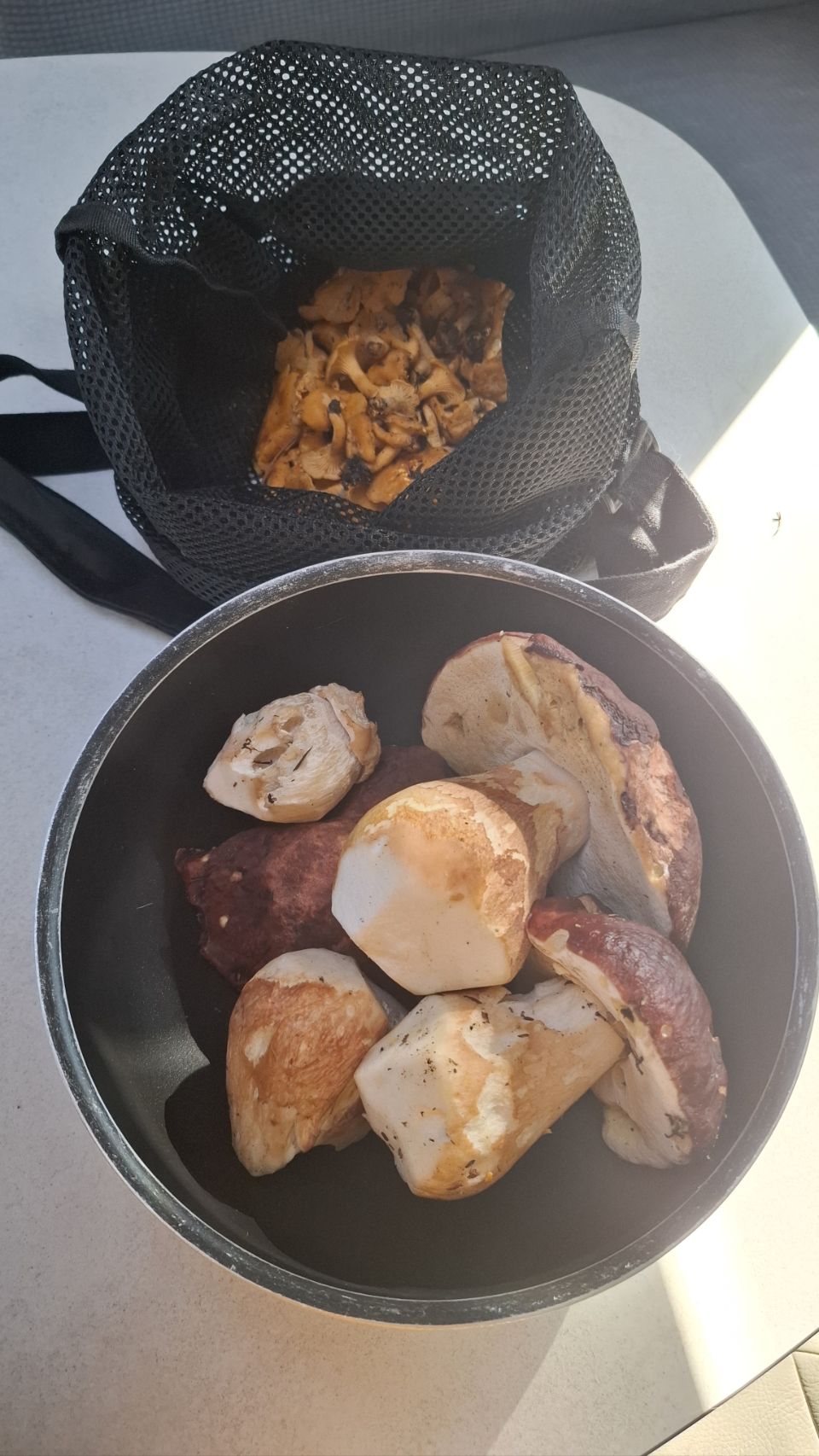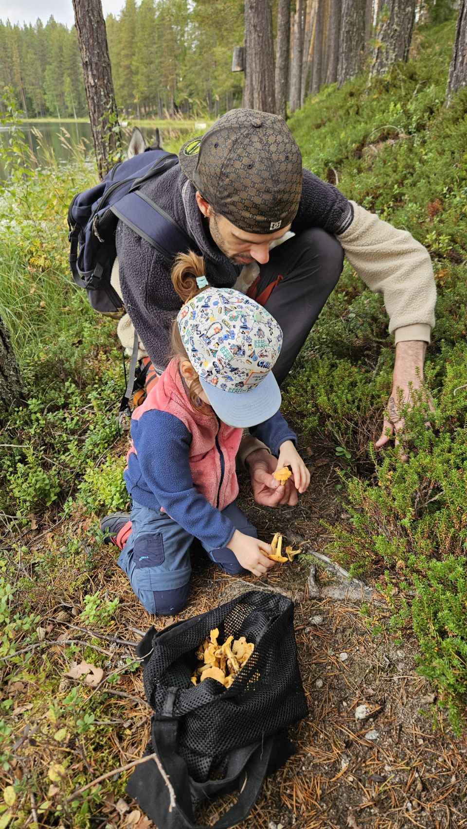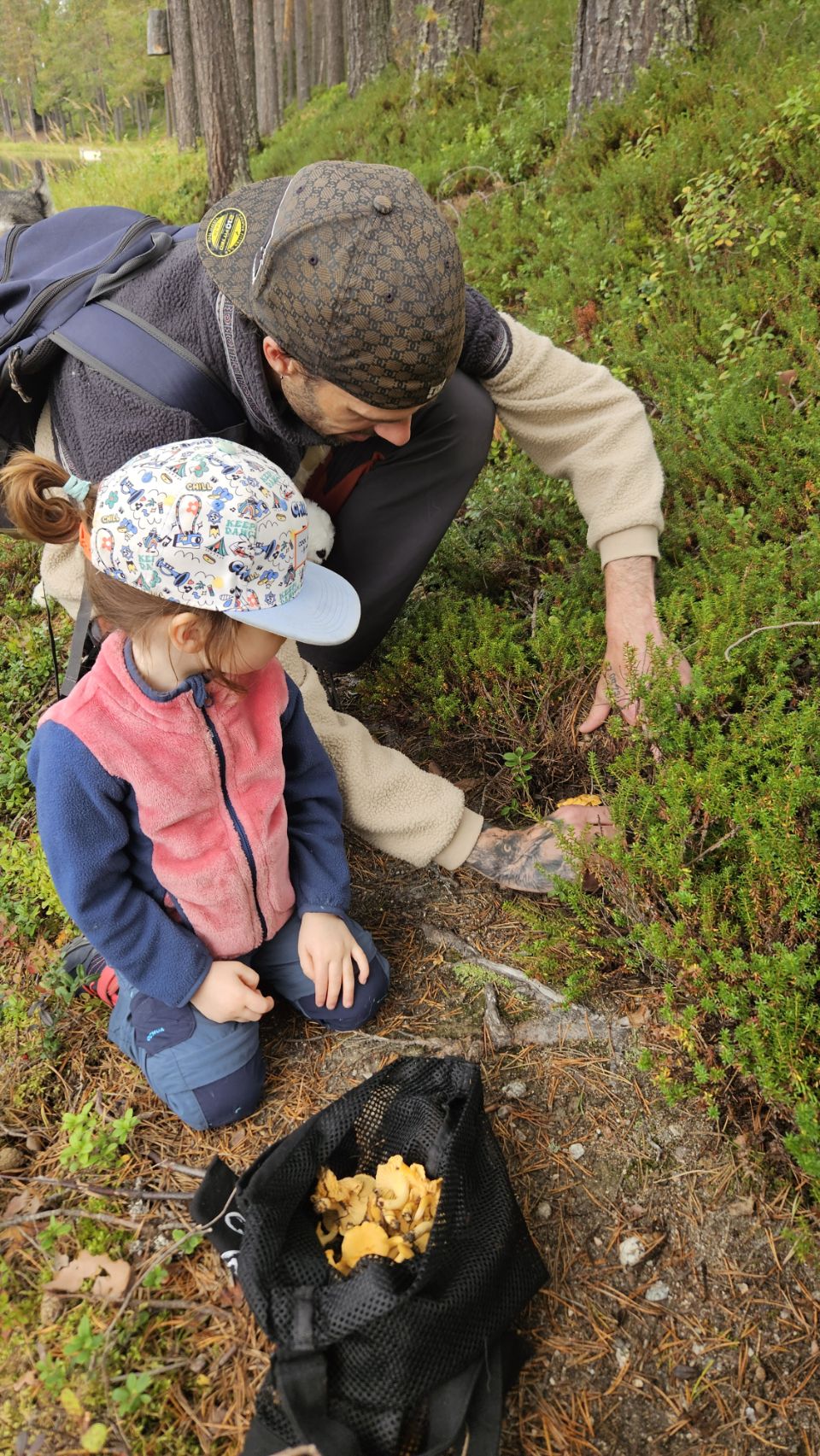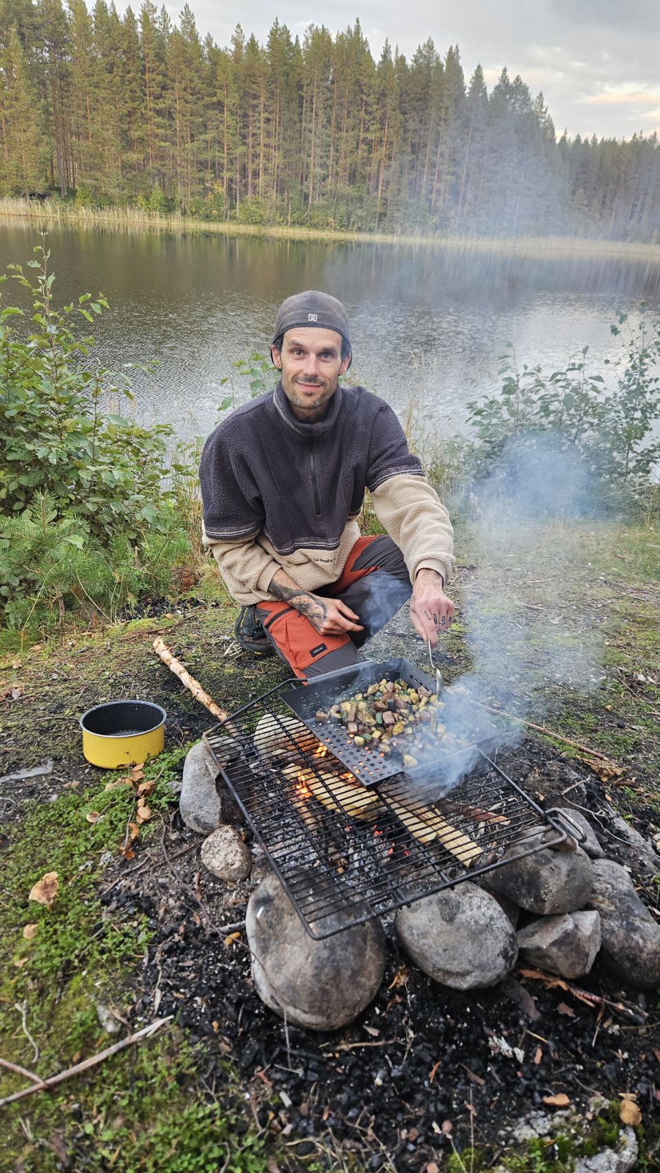 Nouvelle balade, cette fois fructueuse : des cèpes des pins et des girolles viennent remplir nos paniers. Le dîner s’annonce festif : saucisses, courgettes, fromage grillost au barbecue, et poêlée de champignons. Le grillost est un fromage suédois qui se grille sans fondre. Sur le papier, un festin. Dans l’assiette… disons que seule la poêlée a tenu ses promesses. Mais peu importe : le soleil, la nature, le temps partagé ensemble suffisent à rendre la journée parfaite.