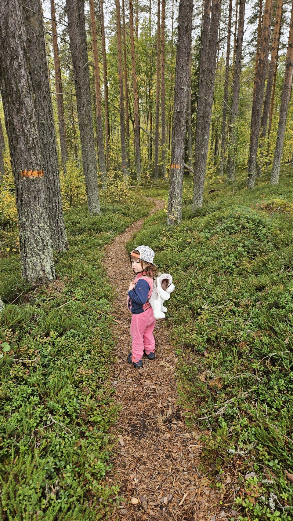 Le lendemain, nous partons explorer la réserve naturelle voisine. La balade est tranquille, ponctuée d’arrêts autour des petits lacs et étangs, dont l’un arbore une couleur vert profond, presque irréelle. Côté cueillette, pas vraiment de réussite : seulement un petit cèpe des pins. Les chiens, eux, profitent pleinement. Jump, en liberté, se fait discret et sage comme tout. Sa vue baisse de plus en plus, surtout la nuit où il peine à se repérer. Pas facile de le voir vieillir… Alors nous faisons en sorte qu’il profite au maximum, sans le fatiguer.