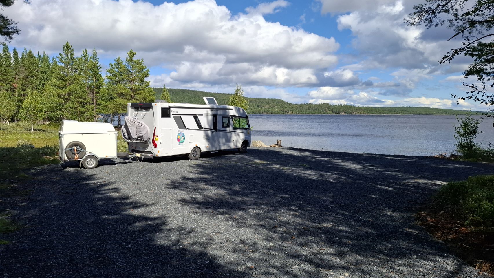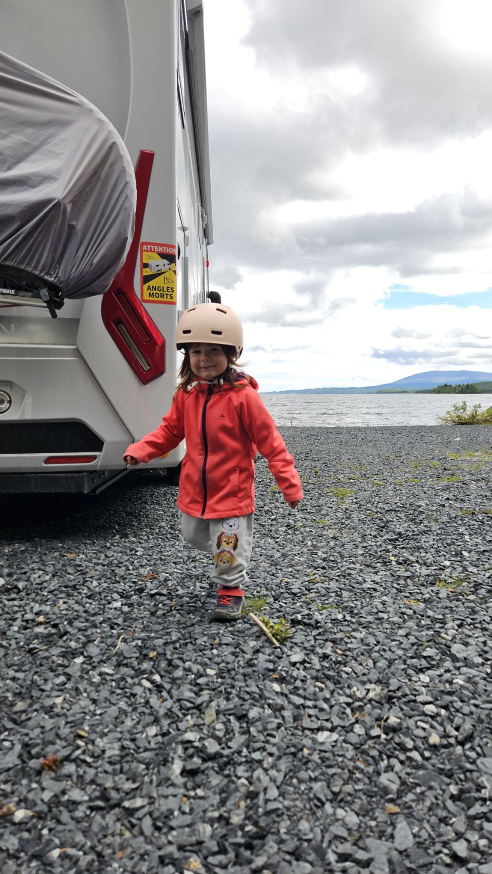 Nous avons trouvé un spot parfait pour poser le camping-car : presque les pieds dans l’eau, avec une vue splendide sur le lac et la montagne au loin. Un endroit calme, juste pour nous, où l’on se ressource pleinement.