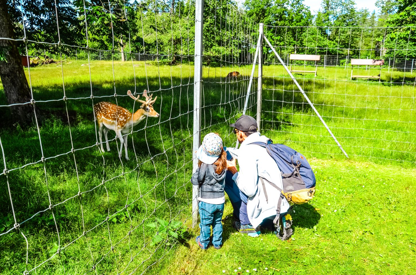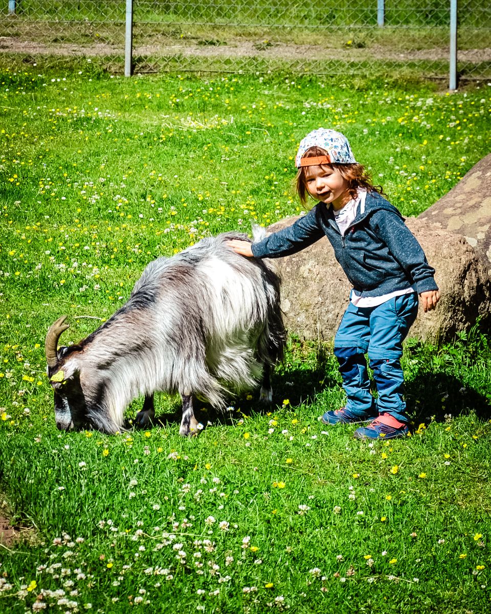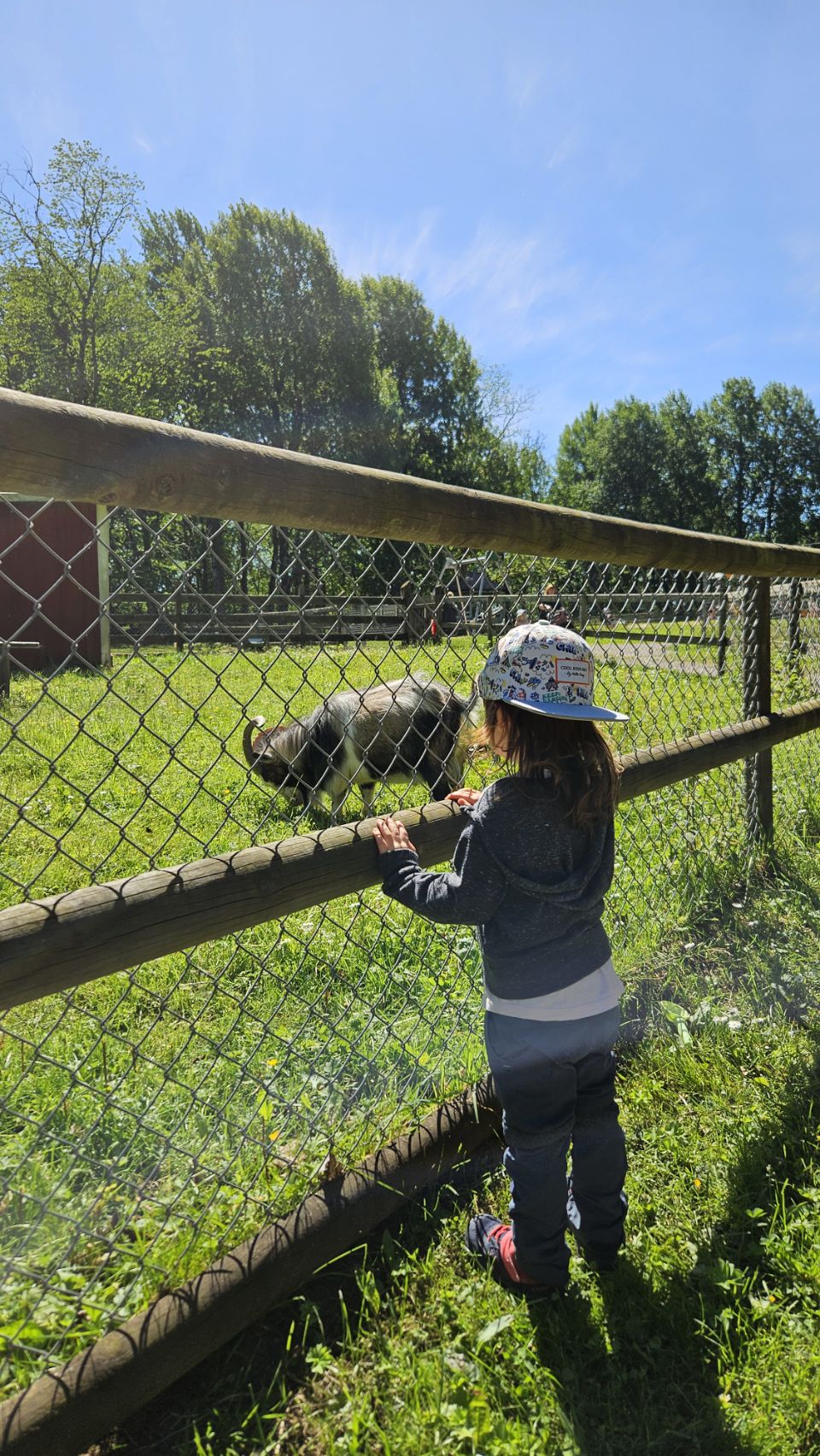 Le lendemain matin, on part à pied jusqu’au Djurspark, un petit zoo gratuit niché sur le plateau. C’est un vrai paradis pour les enfants : lamas, ânes, chèvres, moutons, biches, poules, lapins, cochons, mini poneys… Tout le monde est là !