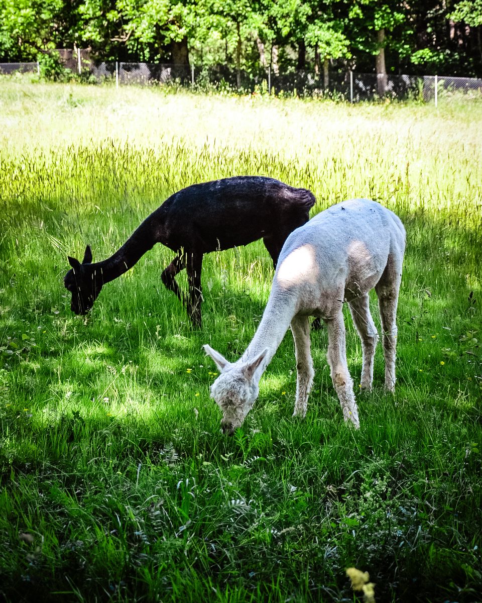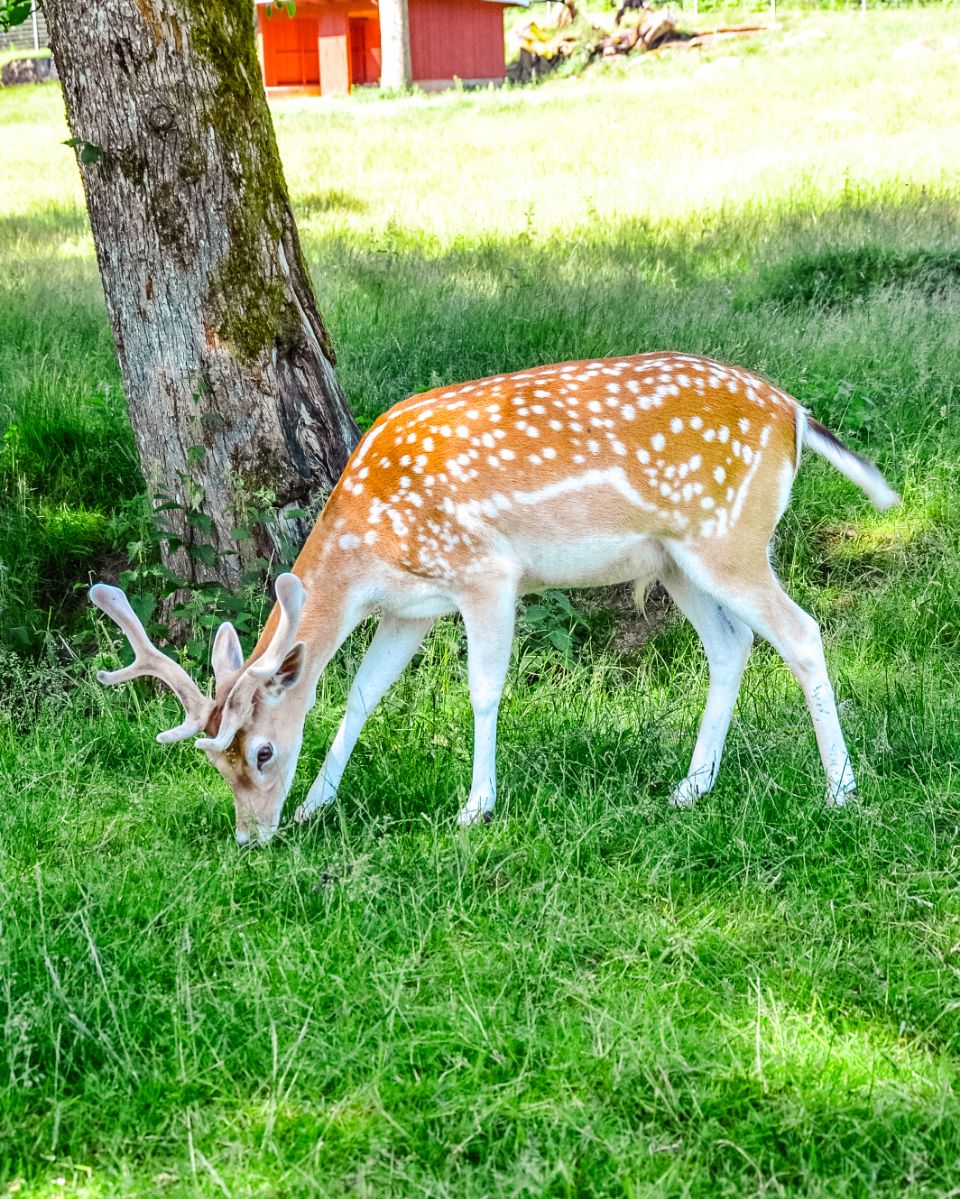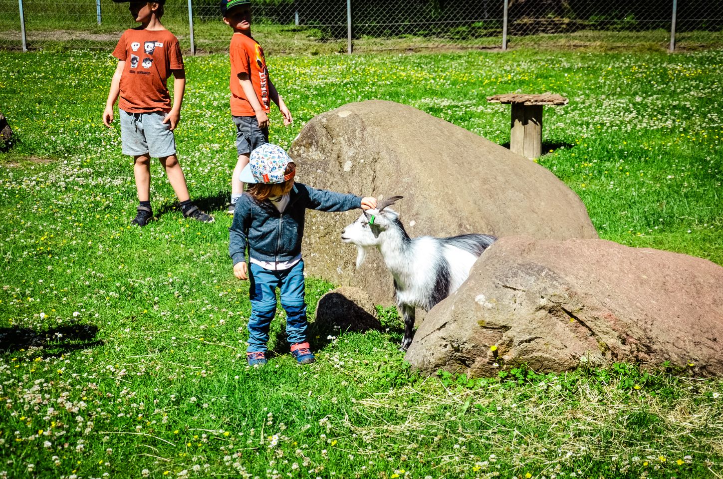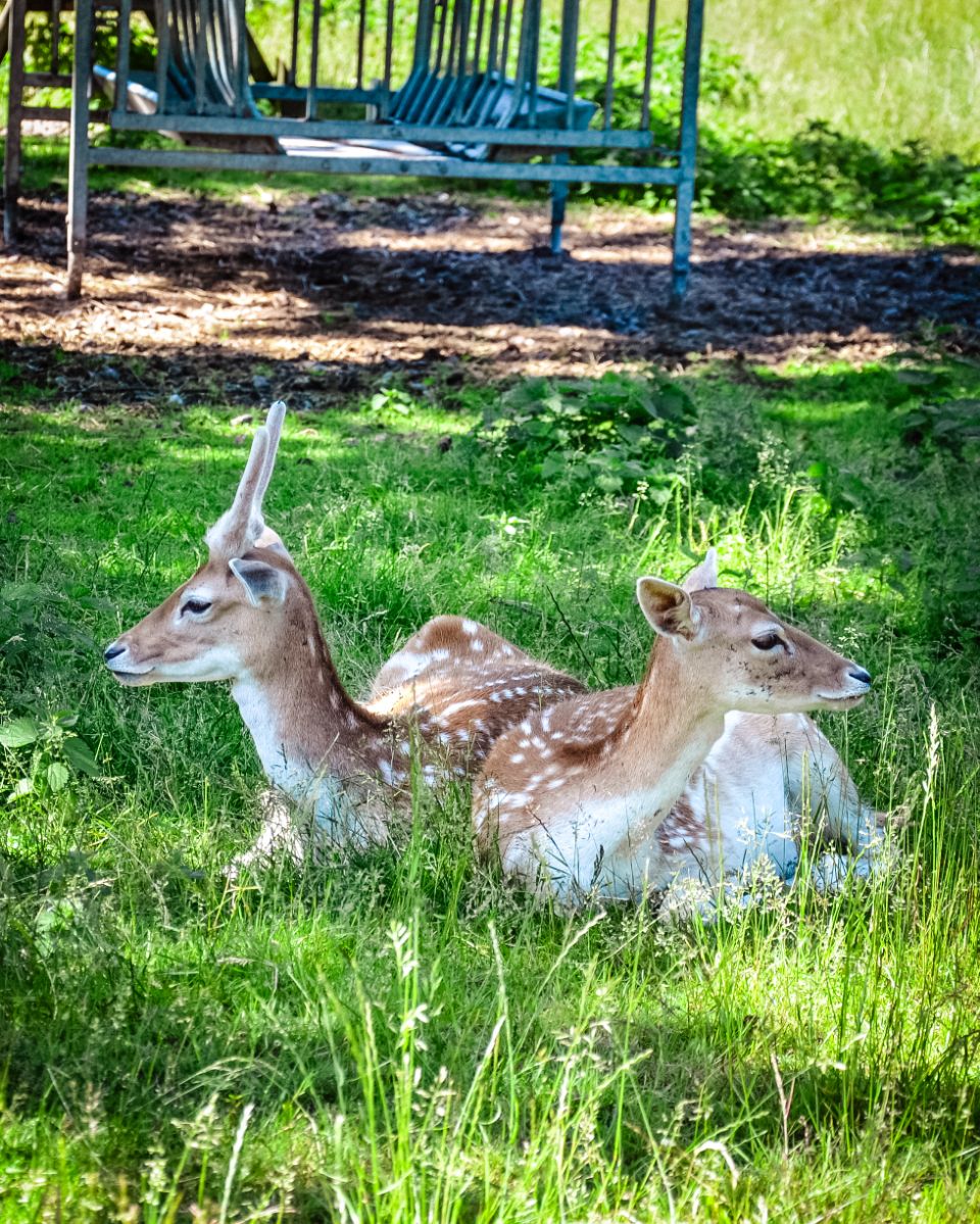 Le lendemain matin, on part à pied jusqu’au Djurspark, un petit zoo gratuit niché sur le plateau. C’est un vrai paradis pour les enfants : lamas, ânes, chèvres, moutons, biches, poules, lapins, cochons, mini poneys… Tout le monde est là !