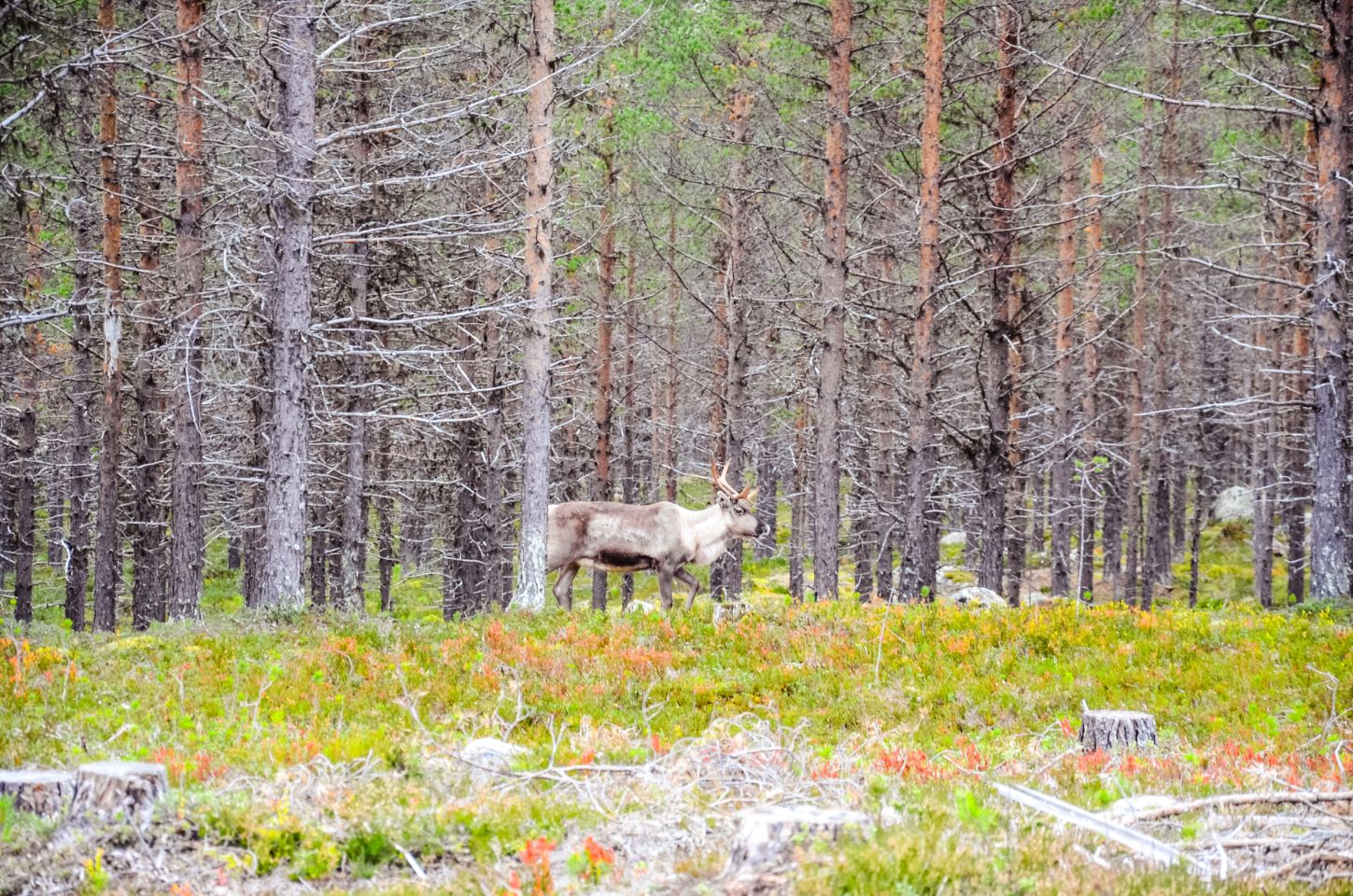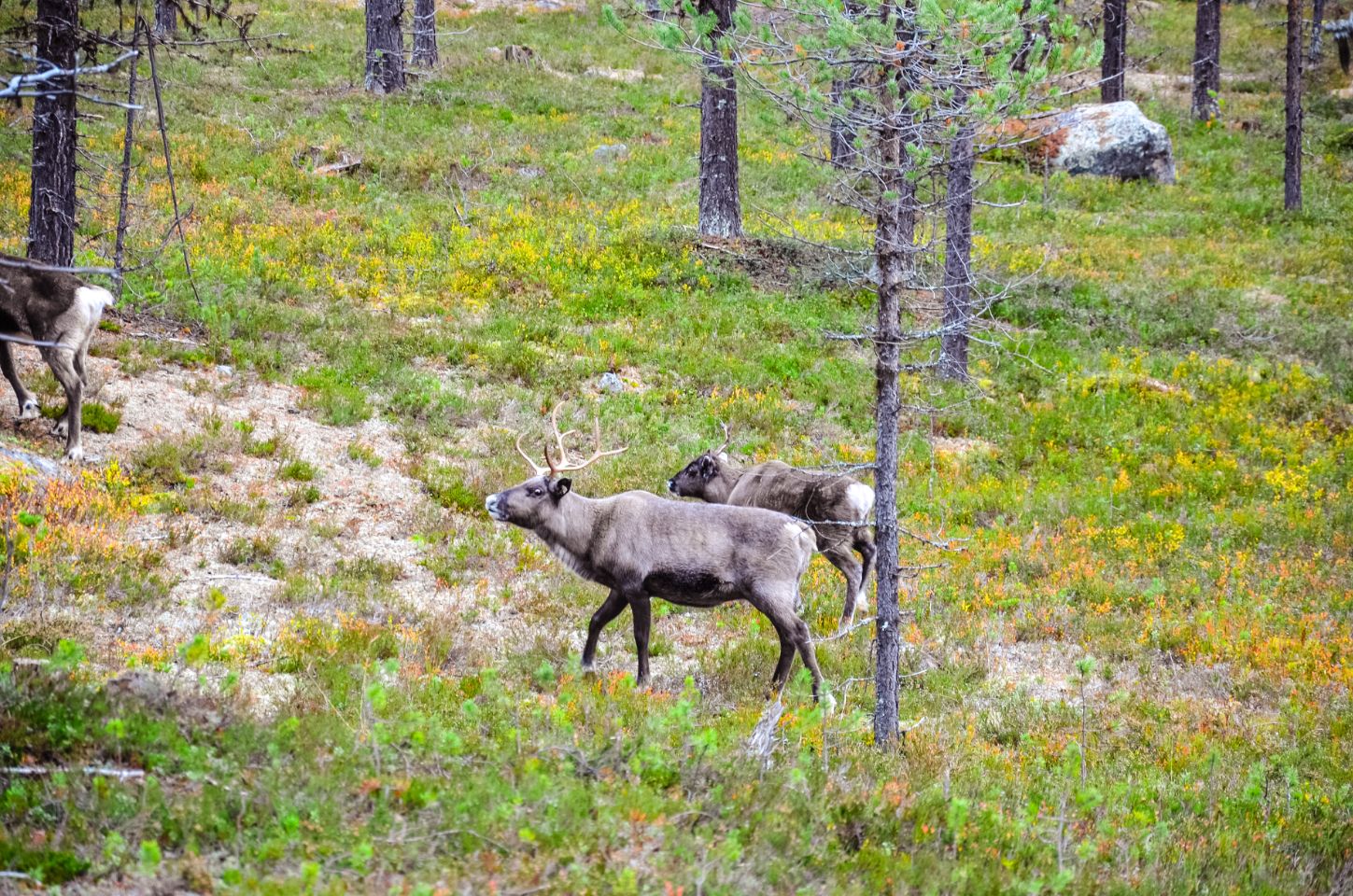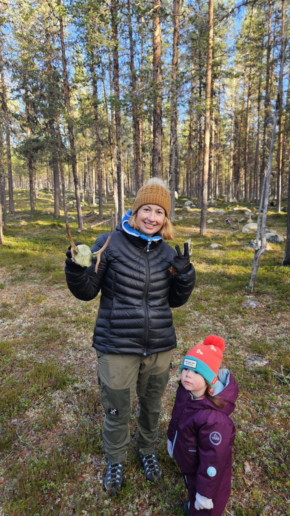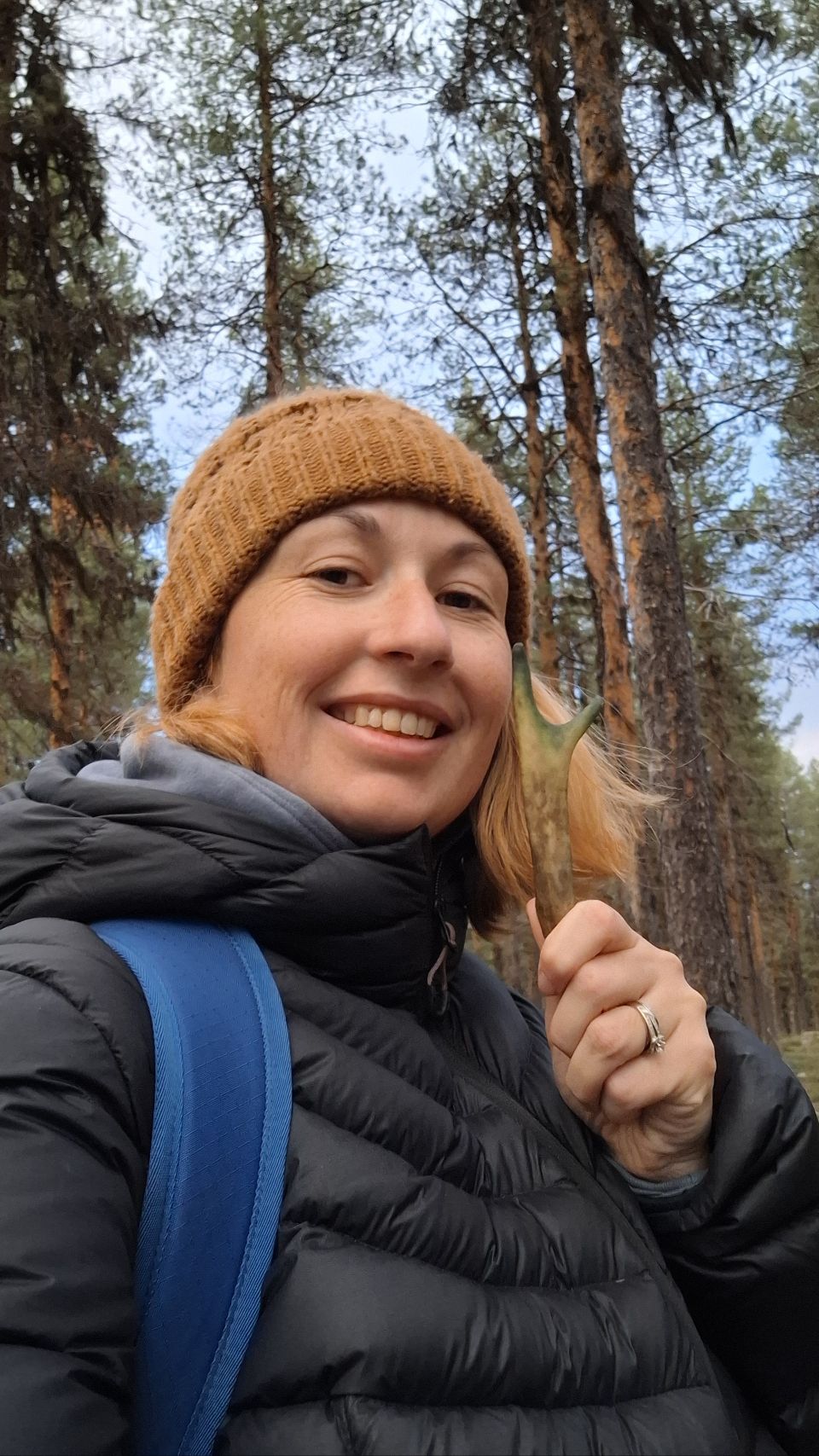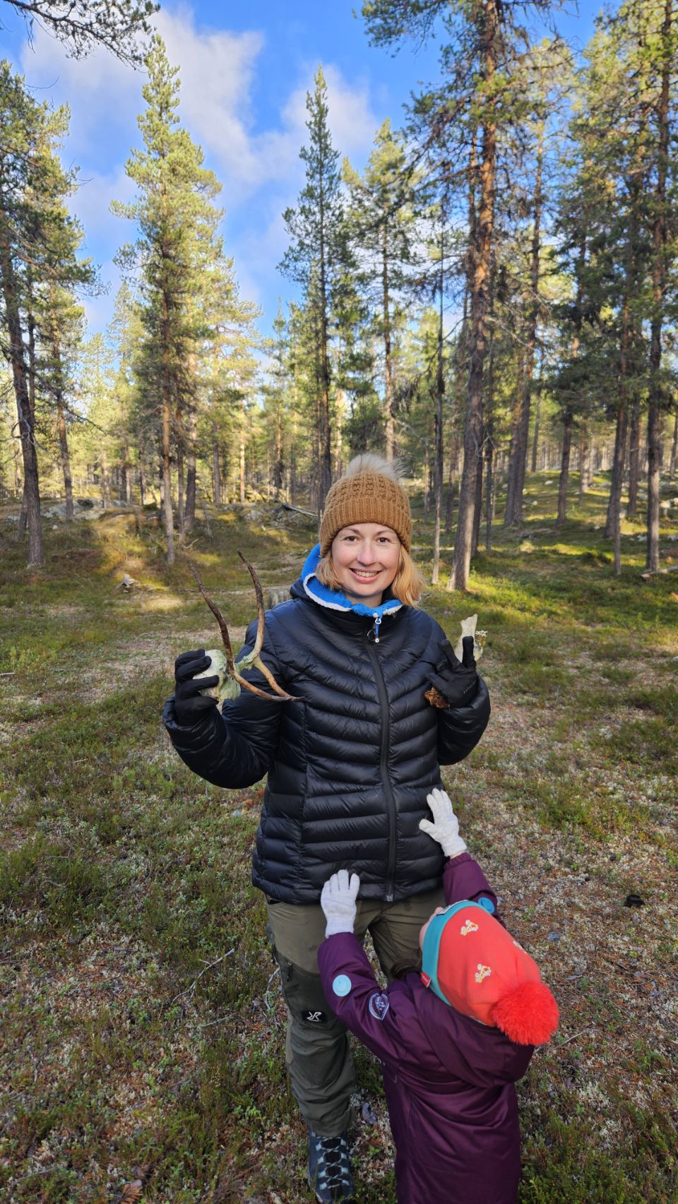 Le premier jour, je pars seule en balade dans la forêt, à la recherche de bois. Je reviens avec un petit bois de renne, minuscule mais prometteur. Le secteur semble idéal. Le lendemain, on y retourne tous ensemble et on trouve le graal ! Guillaume y retourne encore l’après-midi, puis tous ensemble le lendemain matin, et moi à vélo l’après-midi. Bilan : 14 bois de rennes et 1 petit d’élan. Autant dire qu’on est ravis de nos découvertes !
