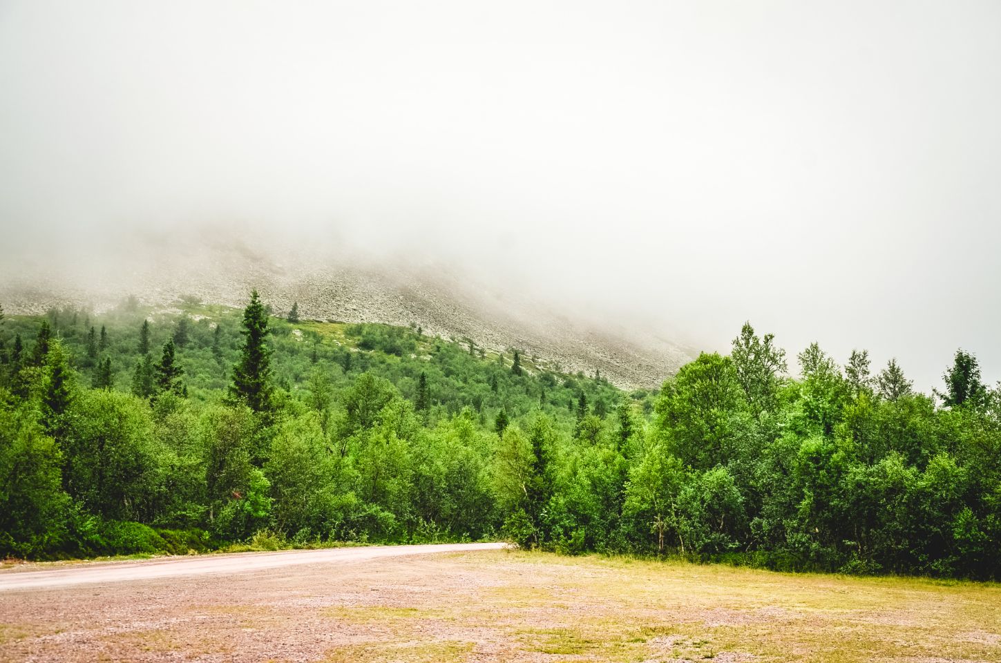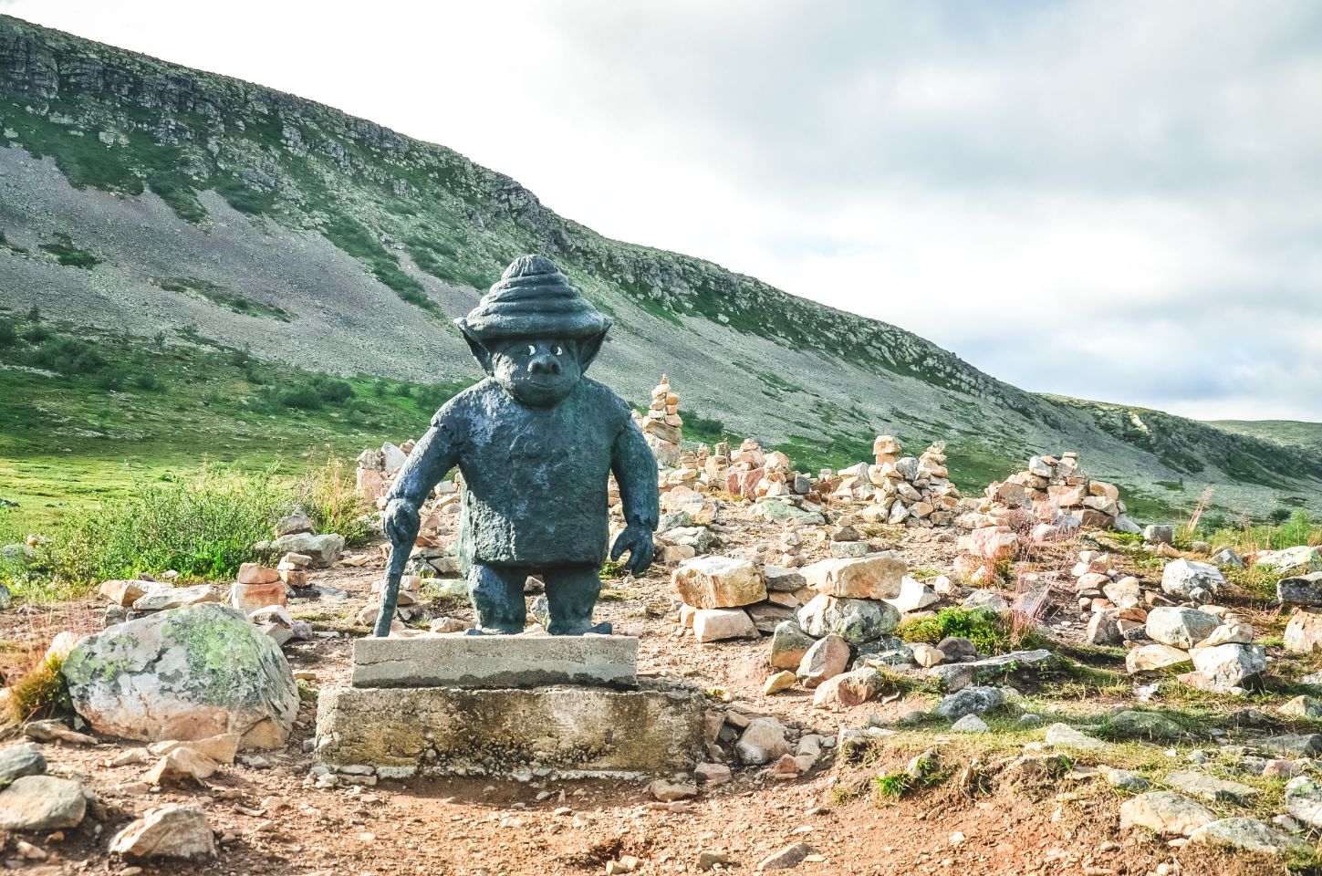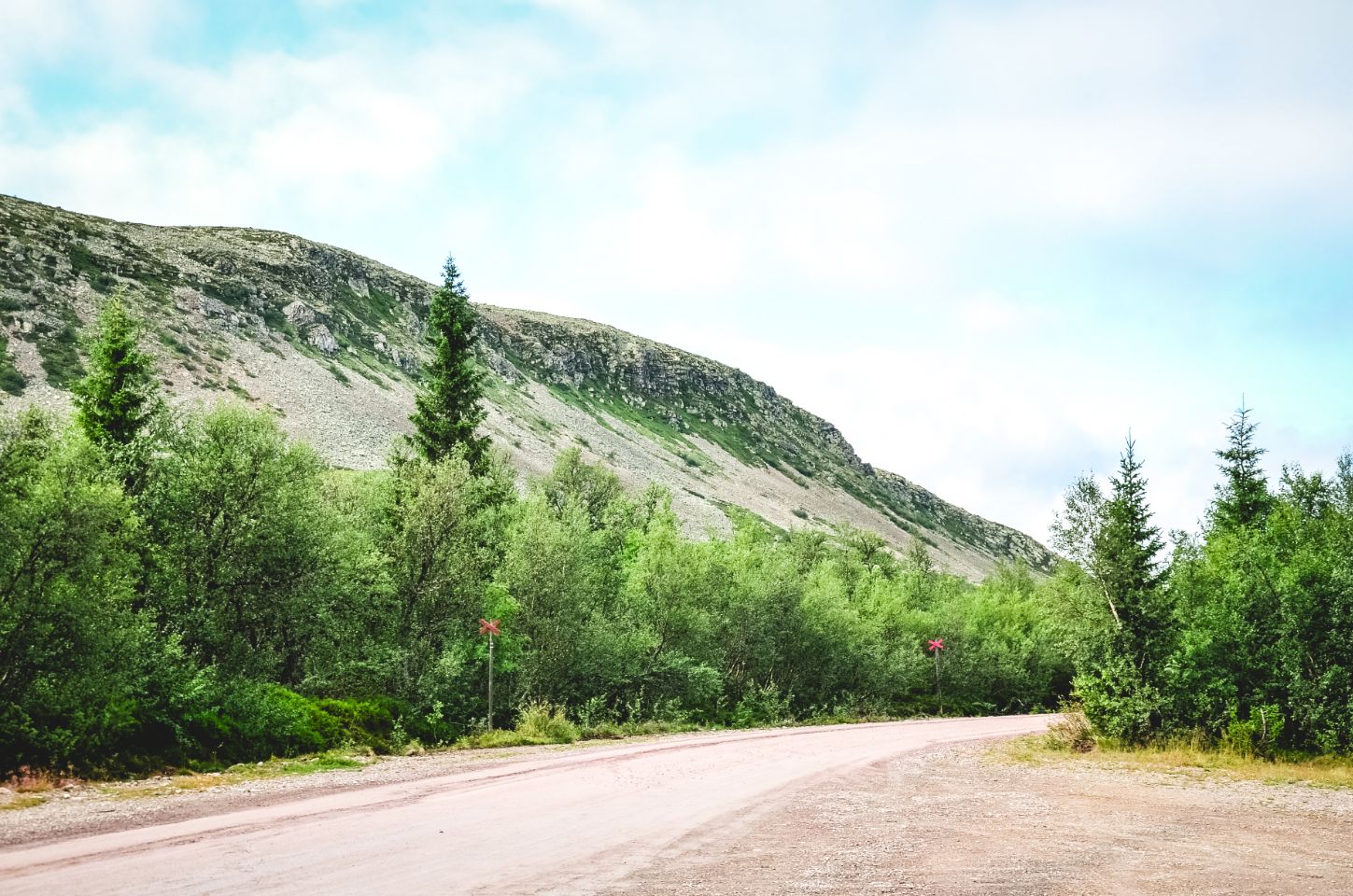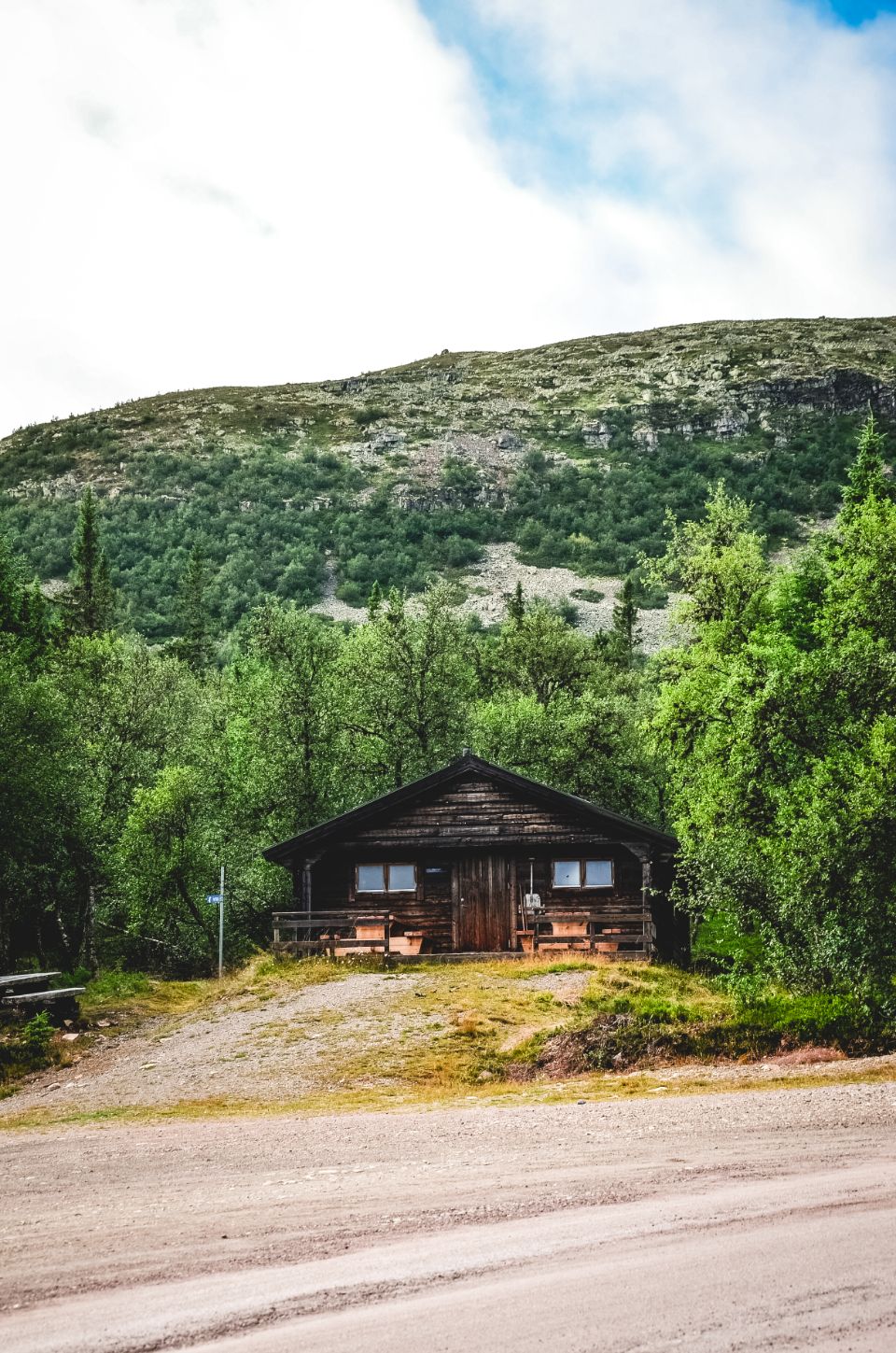 Avant de repartir, nous faisons un arrêt à Trollvägen, surnommé la “route du troll”. Selon la légende, un petit troll habiterait là. Le lieu est connu pour un phénomène optique amusant : une portion de route qui semble monter… alors qu’elle descend en réalité. Les voitures, laissées au point mort, semblent avancer toutes seules en “remontant” la pente. Nous n’avons pas essayé, mais ça paraît plutôt rigolo.