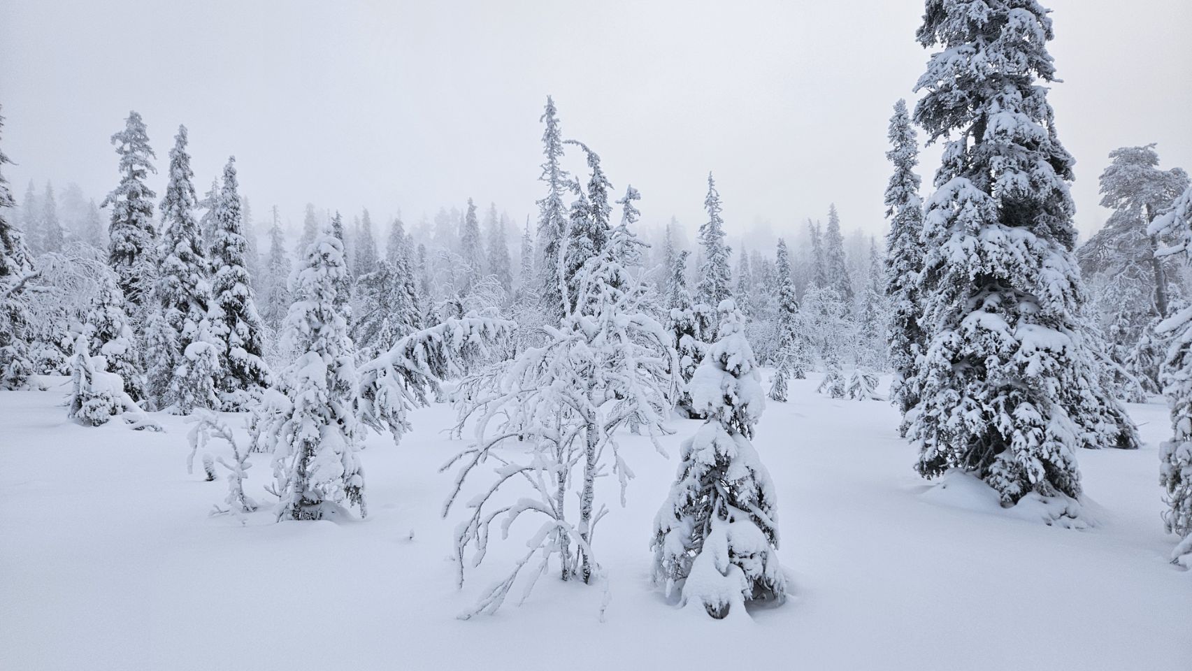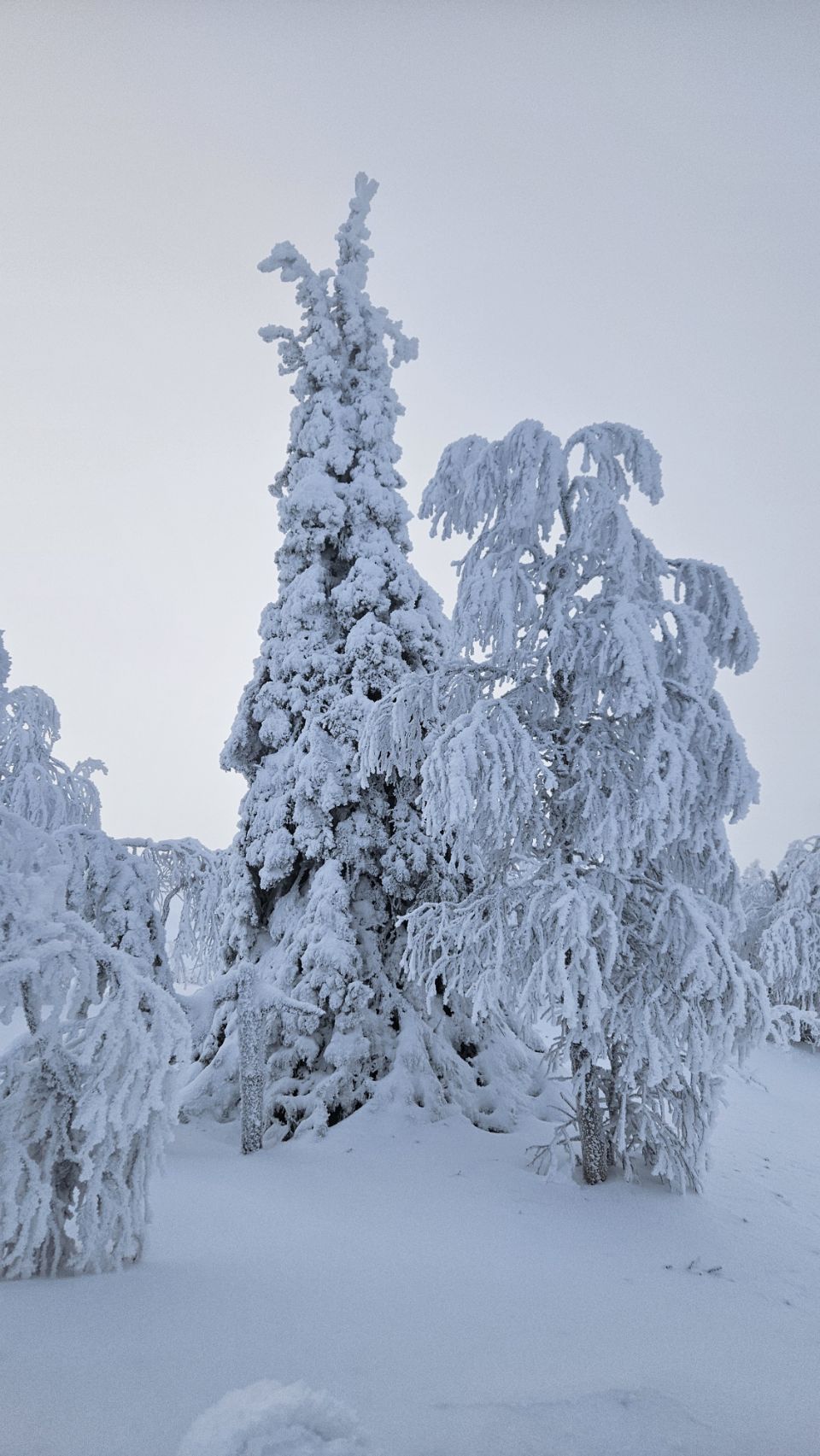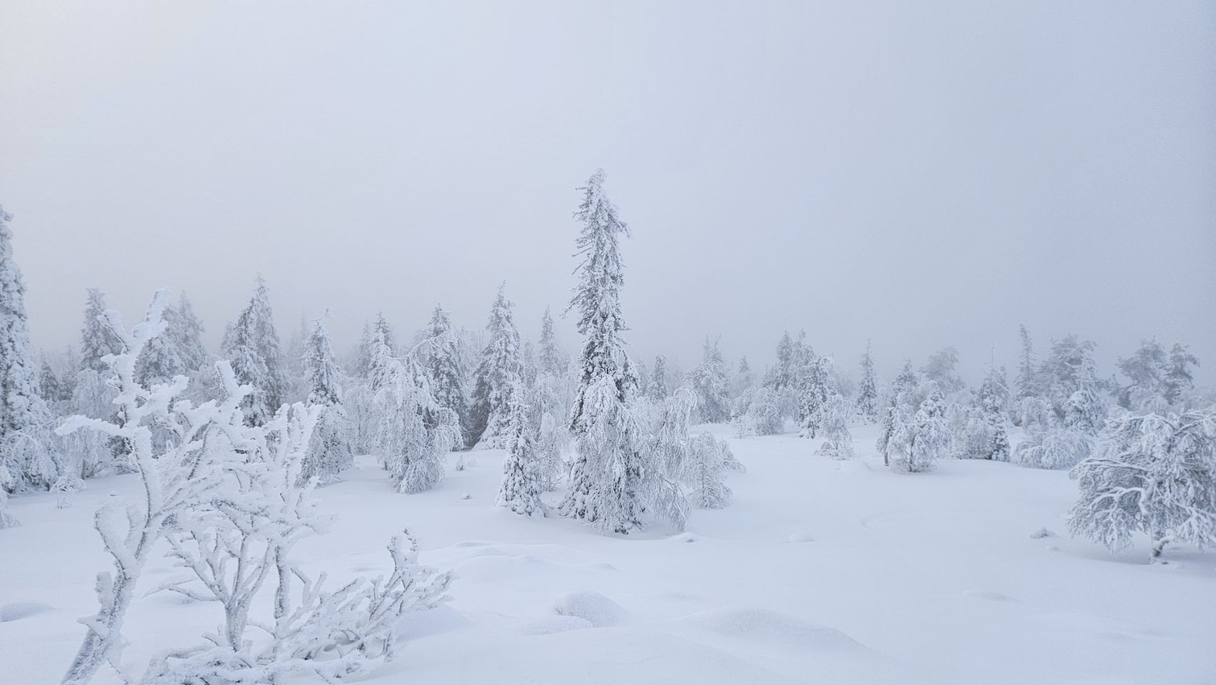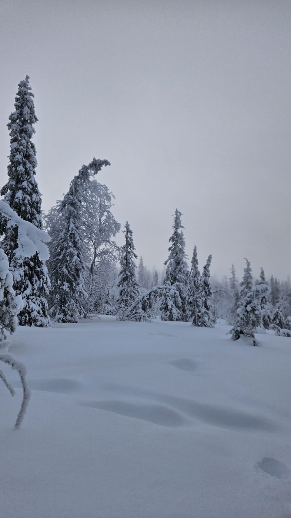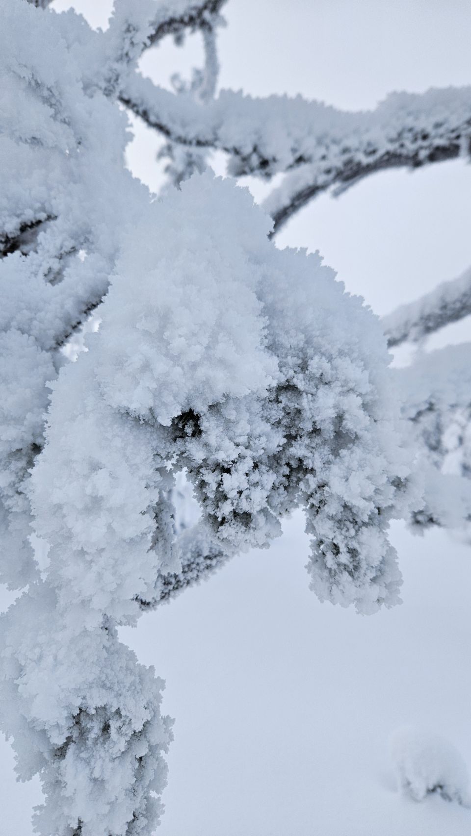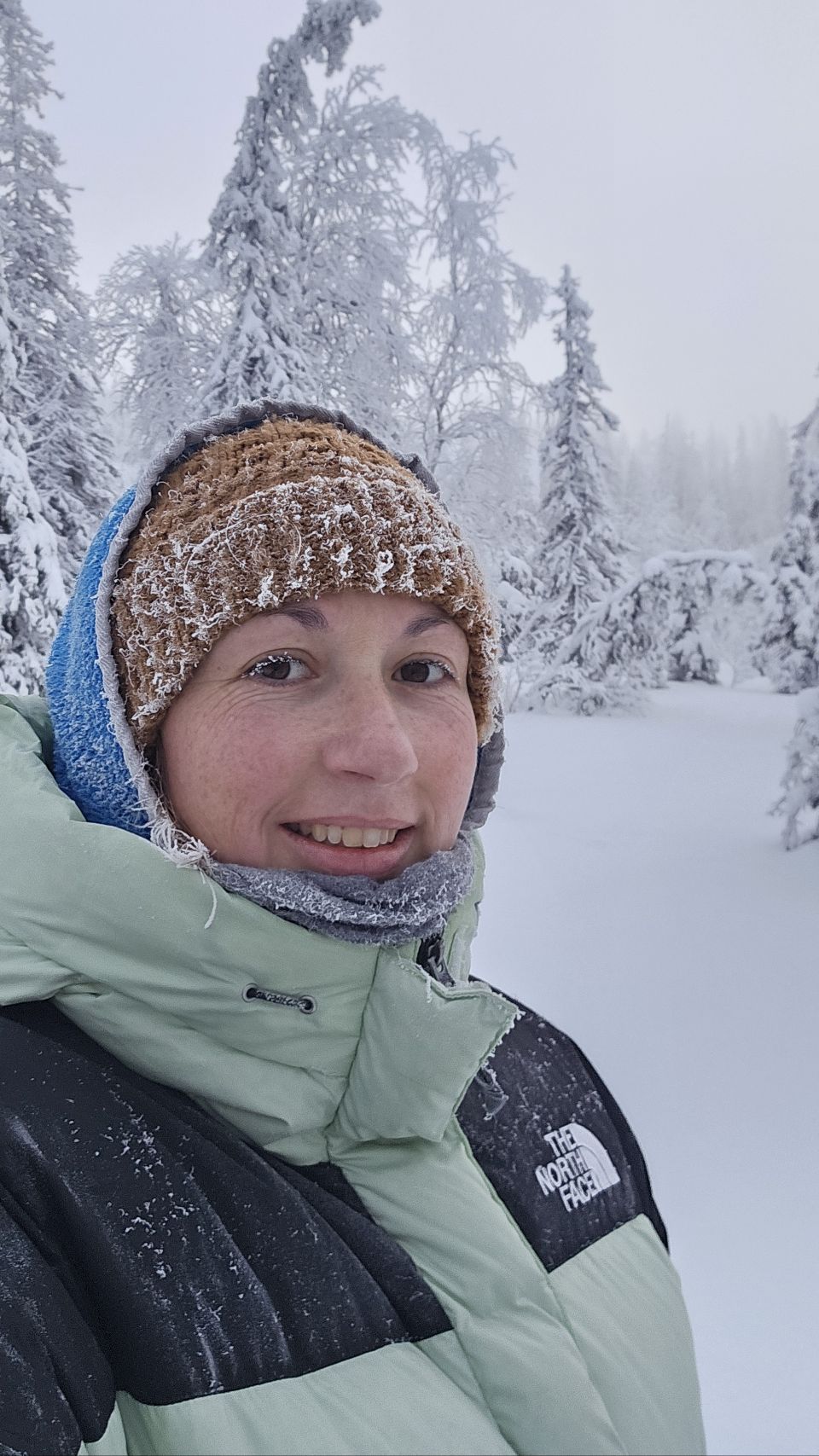 Chaque pas nous plonge un peu plus dans cette atmosphère irréelle. Tout est blanc. Le sol, les arbres, l’air semble presque immobile. C’est une sensation difficile à décrire, mais profondément marquante : un mélange de plénitude, de calme absolu, et de respect face à une nature aussi dure que magnifique.