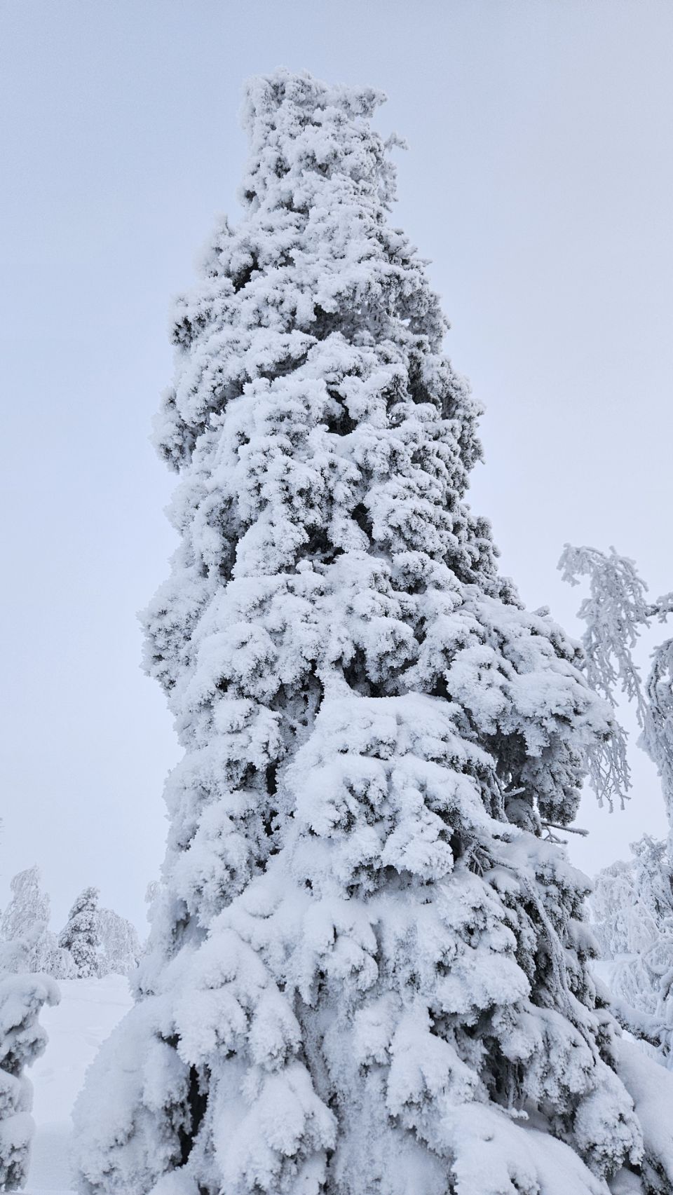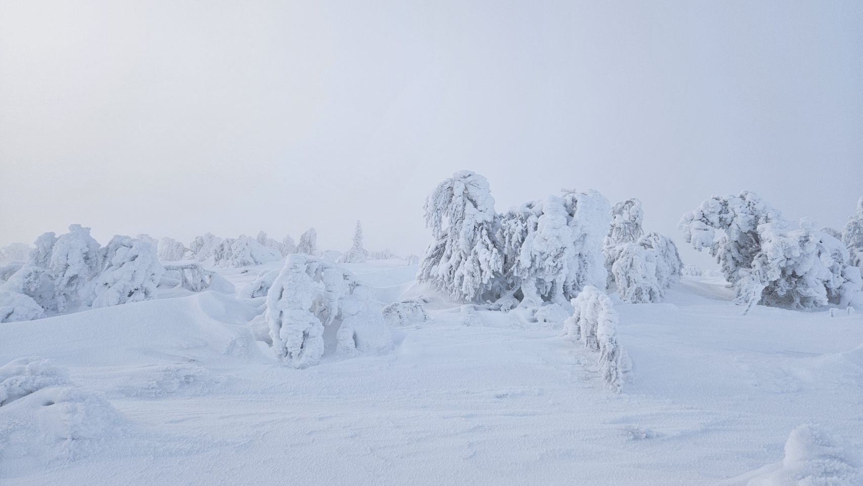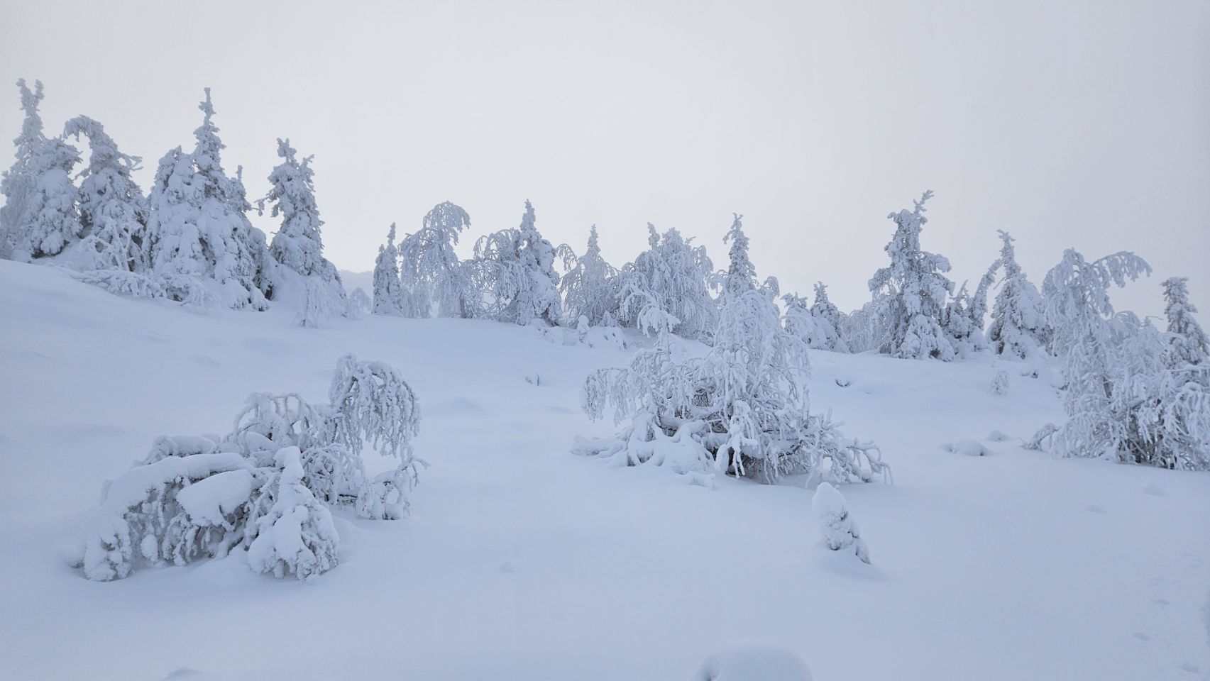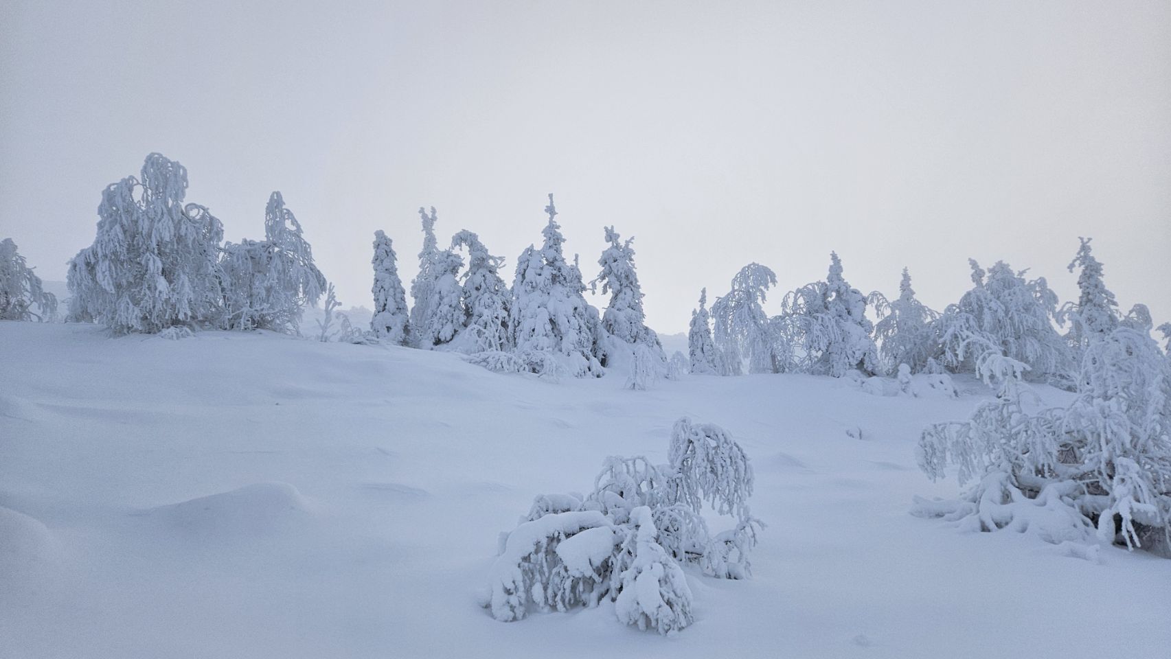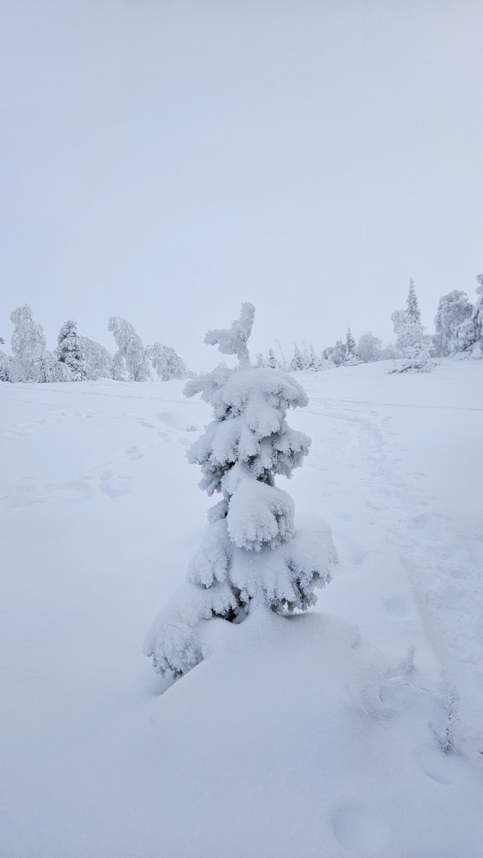 Chaque pas nous plonge un peu plus dans cette atmosphère irréelle. Tout est blanc. Le sol, les arbres, l’air semble presque immobile. C’est une sensation difficile à décrire, mais profondément marquante : un mélange de plénitude, de calme absolu, et de respect face à une nature aussi dure que magnifique.