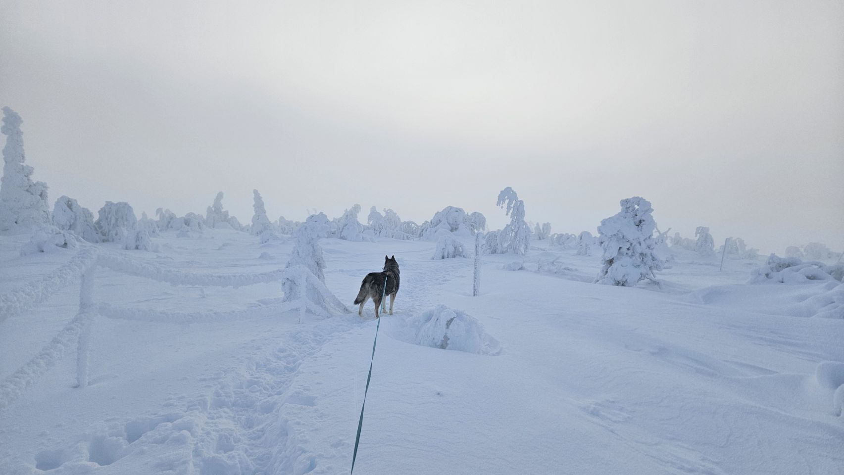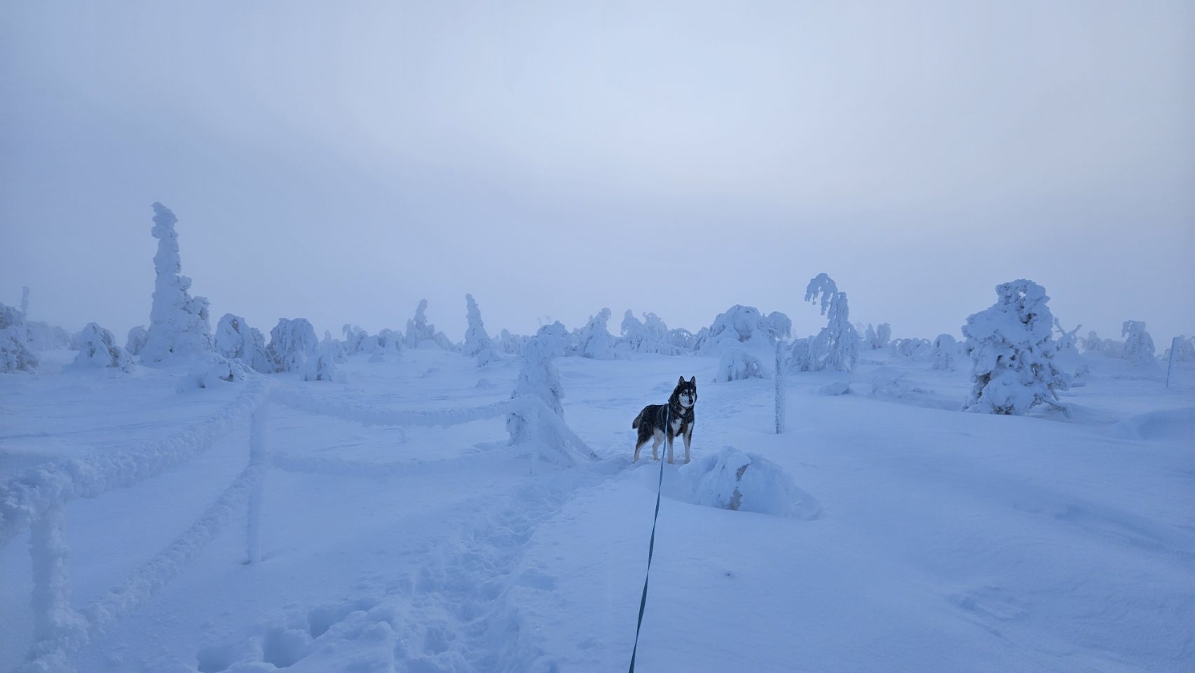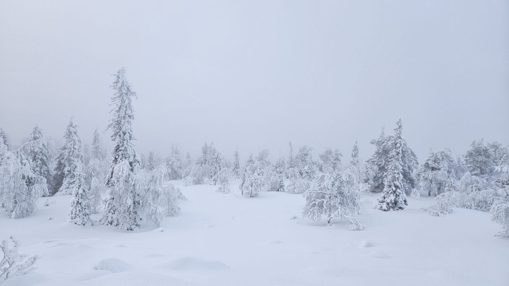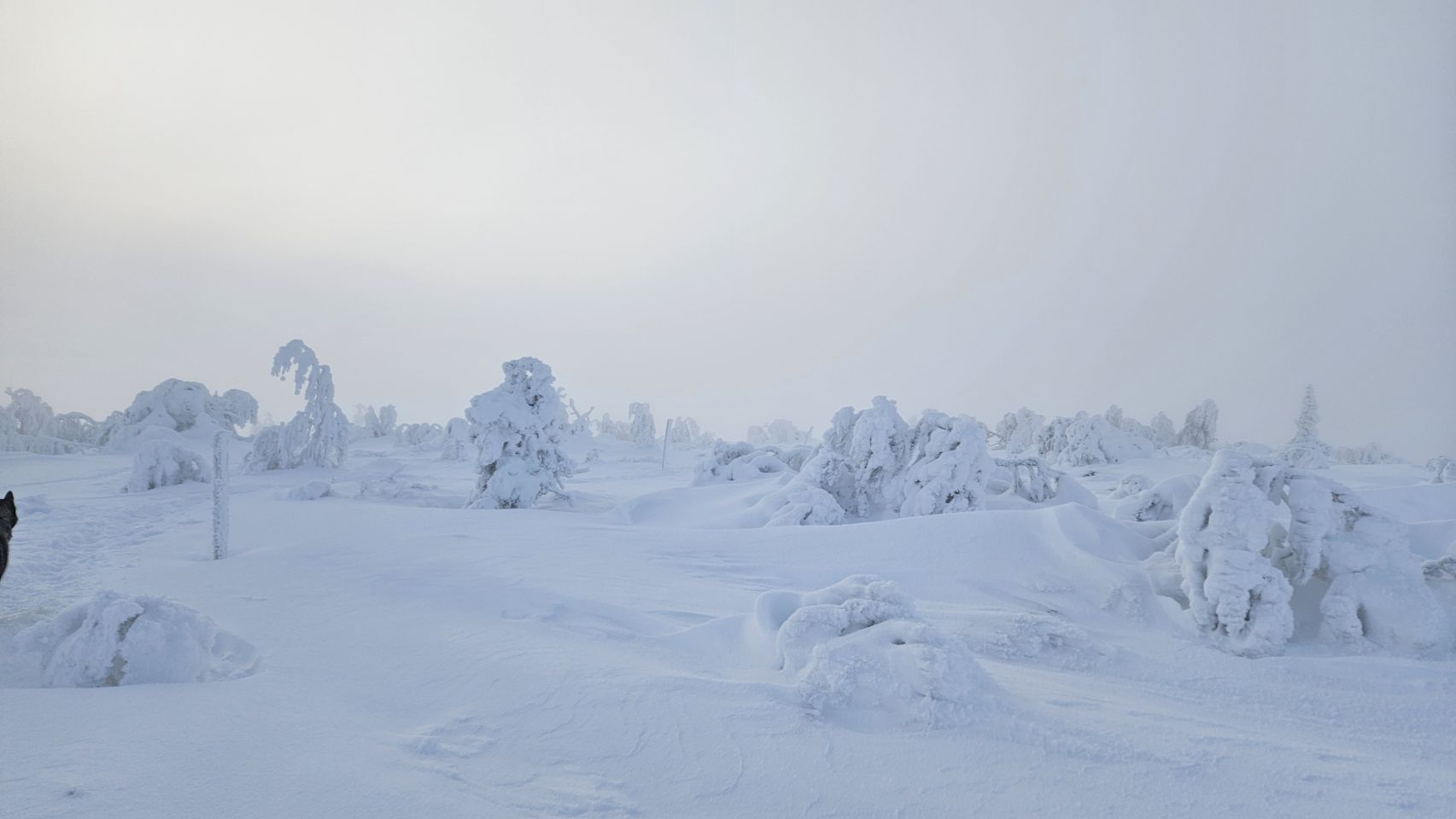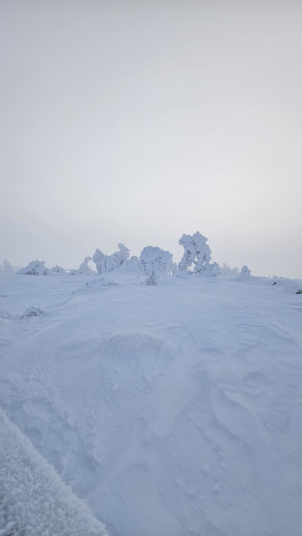 Chaque pas nous plonge un peu plus dans cette atmosphère irréelle. Tout est blanc. Le sol, les arbres, l’air semble presque immobile. C’est une sensation difficile à décrire, mais profondément marquante : un mélange de plénitude, de calme absolu, et de respect face à une nature aussi dure que magnifique.