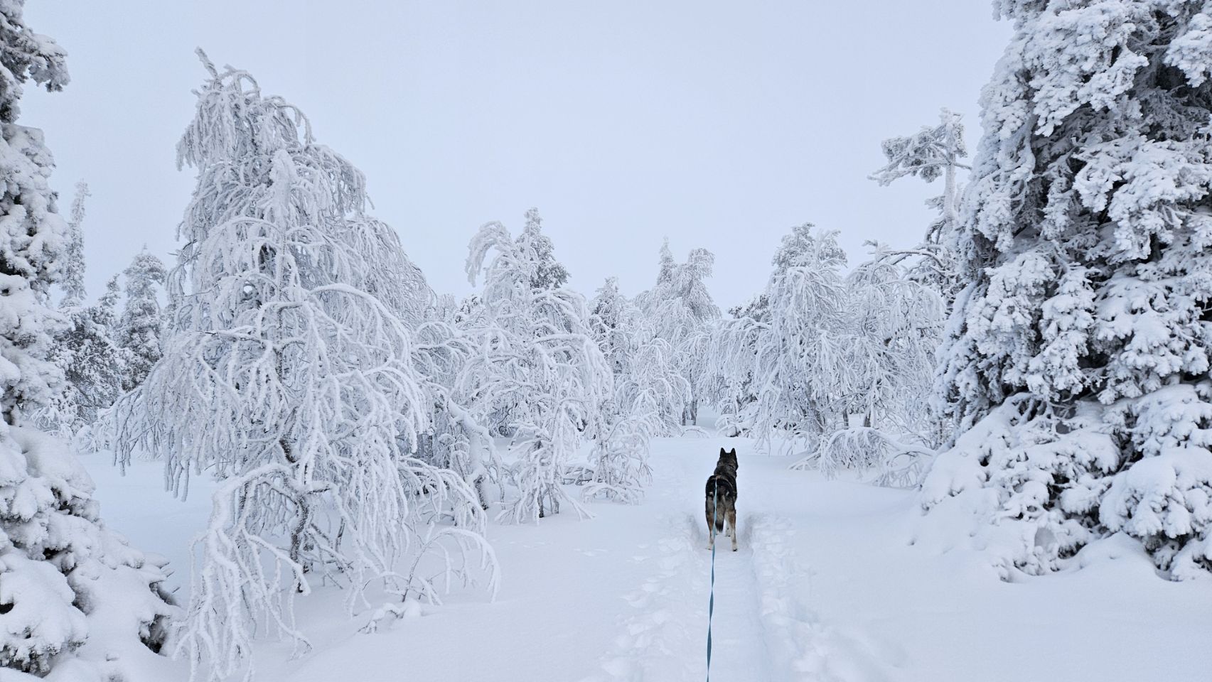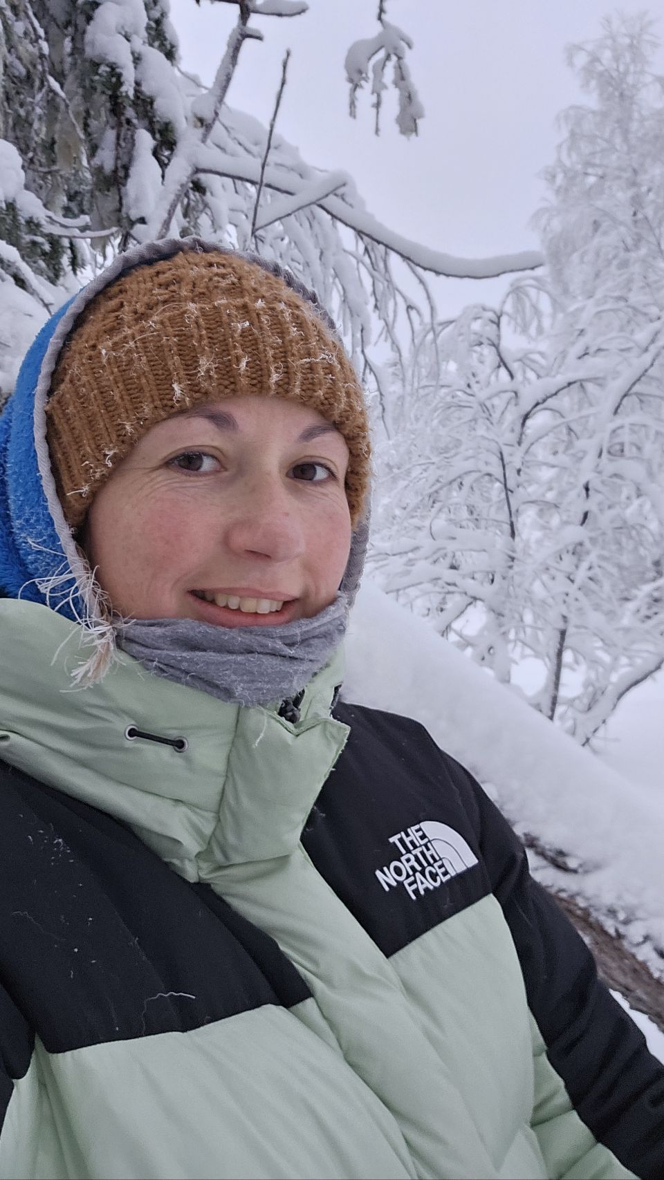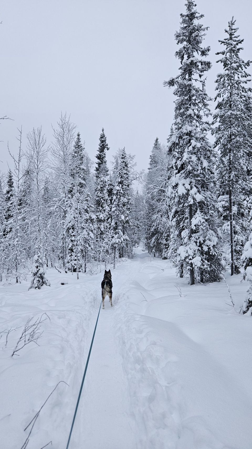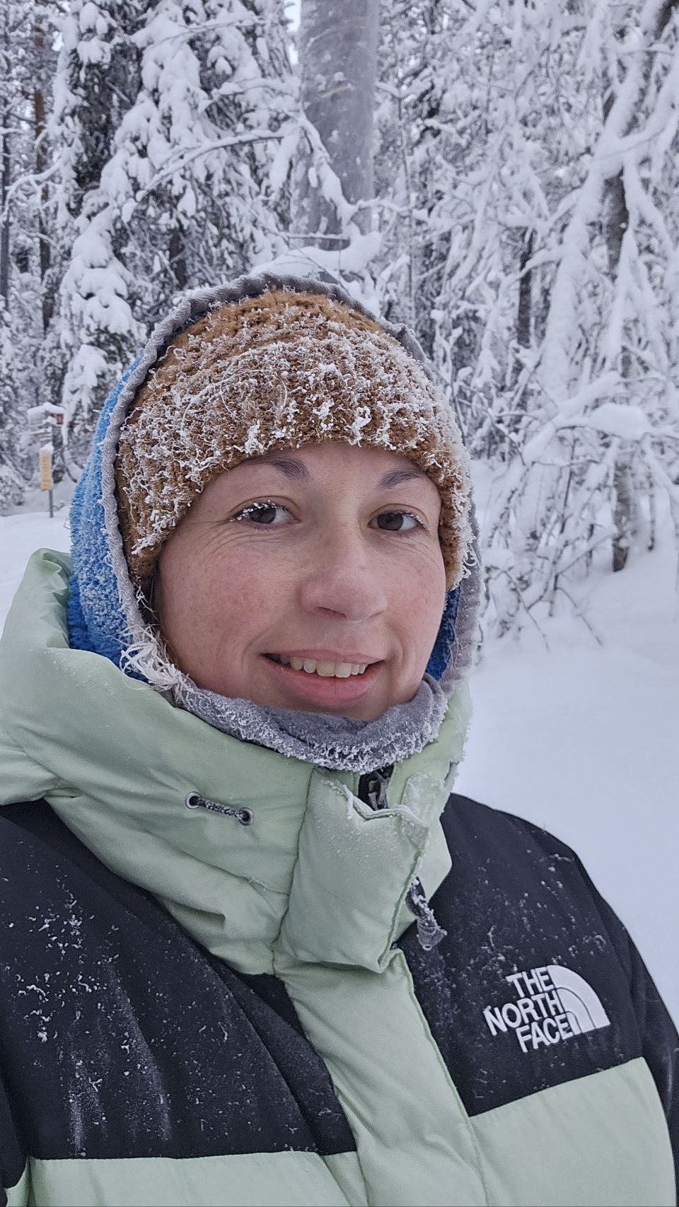 Le lendemain matin, malgré le froid encore bien présent (toujours en dessous des -20°C), je décide de partir explorer le parc. Entre Lou qui est un peu fatiguée et fait de nouvelles dents et les conditions bien piquantes, on fait le choix que je parte seule, accompagnée de Phao, pour une balade d’environ 4 km aller-retour.