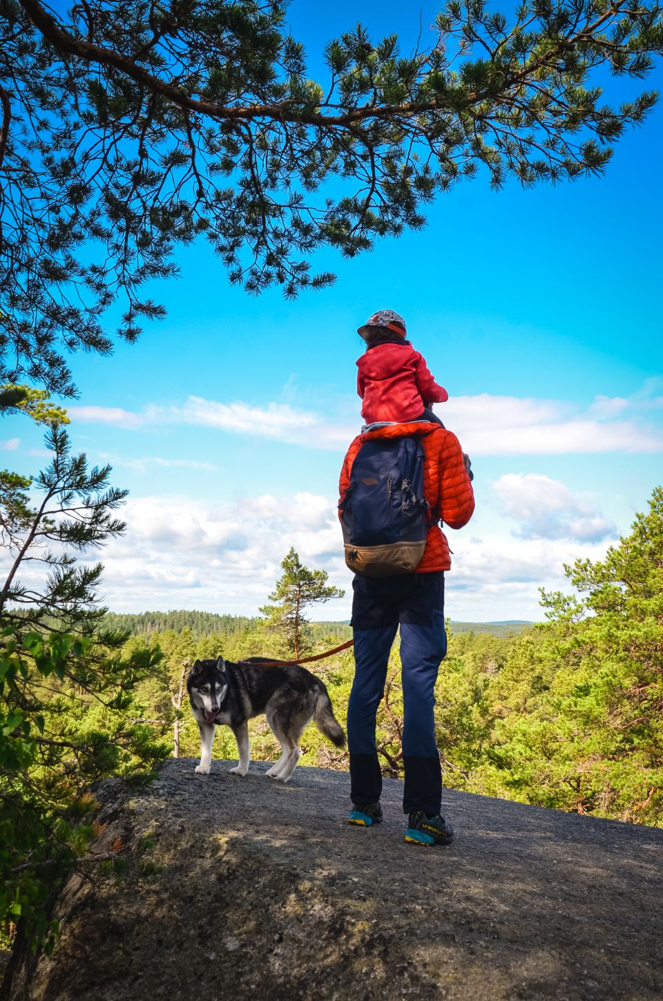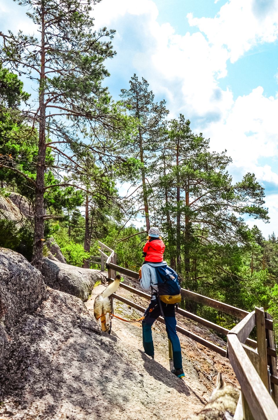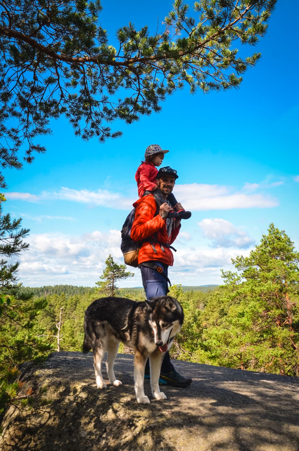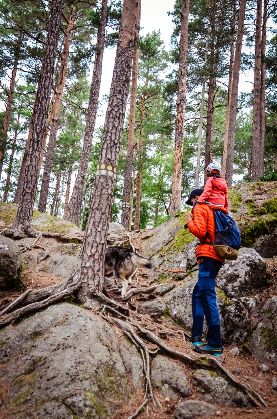 Entre Lou sur les épaules, deux chiens surexcités, des sentiers bien escarpés et un petit détour pour un point de vue en hauteur, on mettra 2h pour en venir à bout. Mais franchement : belle boucle, bien rythmée, forêt dense et rochers impressionnants. On a apprécié.