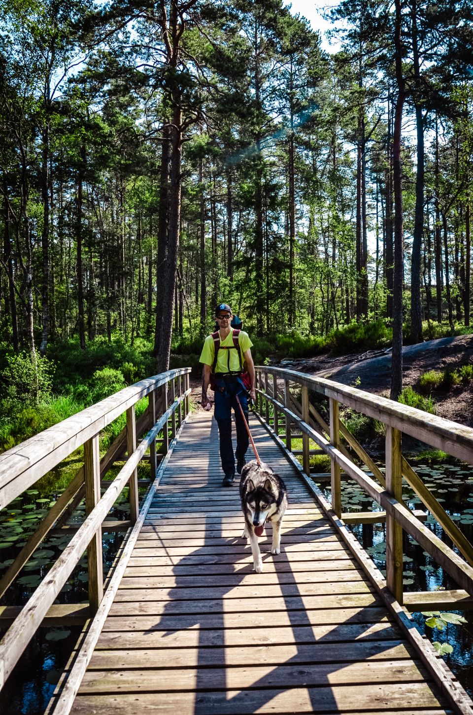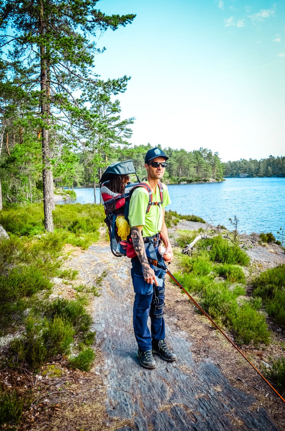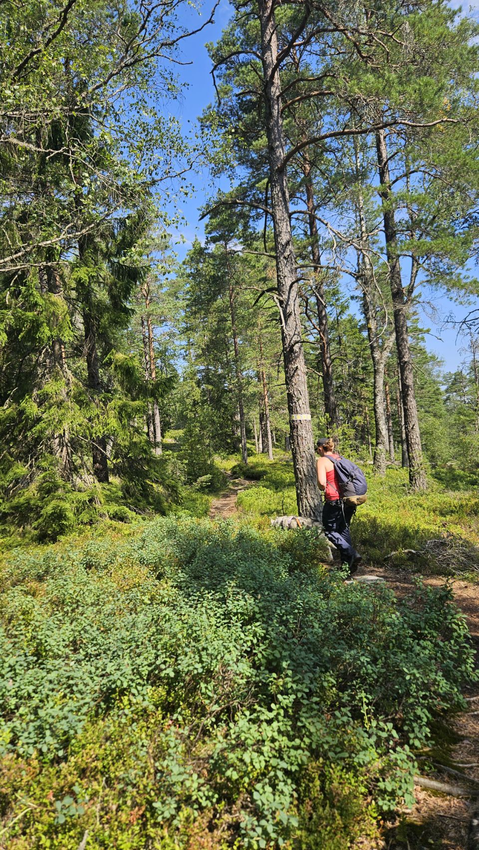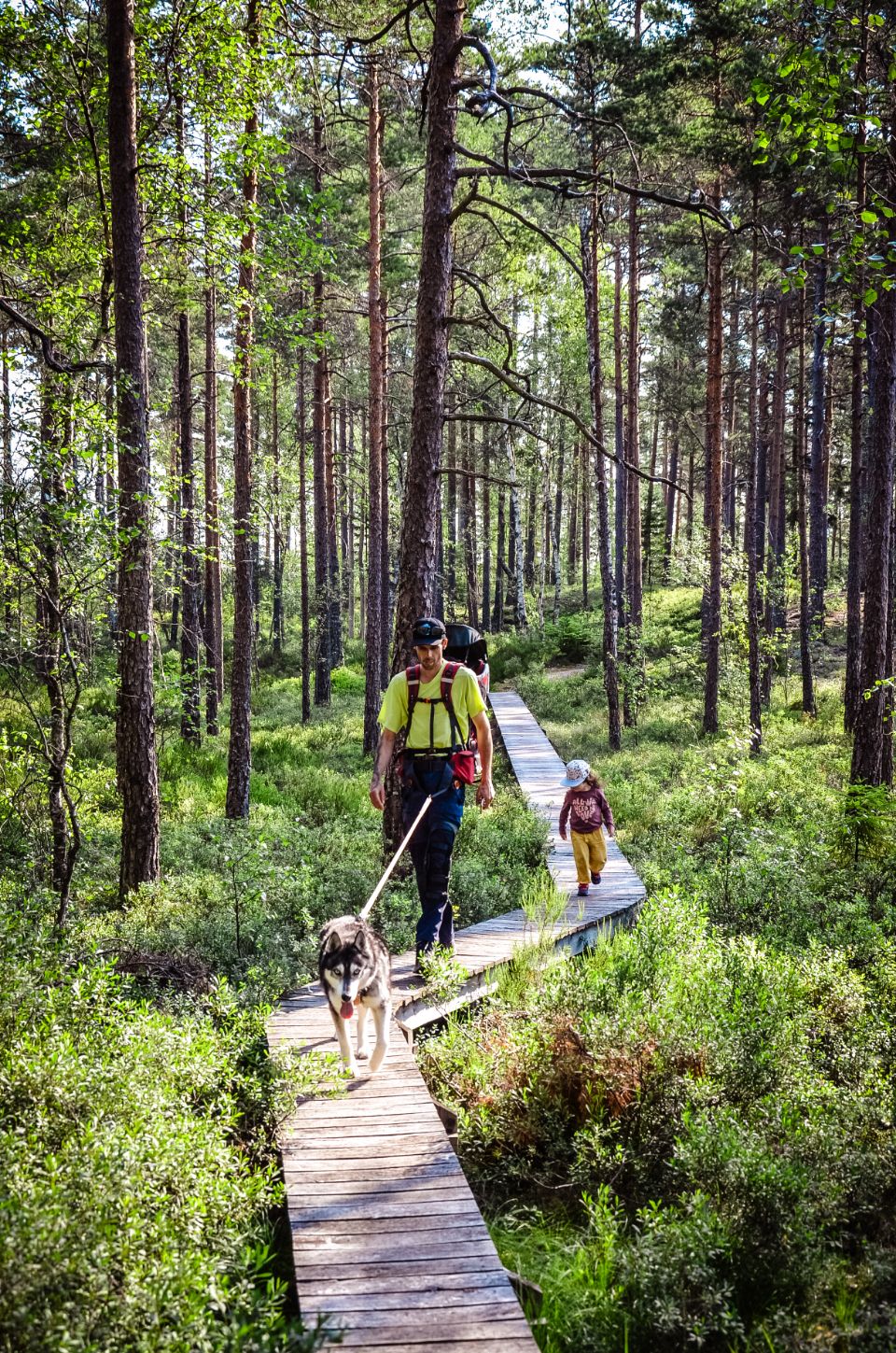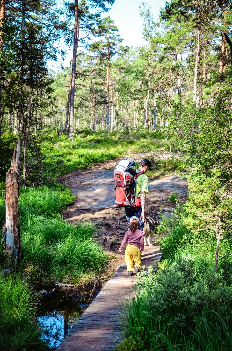 C’est l’un des rares endroits en Suède où l’on peut parcourir une si grande zone de nature non exploitée. On décide de partir en randonnée : on suit une bonne partie du sentier rouge, puis on enchaîne sur la boucle jaune. On avait bien envisagé de faire toute la rouge, qui pousse jusqu’en Norvège, mais le fait que ce soit un aller-retour nous a un peu refroidis, on préfère les boucles.