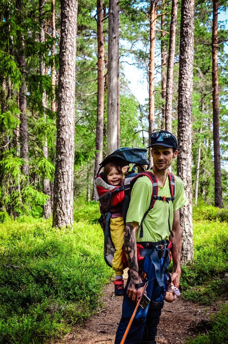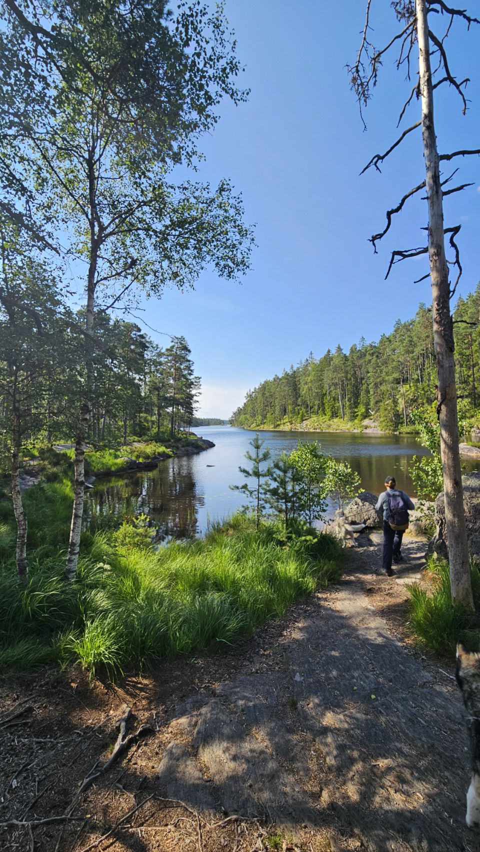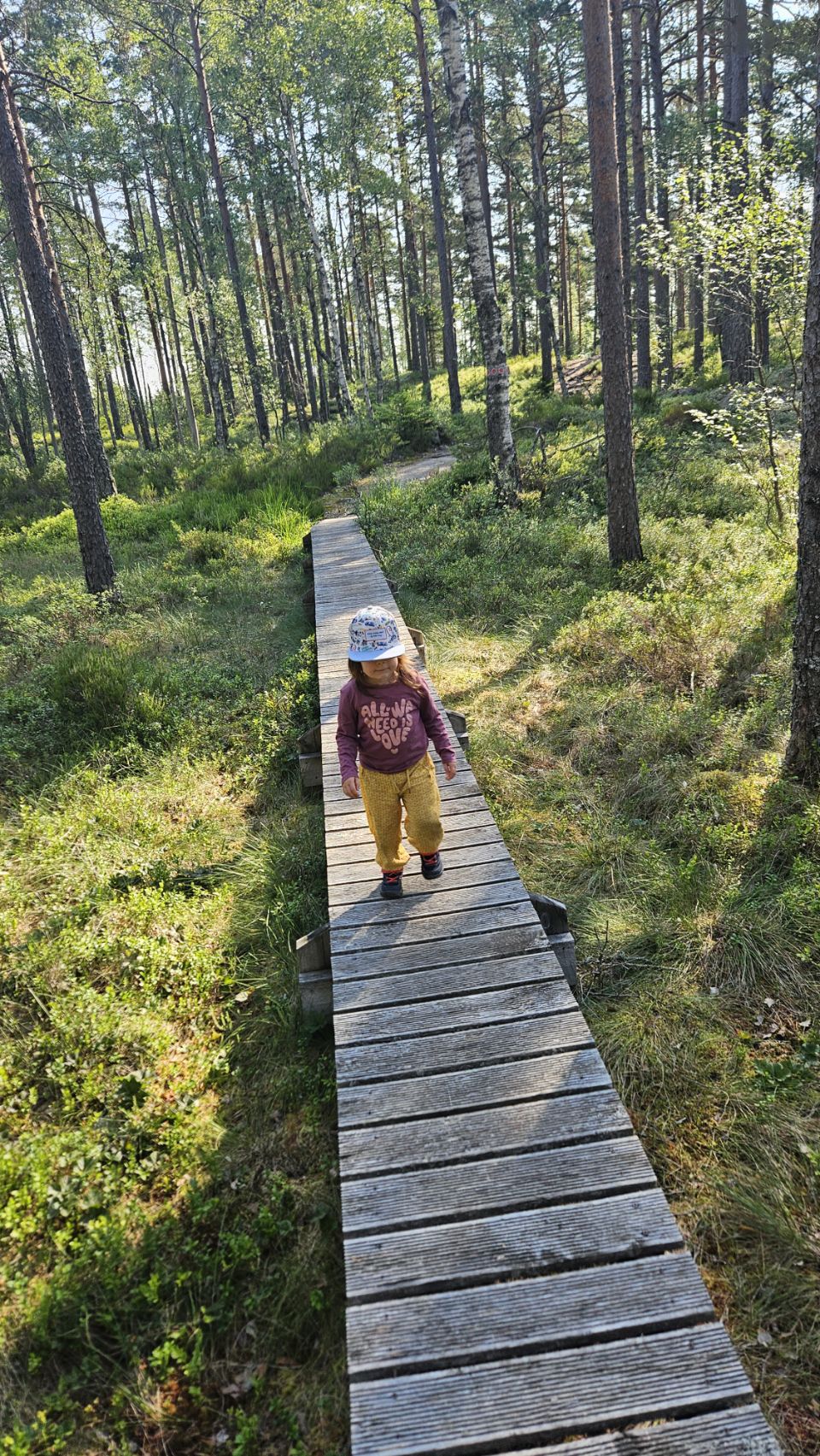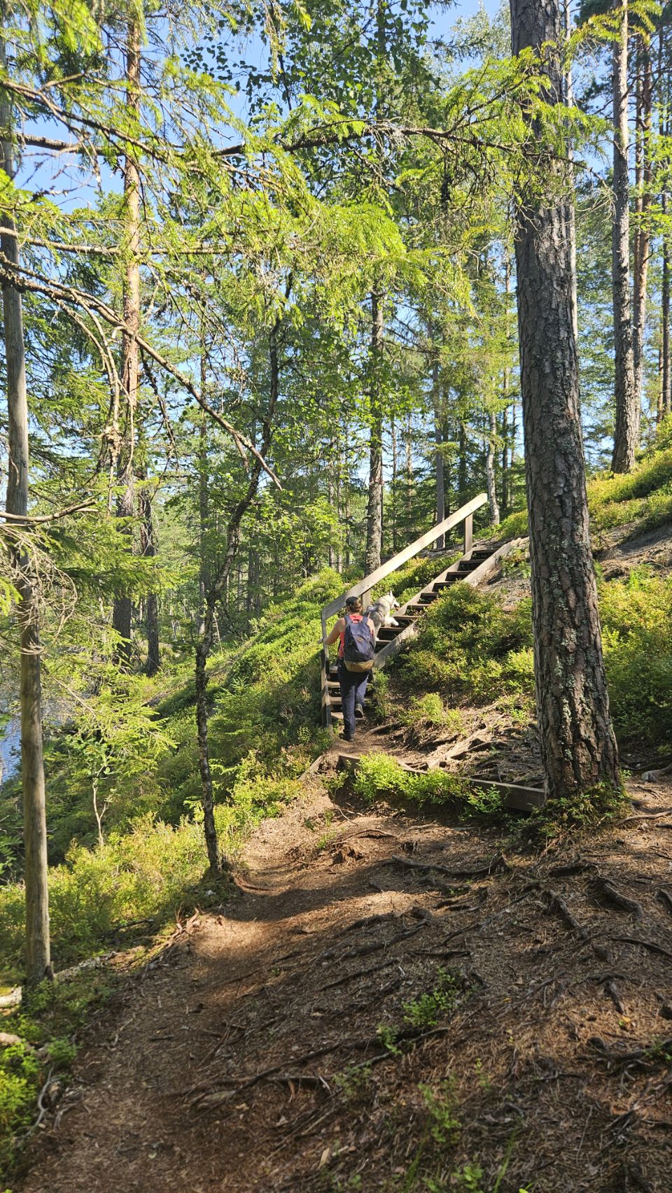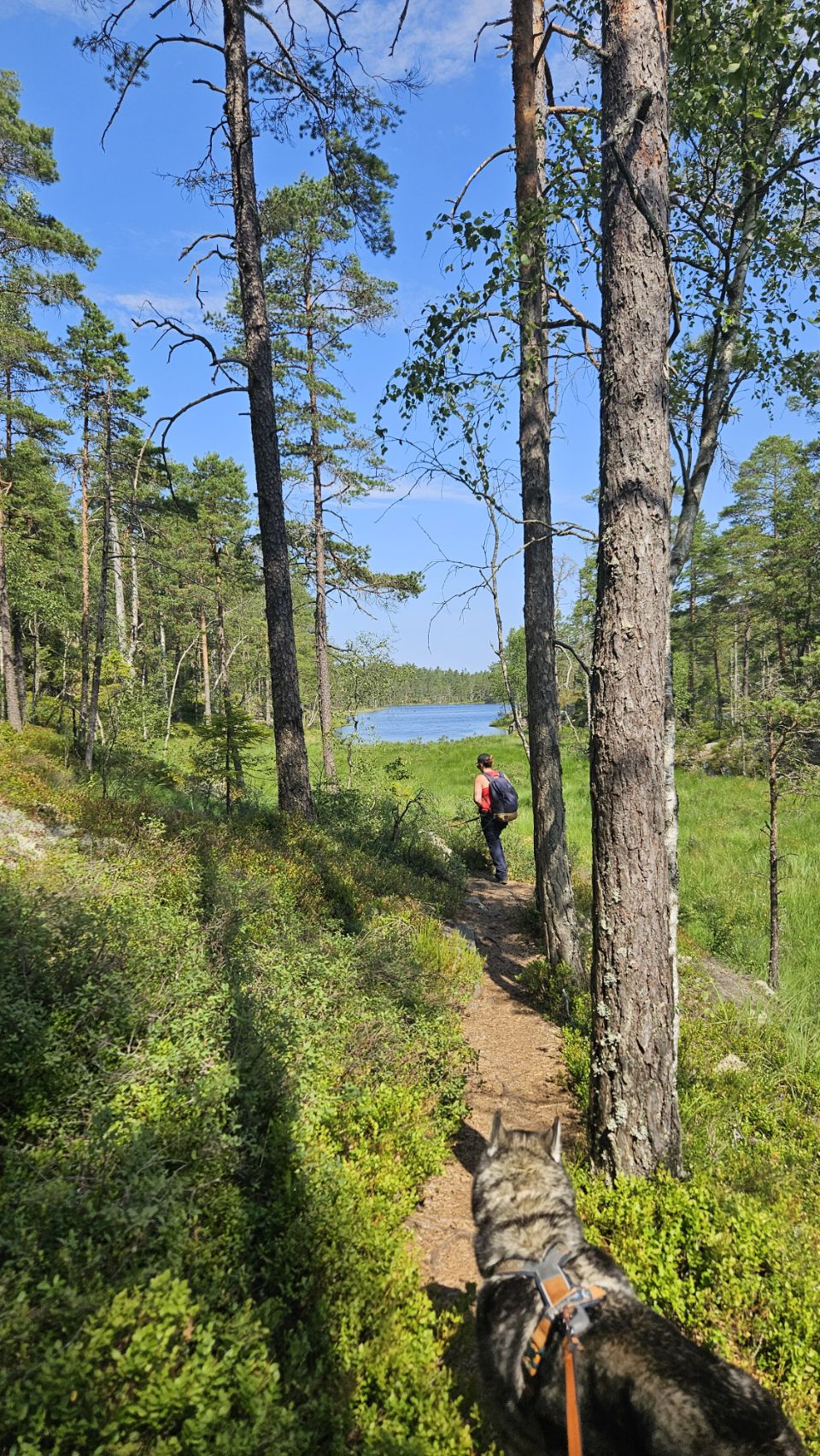 C’est l’un des rares endroits en Suède où l’on peut parcourir une si grande zone de nature non exploitée. On décide de partir en randonnée : on suit une bonne partie du sentier rouge, puis on enchaîne sur la boucle jaune. On avait bien envisagé de faire toute la rouge, qui pousse jusqu’en Norvège, mais le fait que ce soit un aller-retour nous a un peu refroidis, on préfère les boucles.