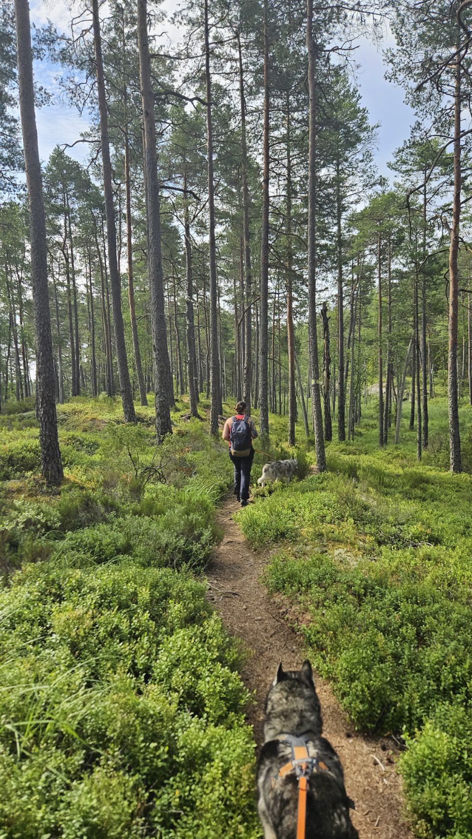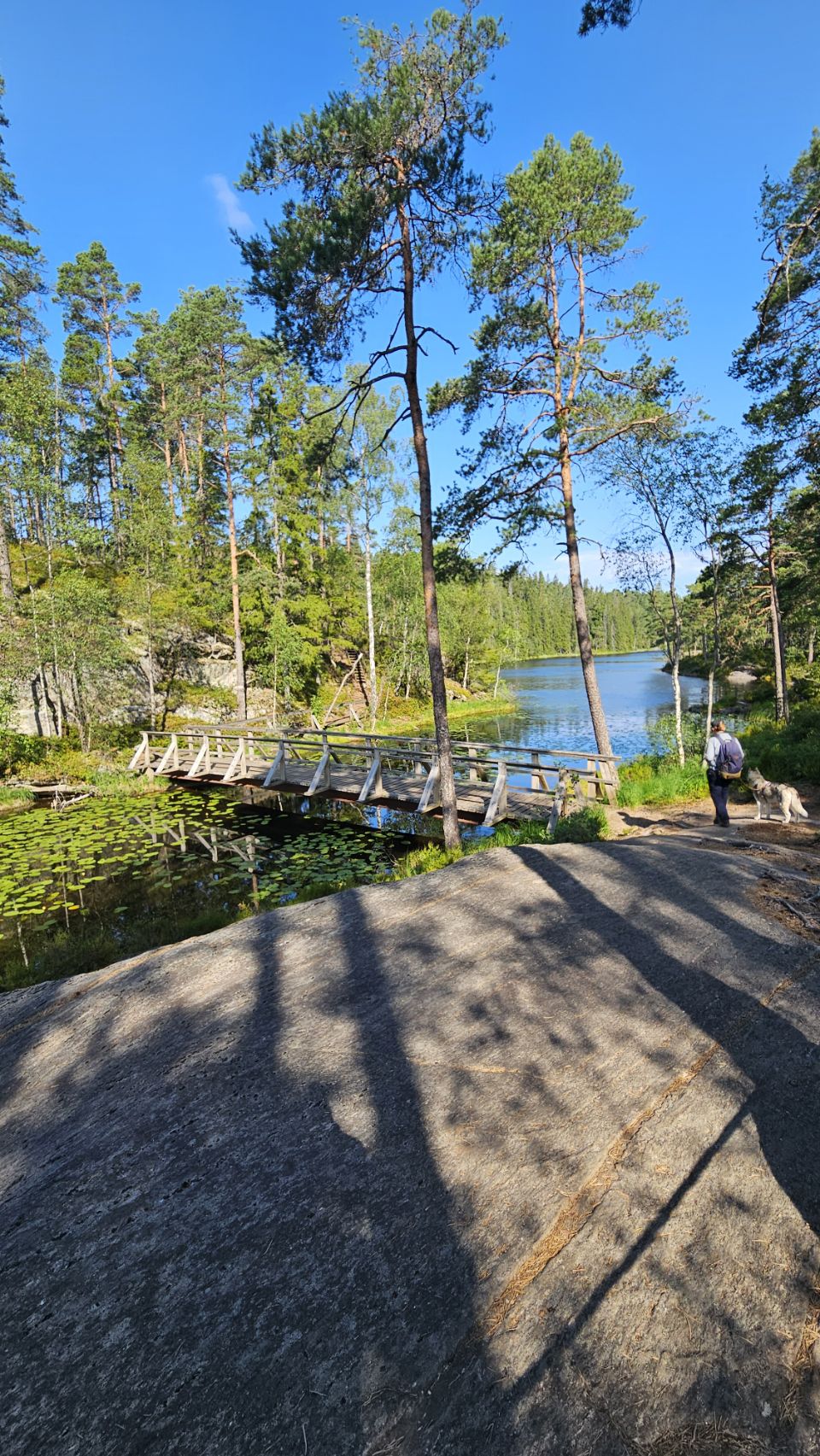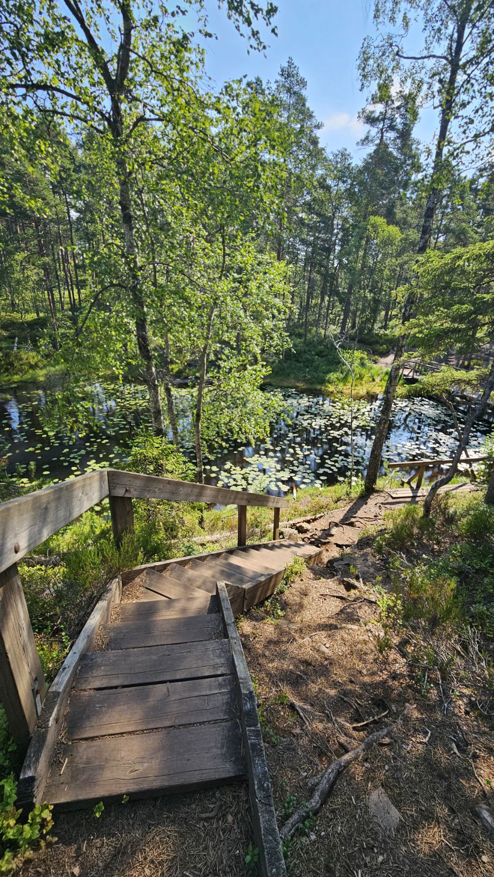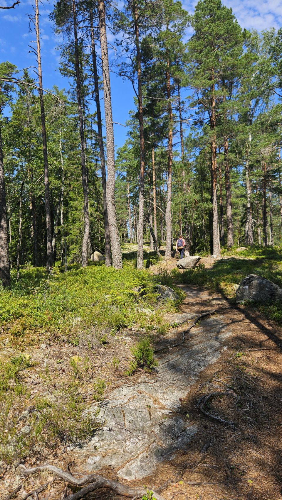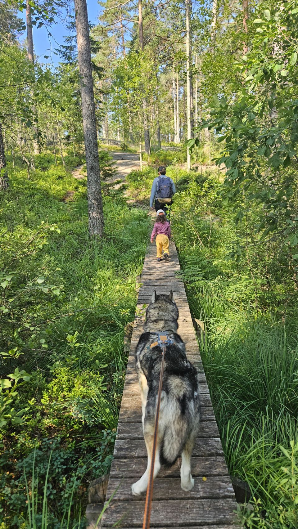 C’est l’un des rares endroits en Suède où l’on peut parcourir une si grande zone de nature non exploitée. On décide de partir en randonnée : on suit une bonne partie du sentier rouge, puis on enchaîne sur la boucle jaune. On avait bien envisagé de faire toute la rouge, qui pousse jusqu’en Norvège, mais le fait que ce soit un aller-retour nous a un peu refroidis, on préfère les boucles.