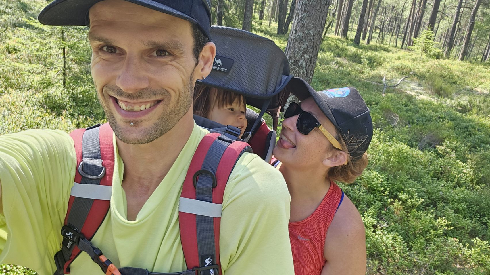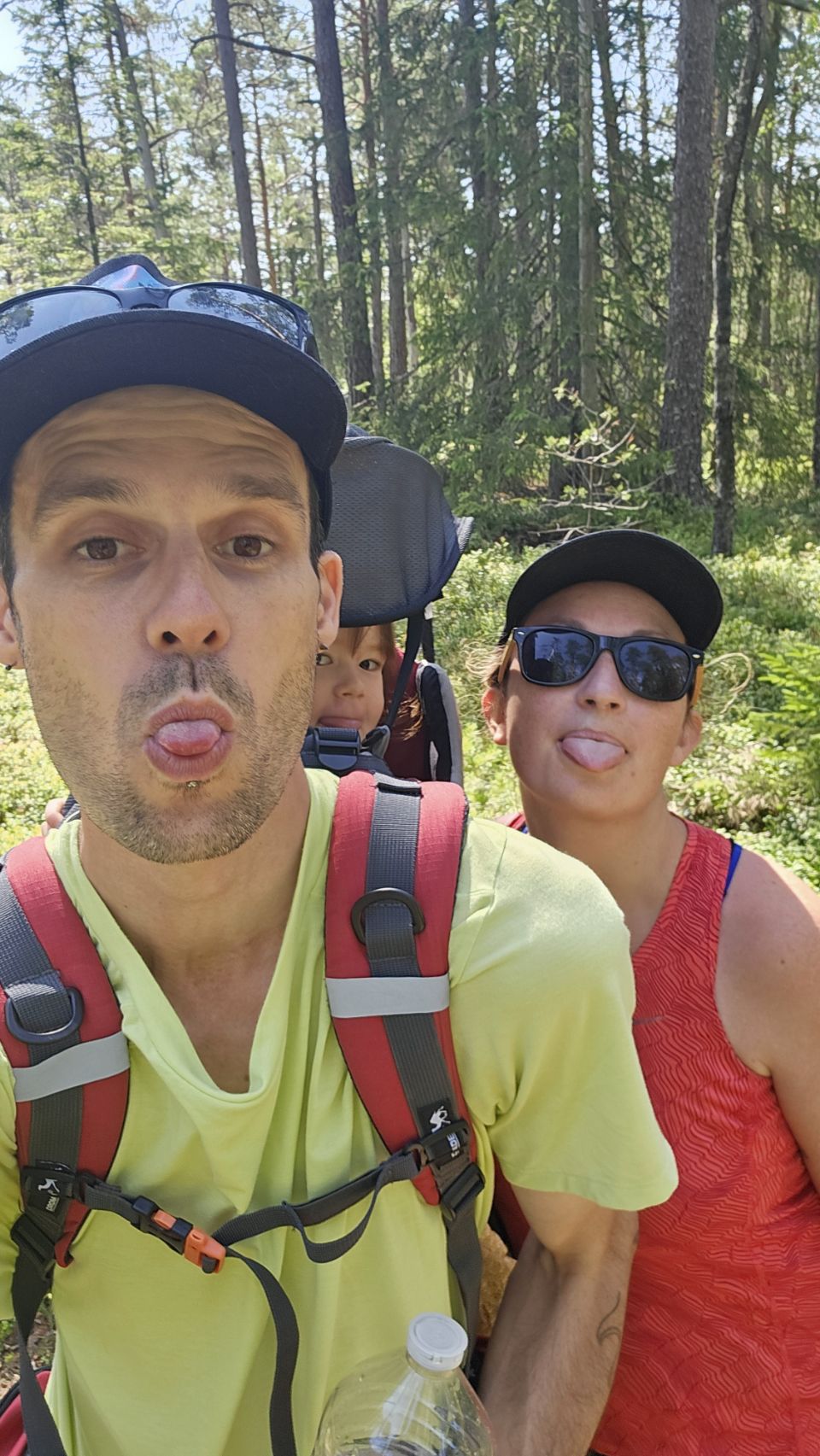 Bilan : 11 km en environ 3h30. Lou marche au début, avant de passer dans le sac à dos, bien calée pour profiter du paysage. Et quel paysage ! Entre forêts profondes, lacs miroir, rochers, passerelles en bois, souches et mousse, c’est un vrai décor de conte.