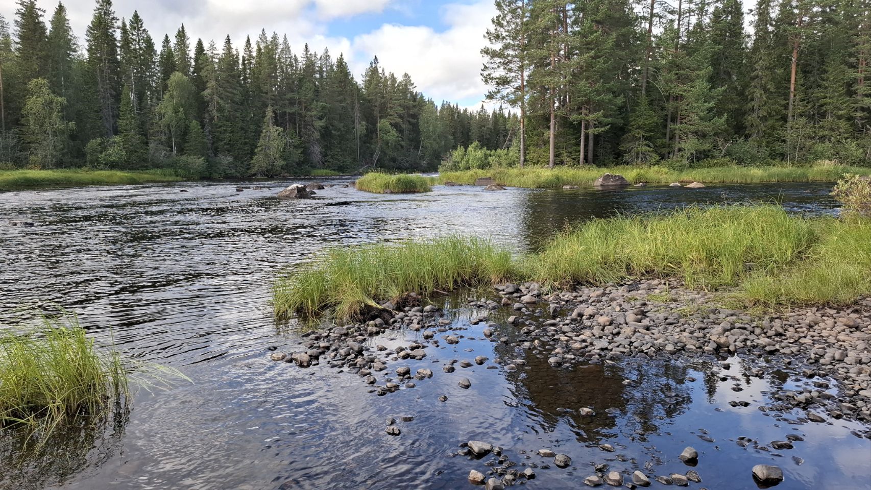 La journée se déroule en douceur au bord de la rivière Ammerån, dans un décor paisible où l’eau clapote doucement entre les rochers. Lou profite d’une bonne sieste réparatrice, ce qui nous permet d’avoir chacun notre petite activité : Guillaume s’attelle à installer le fameux réchauffeur sur le camping-car, une étape importante pour se préparer à l’hiver et aux grands froids qui approchent, pendant que je pars m’aventurer dans les bois voisins pour une mission cueillette. Pas de cèpes au rendez-vous cette fois, mais de beaux pieds de mouton bien frais, parfaits pour agrémenter notre repas du soir.