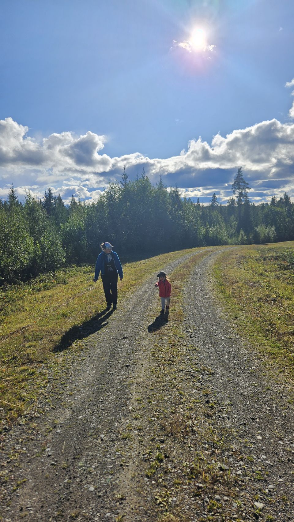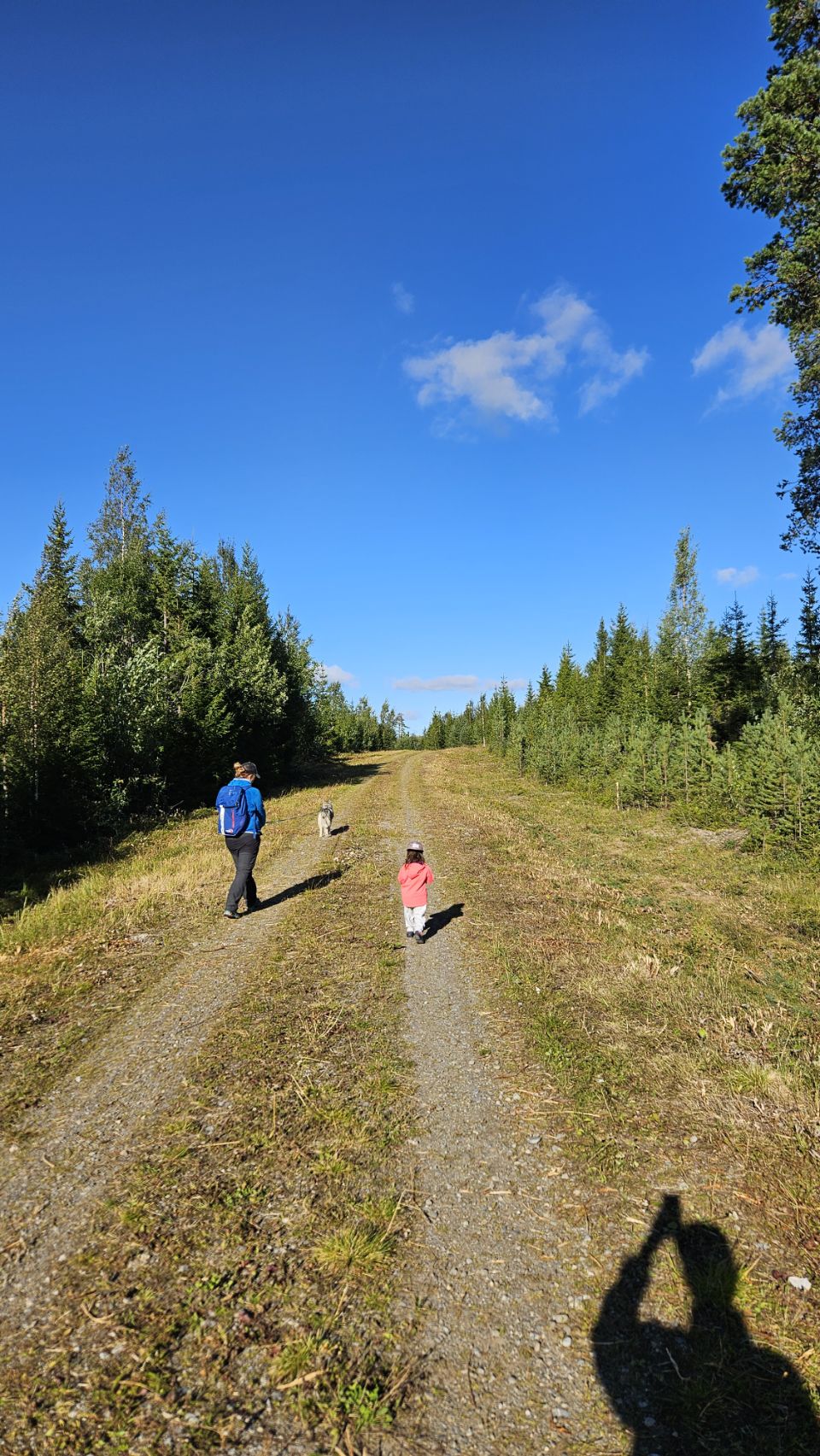 En fin d’après-midi, nous partons tous ensemble sur une balade le long d’une piste forestière qui longe une réserve naturelle. Une marche simple, d’environ 5 km aller-retour, où la forêt s’ouvre par endroits pour laisser passer de jolis rayons de soleil.