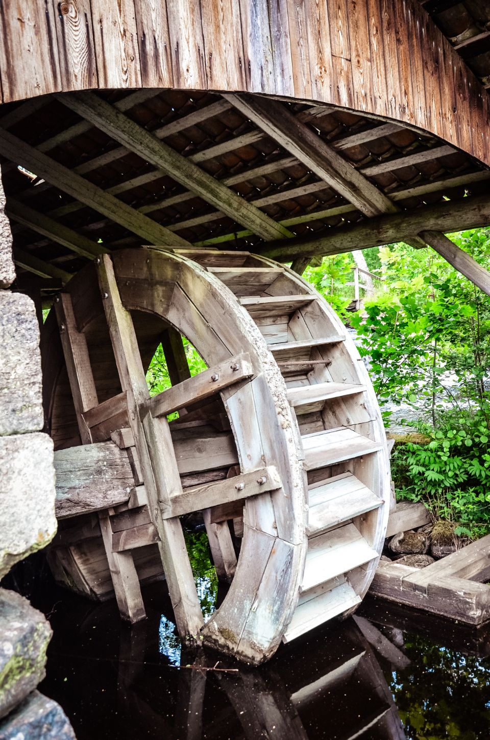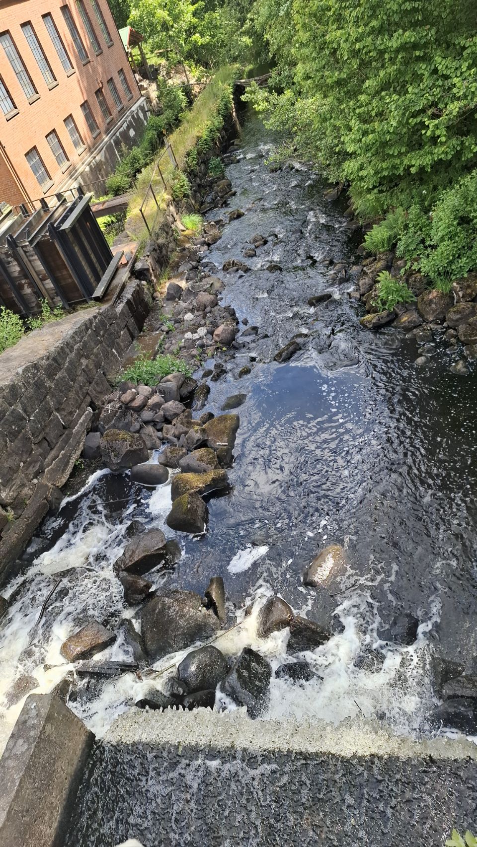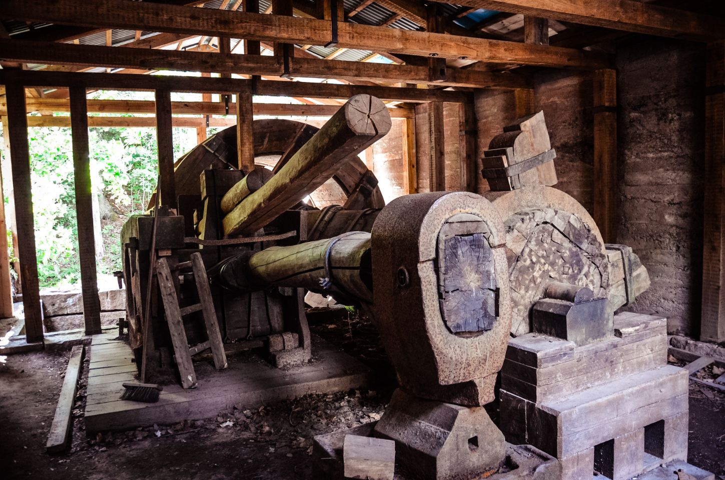 Pas grave, on refait le chemin à l’envers, avant de boucler le tour plus tard, une fois les chiens reposés au camping-car. De l’autre côté, on découvre les vestiges d’anciens moulins, un marteau de fer historique utilisé autrefois pour le travail du métal. Des traces du passé industriel du site, plutôt bien conservées.