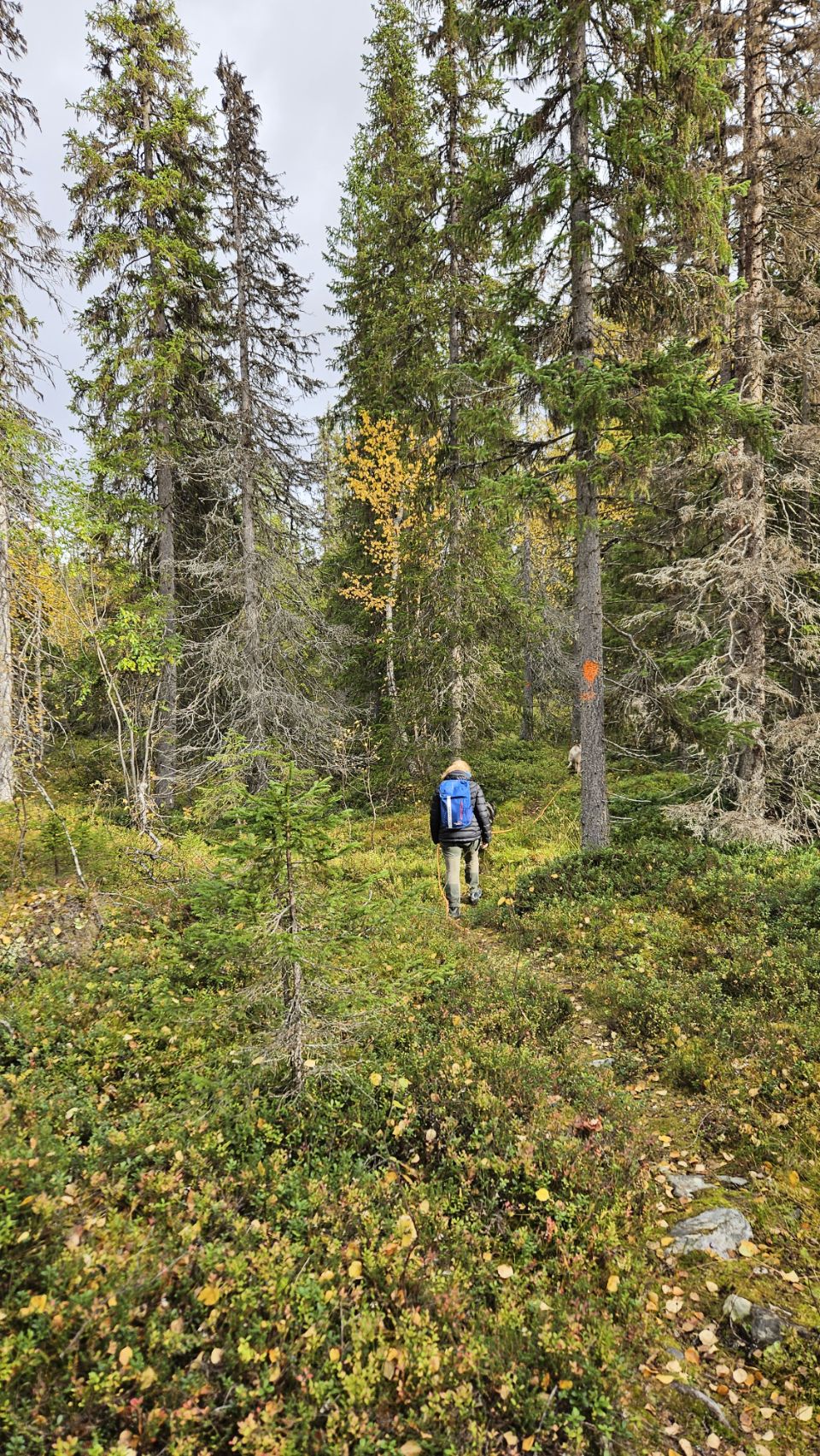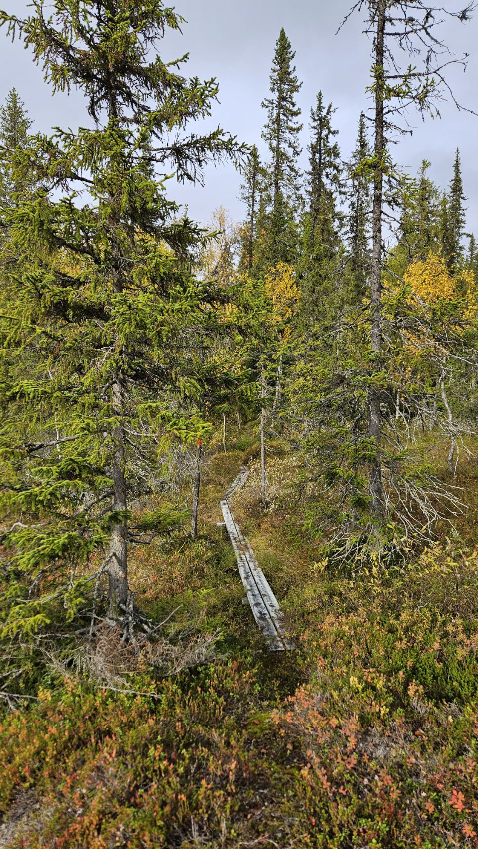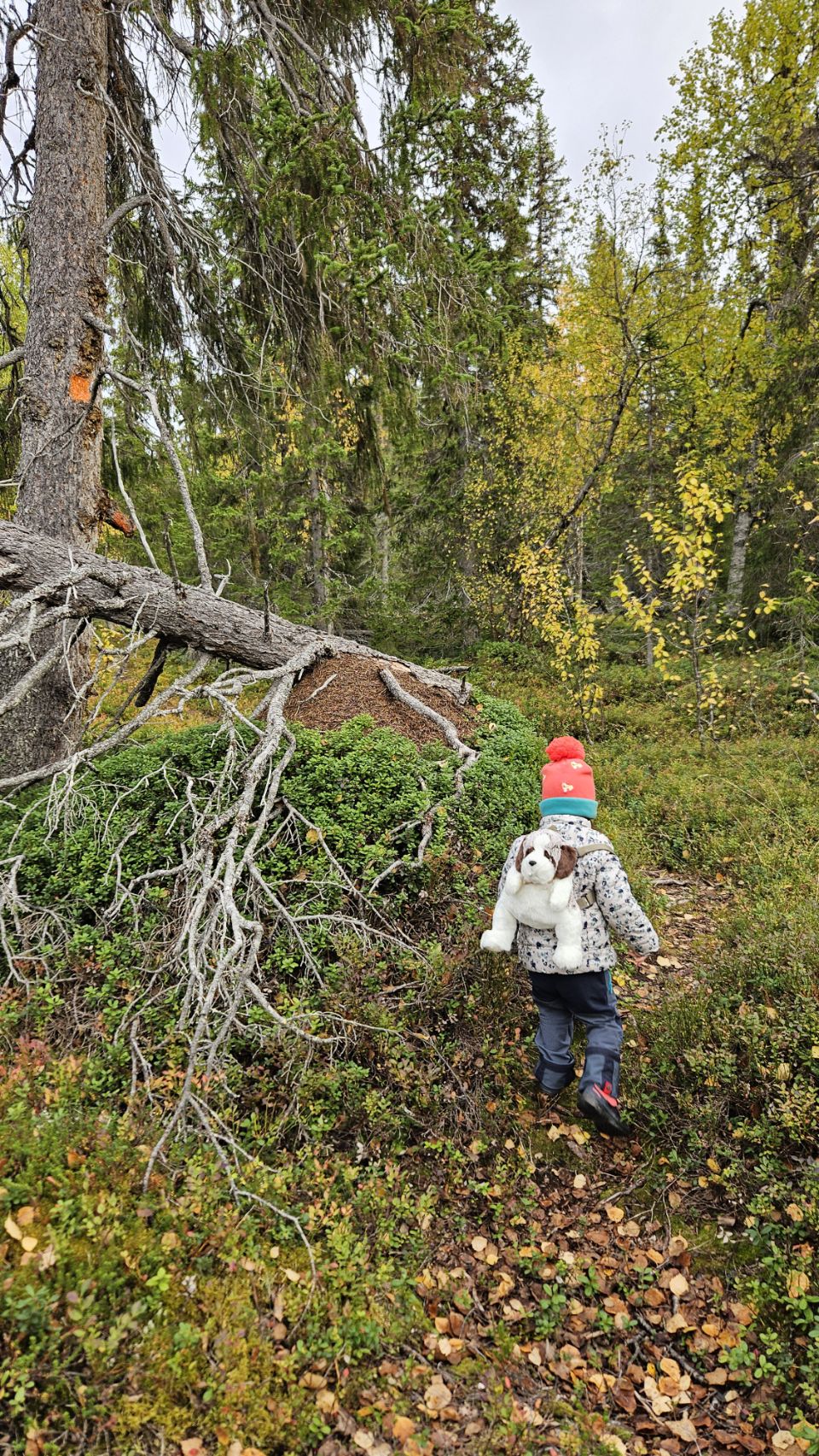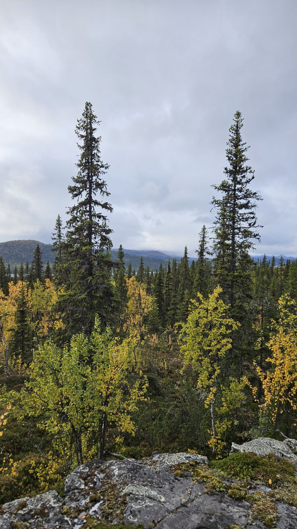 En quittant la route principale, nous nous retrouvons au beau milieu de nulle part, du côté de Sågátje. Ici, tout respire le sauvage et l’authentique. La forêt dense invite à la balade, dans un silence profond, seulement troublé par le vent et quelques craquements au loin.