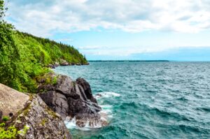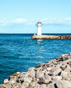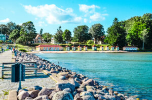 Le lendemain, changement de décor : falaises, forêt, lac déchaîné… Bienvenue à l’Ekopark Omberg. Le Vättern est agité, les vagues engloutissent la plage, et les sentiers en hauteur offrent des vues spectaculaires. C’est grandiose, mais entre rochers glissants et petite fille de 2 ans bien décidée à marcher seule, on reste vigilants. Le lieu vaut le détour, mais demande un peu d’attention en famille.