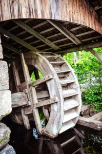 Qu’importe, on y retourne plus tard, une fois les loulous posés. De l’autre côté, on découvre d’anciens moulins et un marteau de fer utilisé autrefois pour travailler le métal. Une surprise au détour du bois.