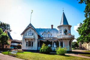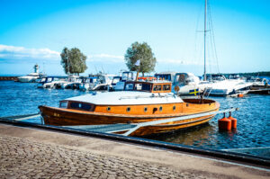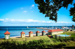 La semaine se termine à Hjo, petit village en bois au bord du lac Vättern. Tout est charmant : les maisons colorées, les ruelles fleuries, le port… Et puis, pause glaces en terrasse. Lou fait tomber la sienne, puis mange la nôtre. Classique.