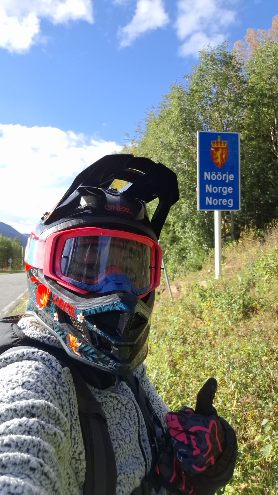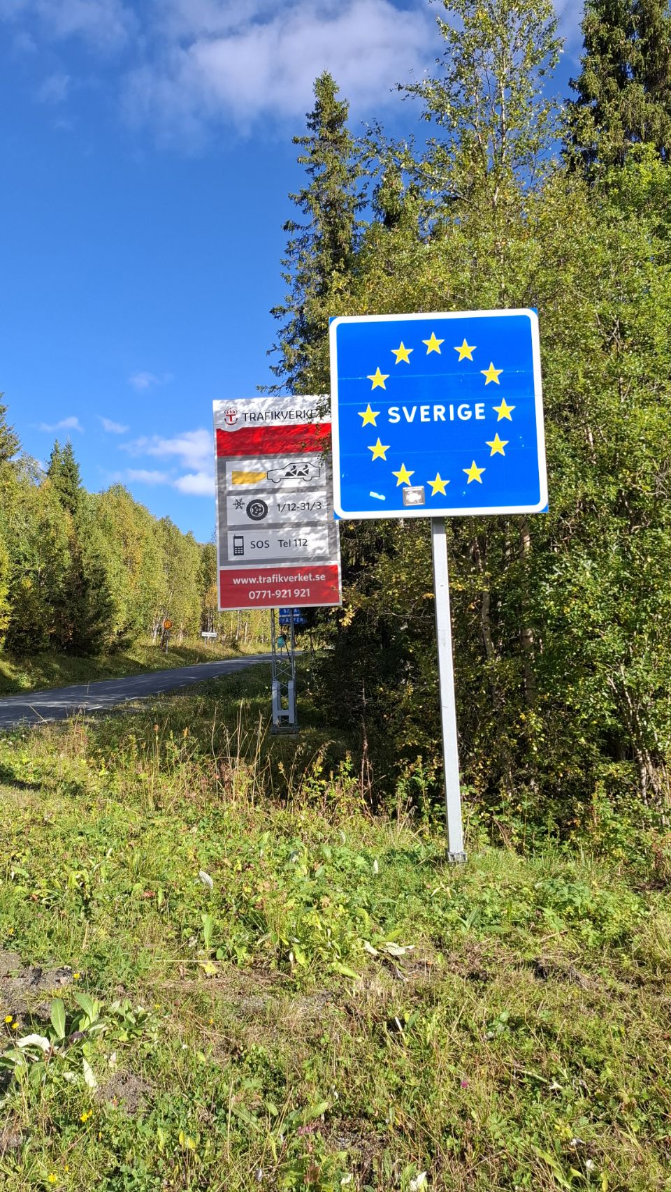 On décide de rester un jour de plus pour retenter notre chance. Bien nous en prend : 700g de girolles supplémentaires rejoignent nos sacs. Pendant la sieste de Lou, je m’offre une petite folie : une sortie vélo direction… la Norvège ! Huit kilomètres suffisent pour franchir la frontière, mais nous ne pouvons pas vraiment y entrer avec le camping-car : voyager avec les chiens impose un vermifuge chez le vétérinaire 24 à 120 h avant l’entrée. Impossible de répéter cette logistique régulièrement, et hors de question de surtraiter les loulous. La tentation est là, mais le risque (amende, voire quarantaine des chiens) est bien trop grand.