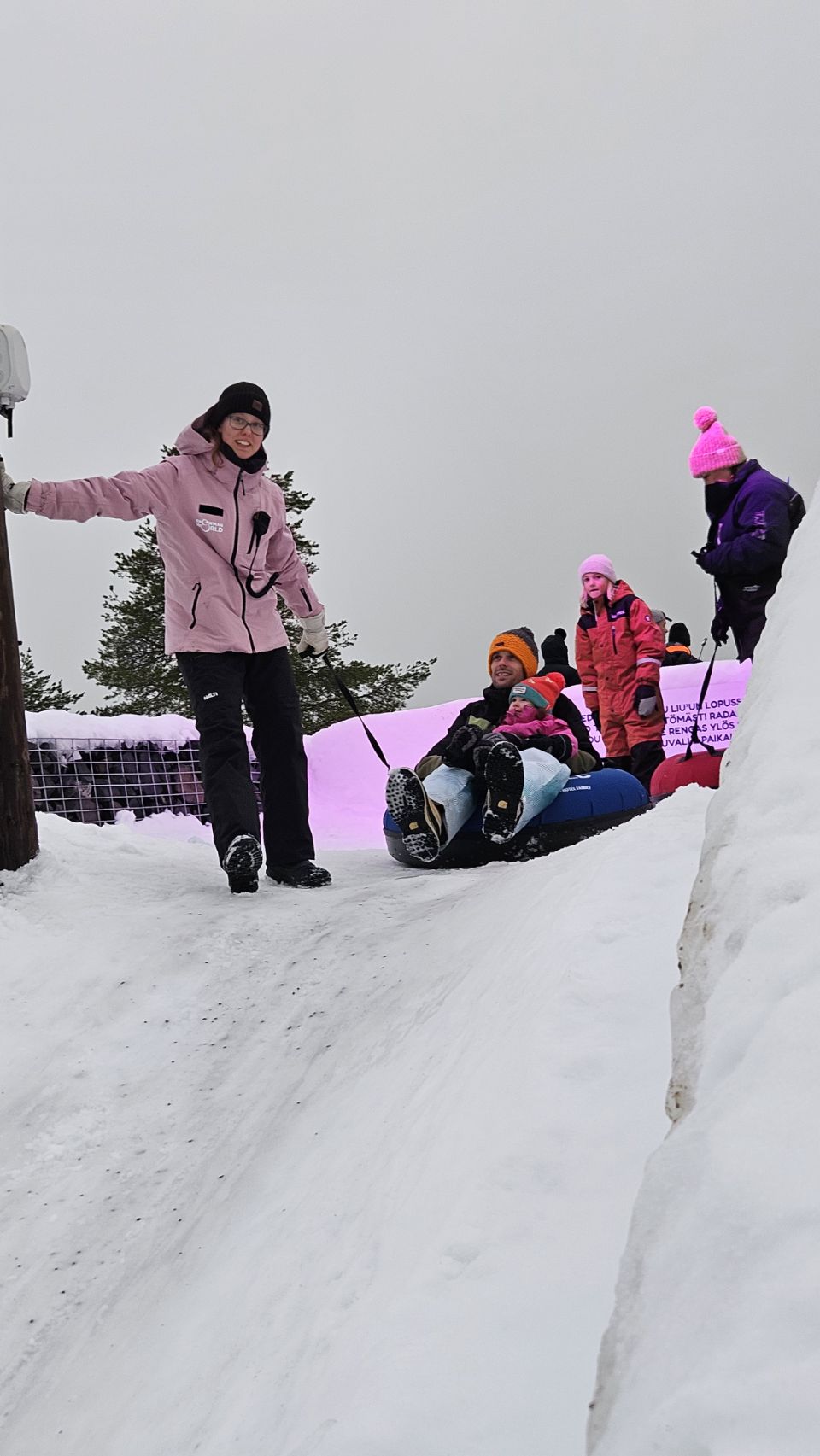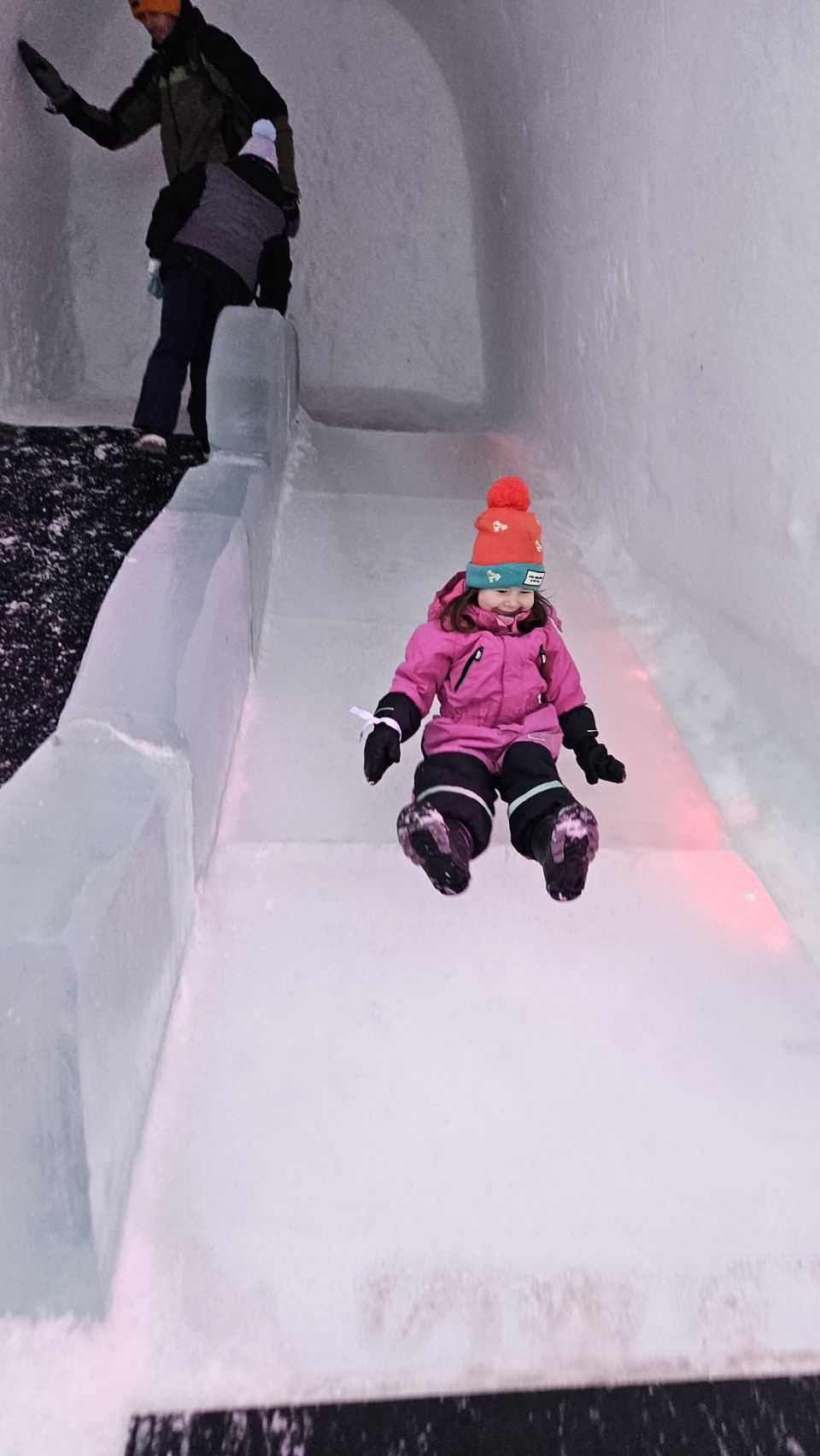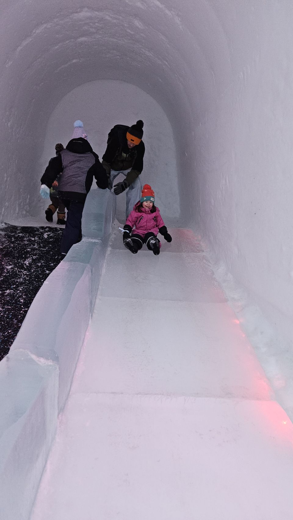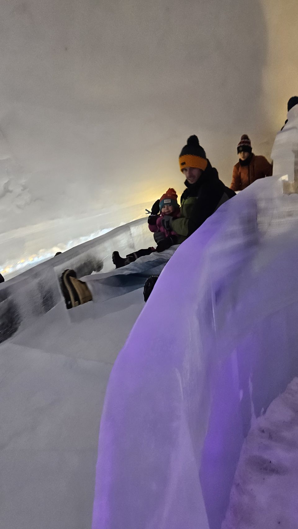 Est-ce qu’on a passé la journée entière à enchaîner les descentes ? Absolument. Et franchement, c’était génial. Lou a adoré. Quand je dis adoré, c’est adoré. Encore, encore, encore… Entre le toboggan de glace et les descentes en bouée, c’étaient clairement ses deux activités préférées, et on les a enchaînées sans compter.