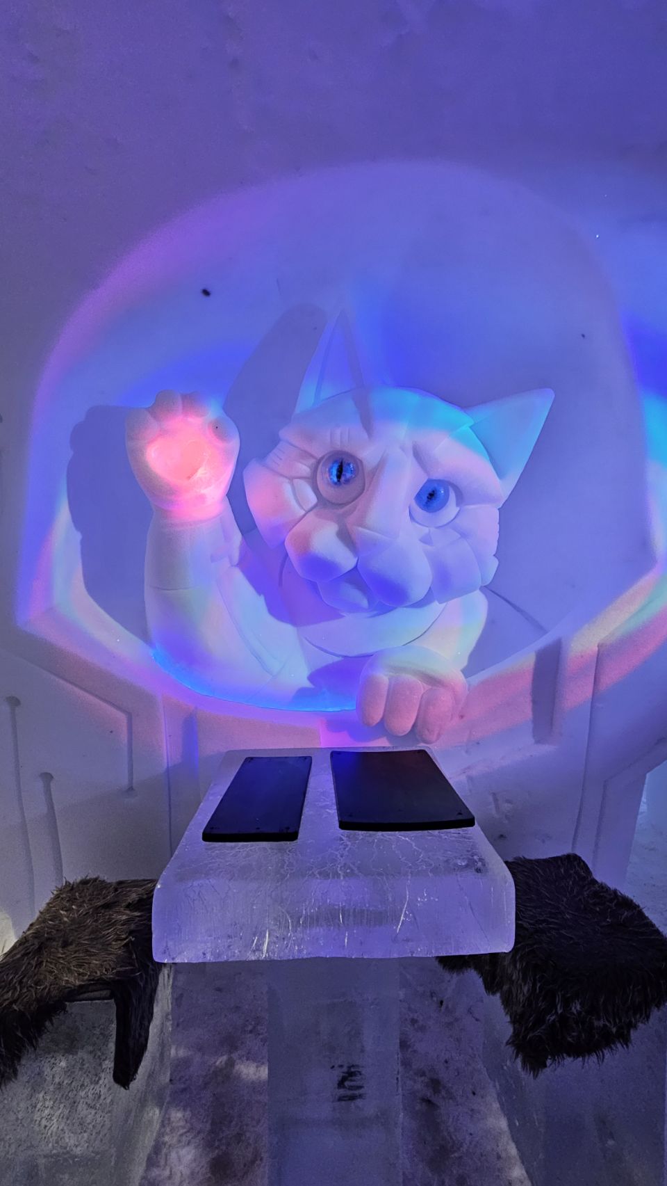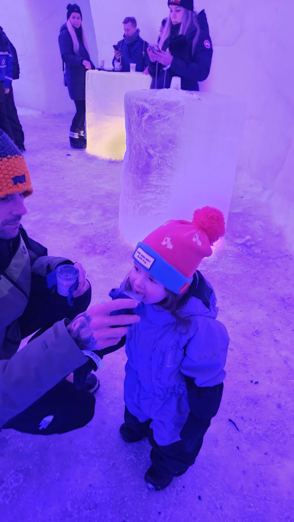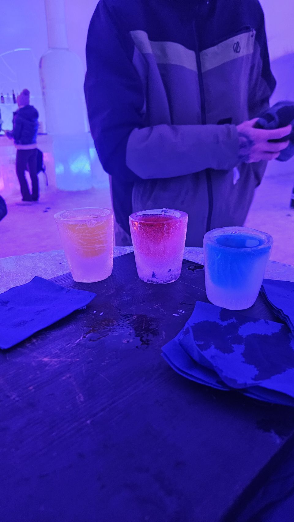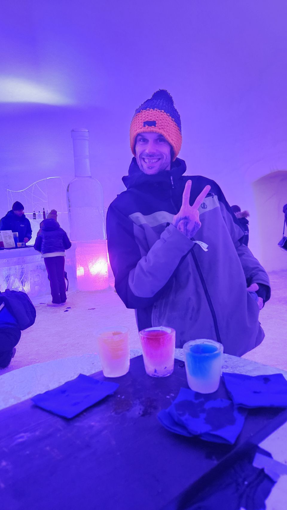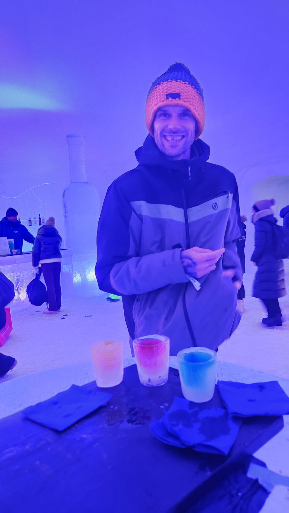 On a aussi fait un tour à l’Ice Bar pour boire un petit jus servi dans des verres en glace, en pleine soirée disco. Nous voilà partis pour danser jusqu’au bout de la nuit… Bon, en vrai, on est restés 10 minutes 😅 mais c’était très sympa.