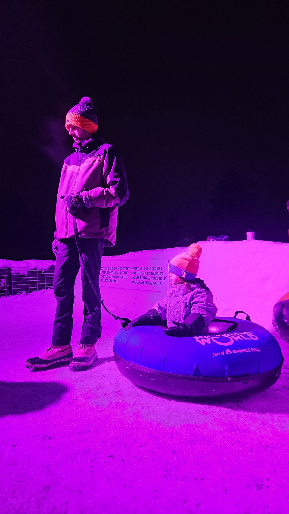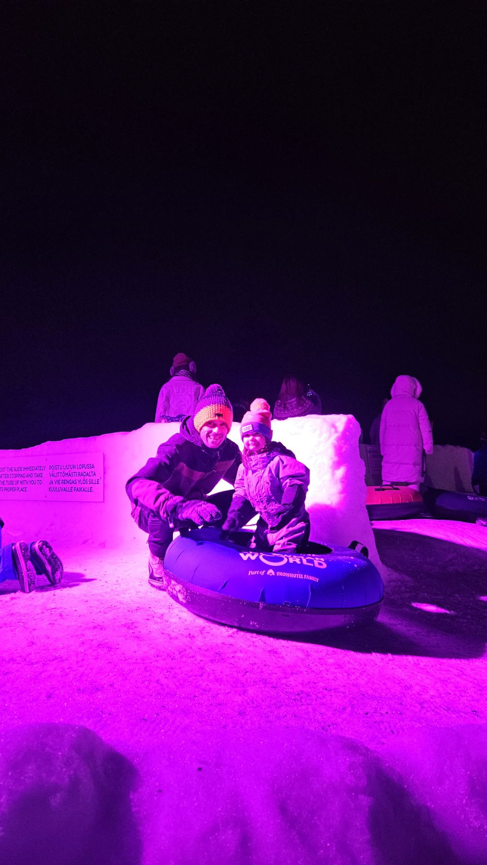On continue les folies au village du Père Noël en passant la journée au Snowman World. Un véritable monde de glace avec plein d’activités : des toboggans de neige, un labyrinthe, des descentes en bouées sur la glace… bref, le paradis des enfants.