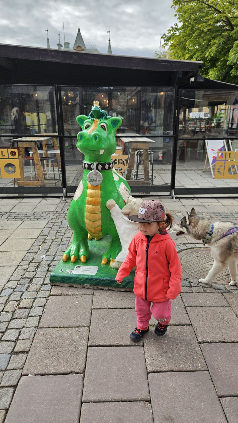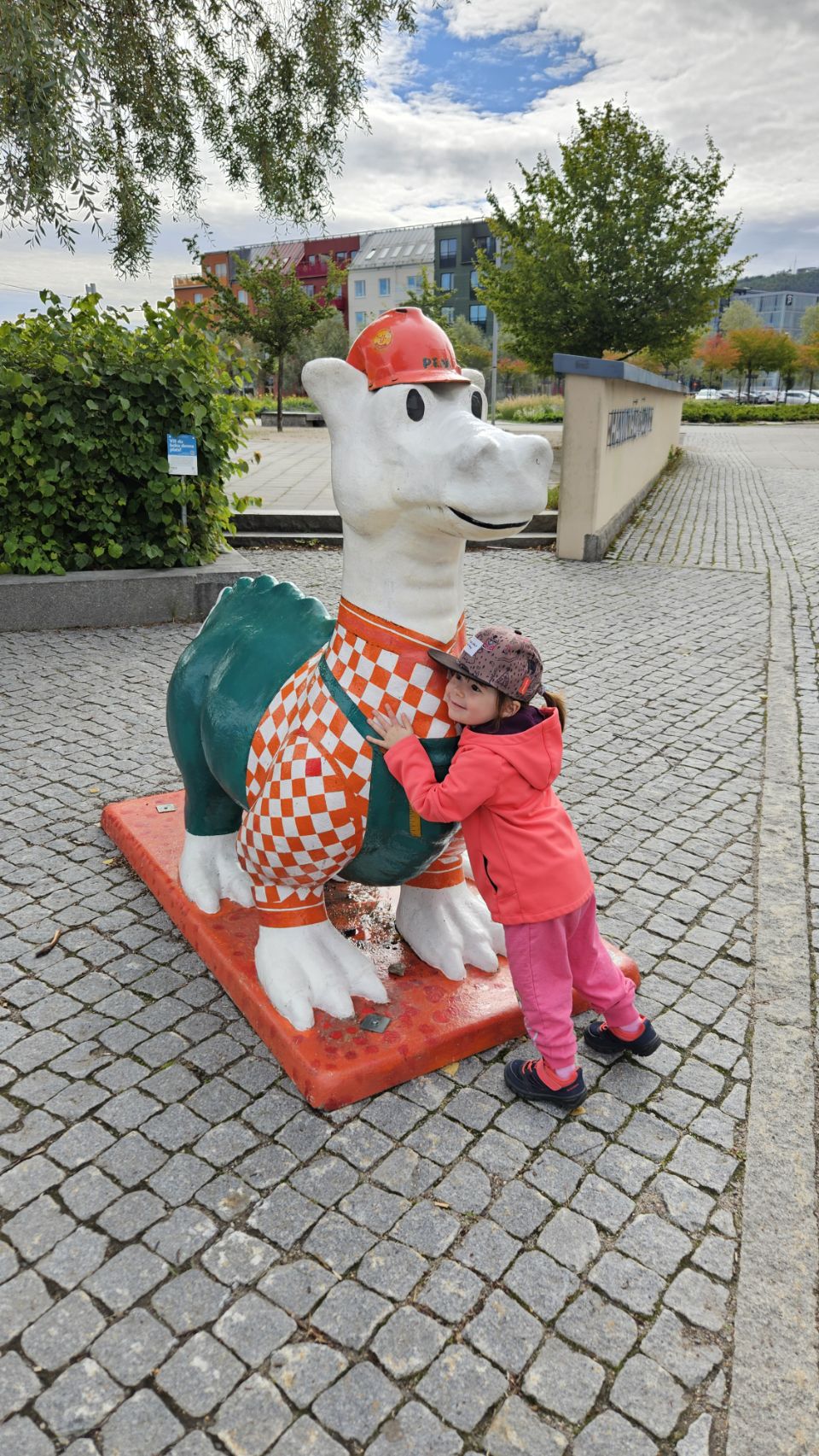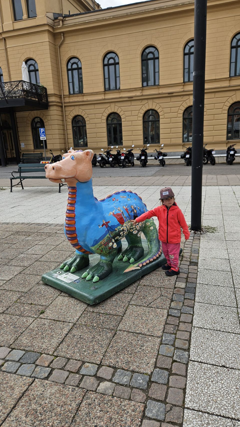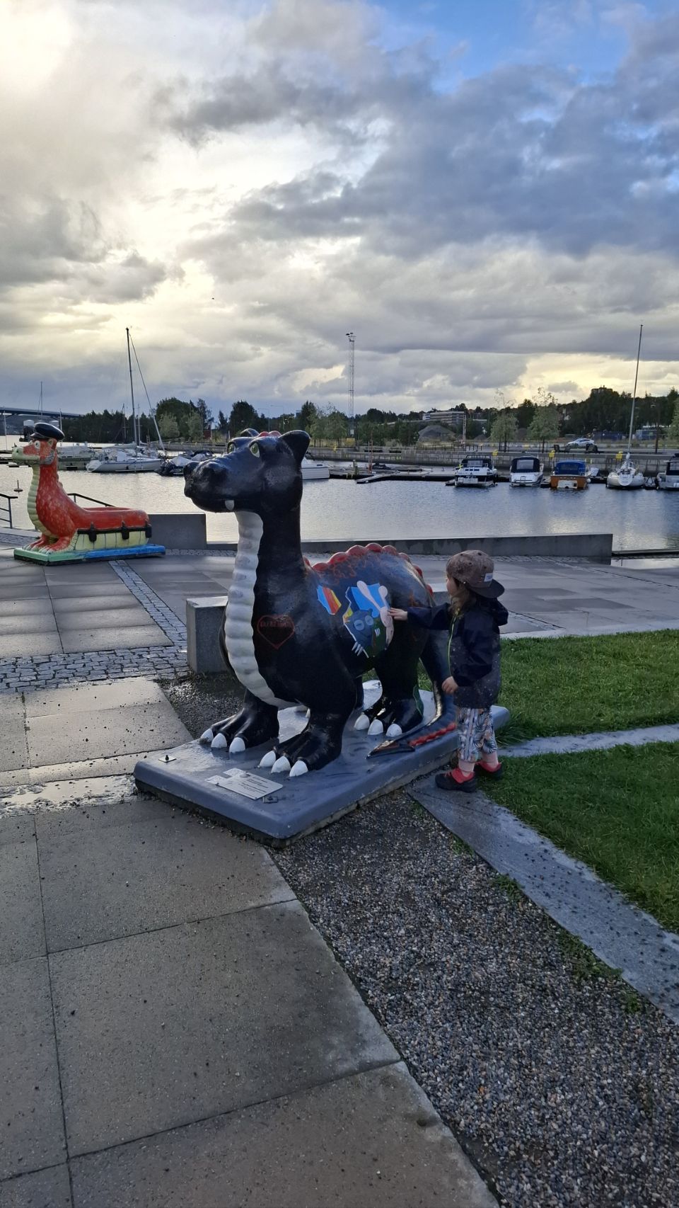 Le lendemain matin, on part découvrir la ville à pied. Sundsvall a une particularité amusante : on y trouve un peu partout des statues de dragons, chacun décoré de manière unique. Installés à l’occasion du 400e anniversaire de la ville en 2018, ils font désormais partie intégrante du paysage urbain et sont devenus un jeu de piste grandeur nature pour les visiteurs. Forcément, Lou est ravie de partir à la chasse aux dragons, et leur offre câlins et caresses comme s’ils étaient bien réels. On avoue, on est un peu jaloux de toute cette tendresse donnée.
