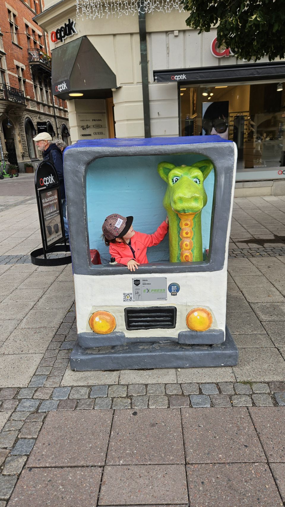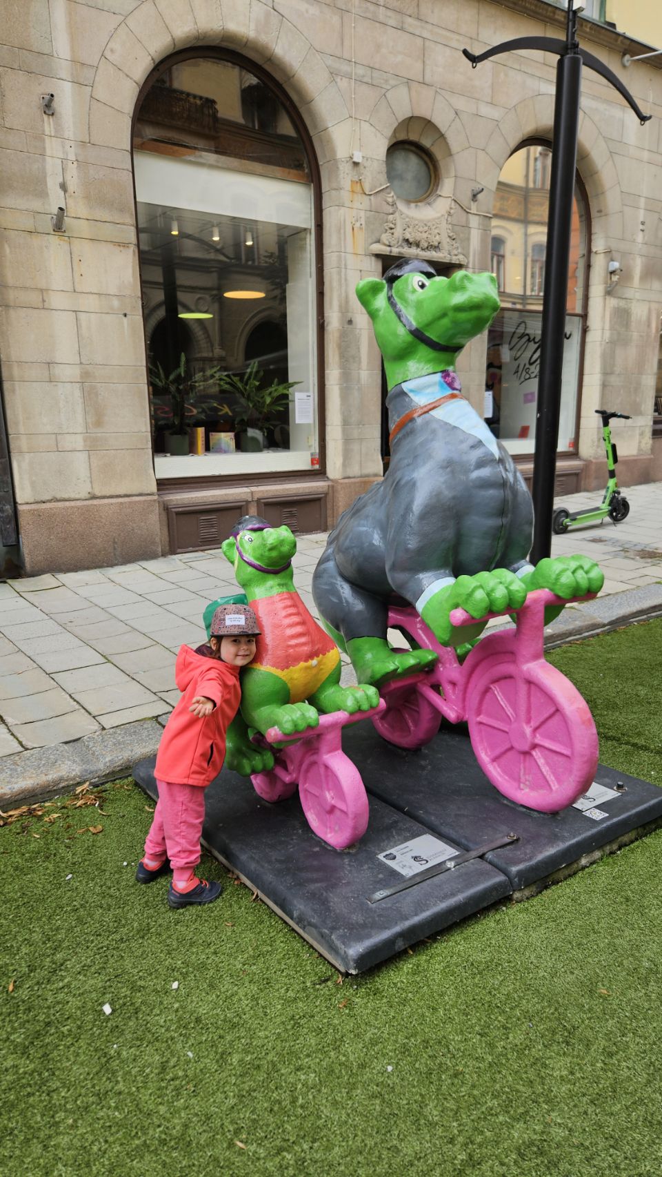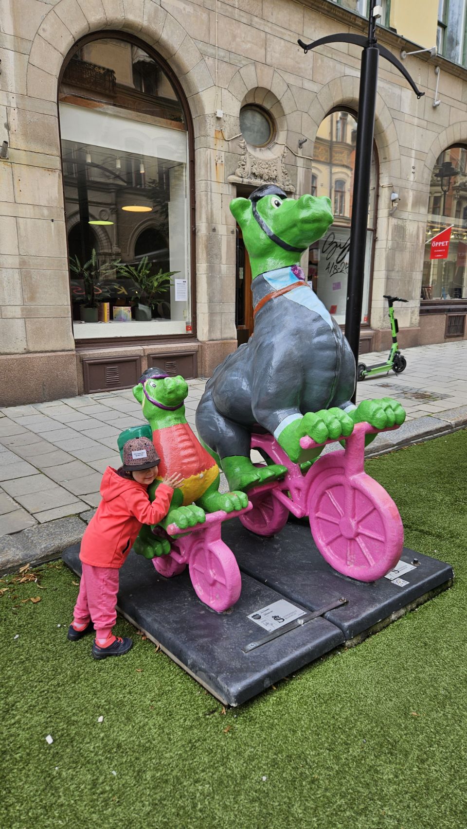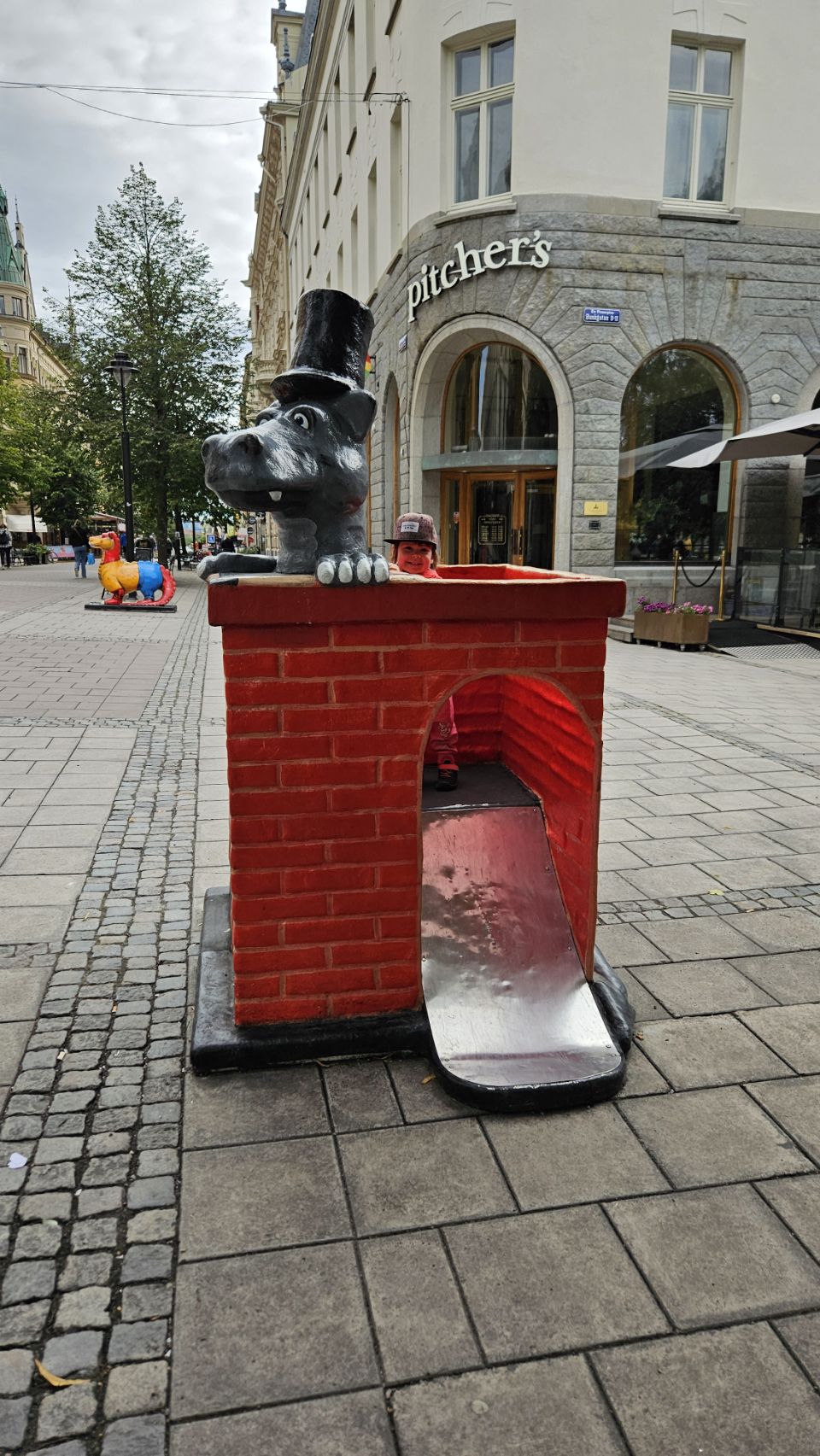 Le lendemain matin, on part découvrir la ville à pied. Sundsvall a une particularité amusante : on y trouve un peu partout des statues de dragons, chacun décoré de manière unique. Installés à l’occasion du 400e anniversaire de la ville en 2018, ils font désormais partie intégrante du paysage urbain et sont devenus un jeu de piste grandeur nature pour les visiteurs. Forcément, Lou est ravie de partir à la chasse aux dragons, et leur offre câlins et caresses comme s’ils étaient bien réels. On avoue, on est un peu jaloux de toute cette tendresse donnée.