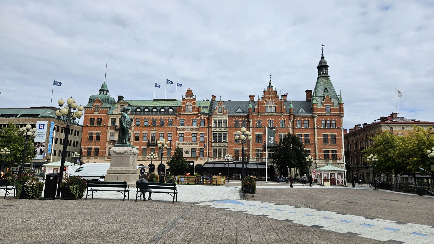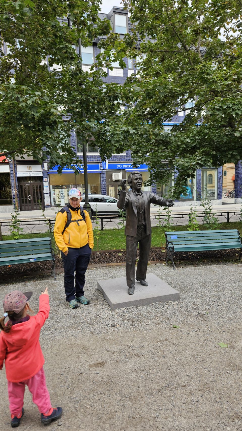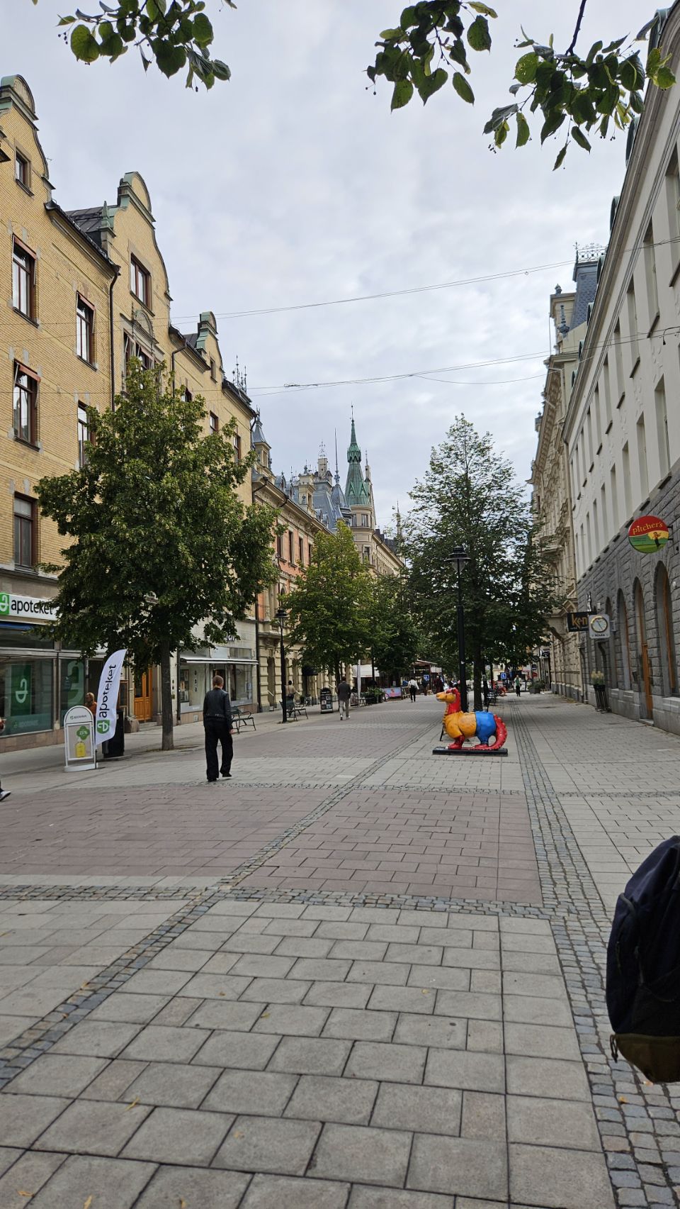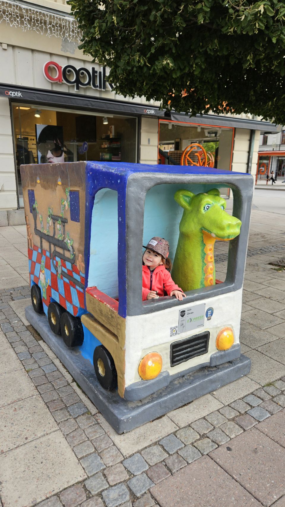 Le lendemain matin, on part découvrir la ville à pied. Sundsvall a une particularité amusante : on y trouve un peu partout des statues de dragons, chacun décoré de manière unique. Installés à l’occasion du 400e anniversaire de la ville en 2018, ils font désormais partie intégrante du paysage urbain et sont devenus un jeu de piste grandeur nature pour les visiteurs. Forcément, Lou est ravie de partir à la chasse aux dragons, et leur offre câlins et caresses comme s’ils étaient bien réels. On avoue, on est un peu jaloux de toute cette tendresse donnée.