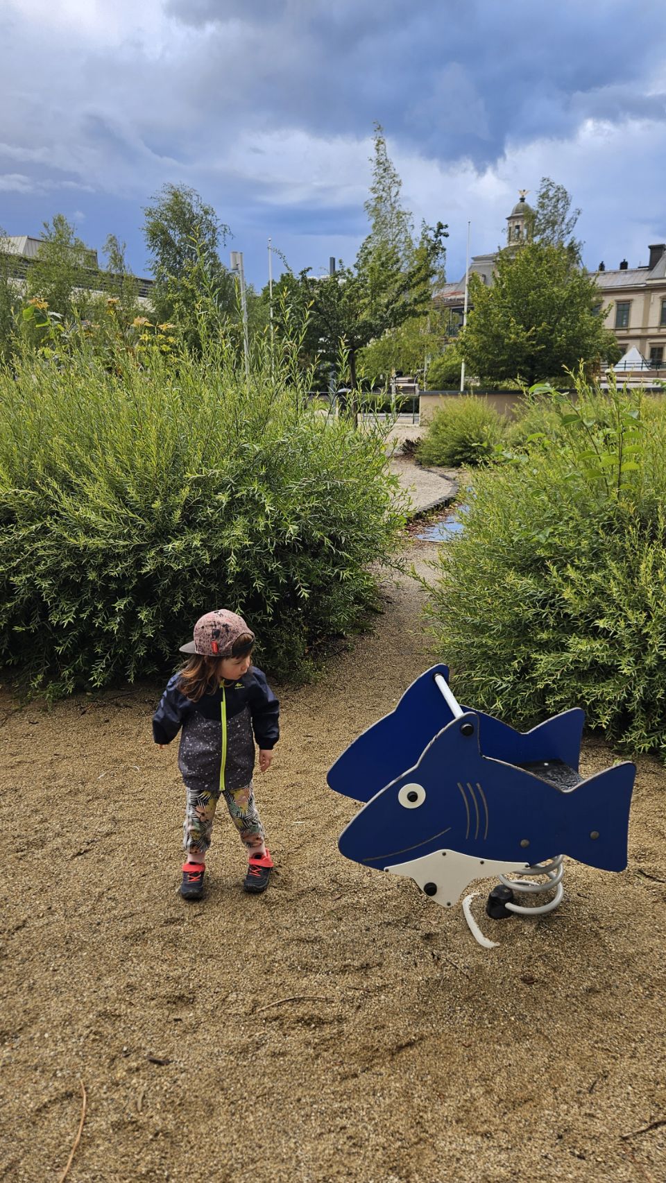 Halte à Sundsvall, où l’on combine l’utile et l’agréable. Au programme : repas, passage par quelques magasins et mission lessive sur l’aire de camping-car. Entre deux averses, on s’accorde une petite balade, entre observation des canards et arrêt incontournable à l’aire de jeux pour Lou, qui s’en donne à cœur joie.