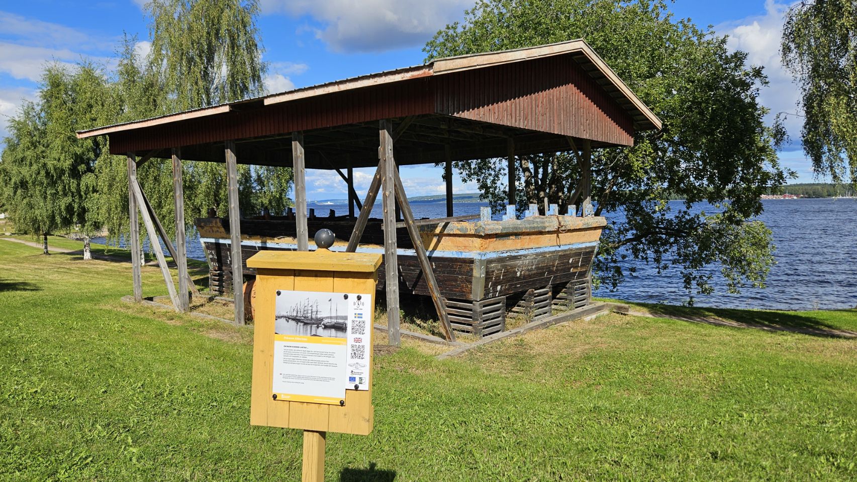 Avant de quitter la ville, on fait un passage à la gasol station pour remplir nos bouteilles de gaz françaises afin d’être tranquilles pour la suite du voyage. Ensuite, petit stop rapide à Svartviks Industriminnen, un musée en plein air retraçant l’histoire industrielle de la région. On y découvre les traces de l’époque où Sundsvall était un des plus grands centres mondiaux de l’industrie du bois et du sciage. Anciennes machines, bâtiments restaurés, wagonnets… le lieu donne une bonne idée de la vie ouvrière du XIXe siècle, quand la ville vivait au rythme des scieries. Une visite courte mais intéressante, avant de reprendre la route.