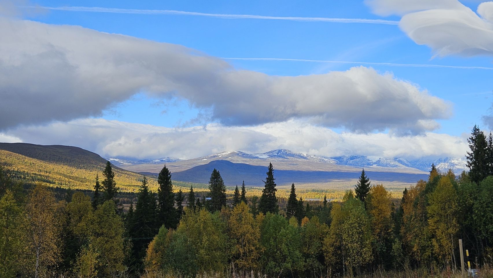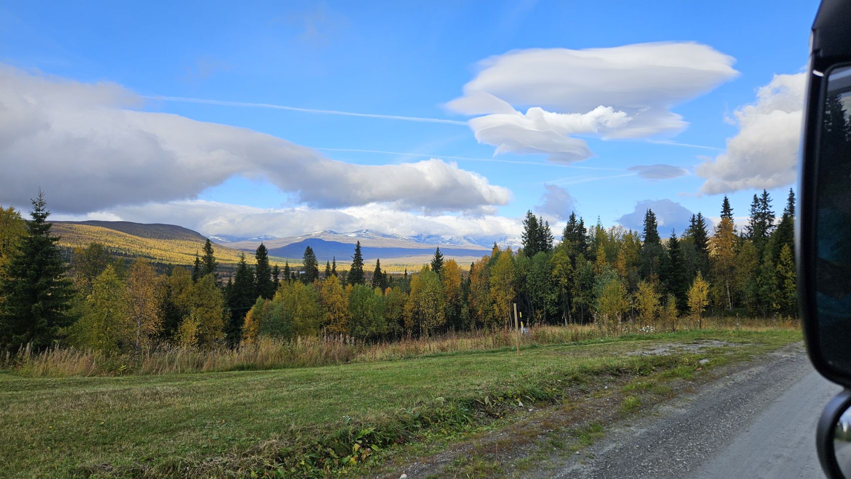 En direction de Tärnaby, nous empruntons une route secondaire qui ne laisse pas beaucoup de possibilités de s’arrêter. Mais qu’importe : le paysage défile, majestueux, entre lacs et montagnes (certaines même un peu enneigées). Parfois, il suffit simplement de regarder par la fenêtre pour s’émerveiller.