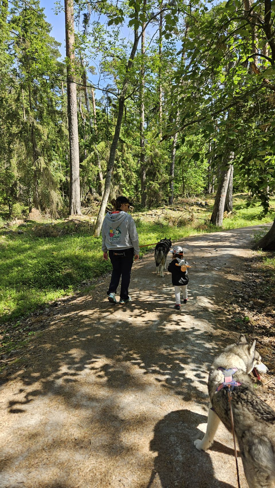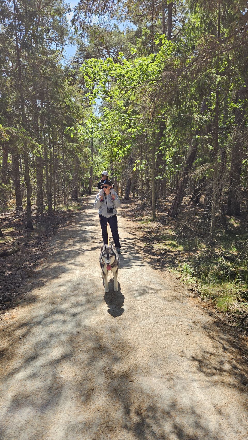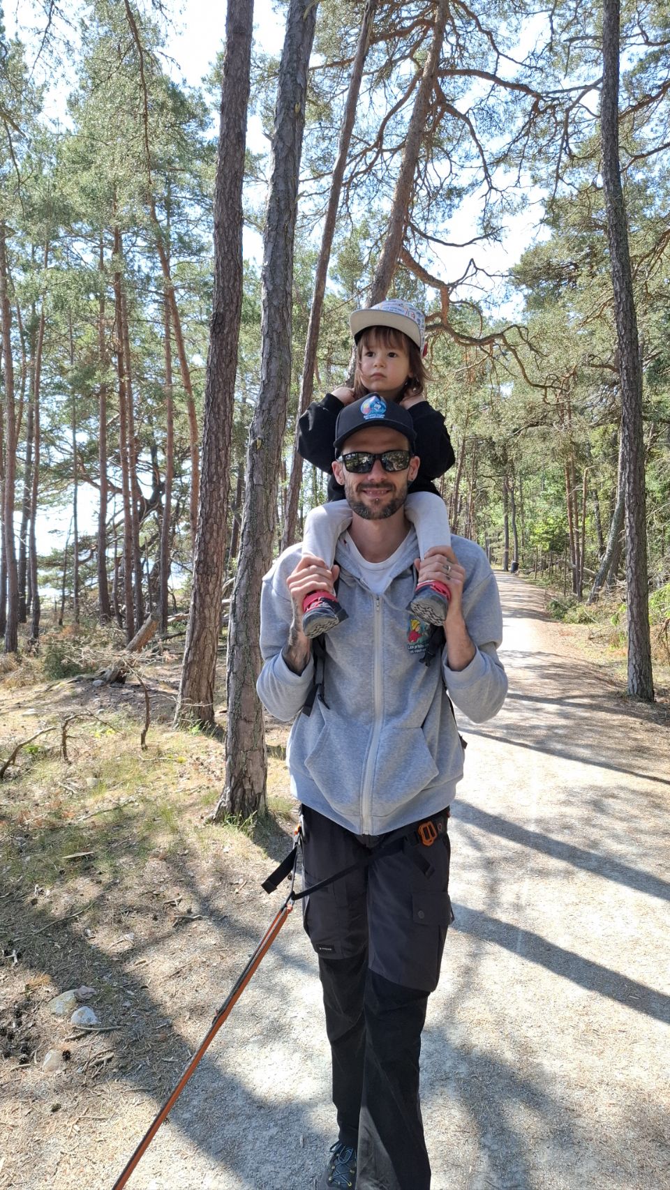 On choisit de suivre la boucle jaune avec Lou, Phao et Ruby. Lou étant un peu fatiguée ce matin, on opte pour cette version plus courte (au lieu de la rouge), tout en profitant des paysages entre forêt, plages et vestiges historiques.